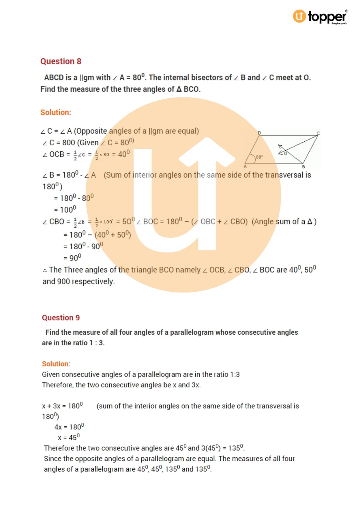Class 8 Maths Important Question CBSE Chapter 3 – Understanding Quadrilaterals