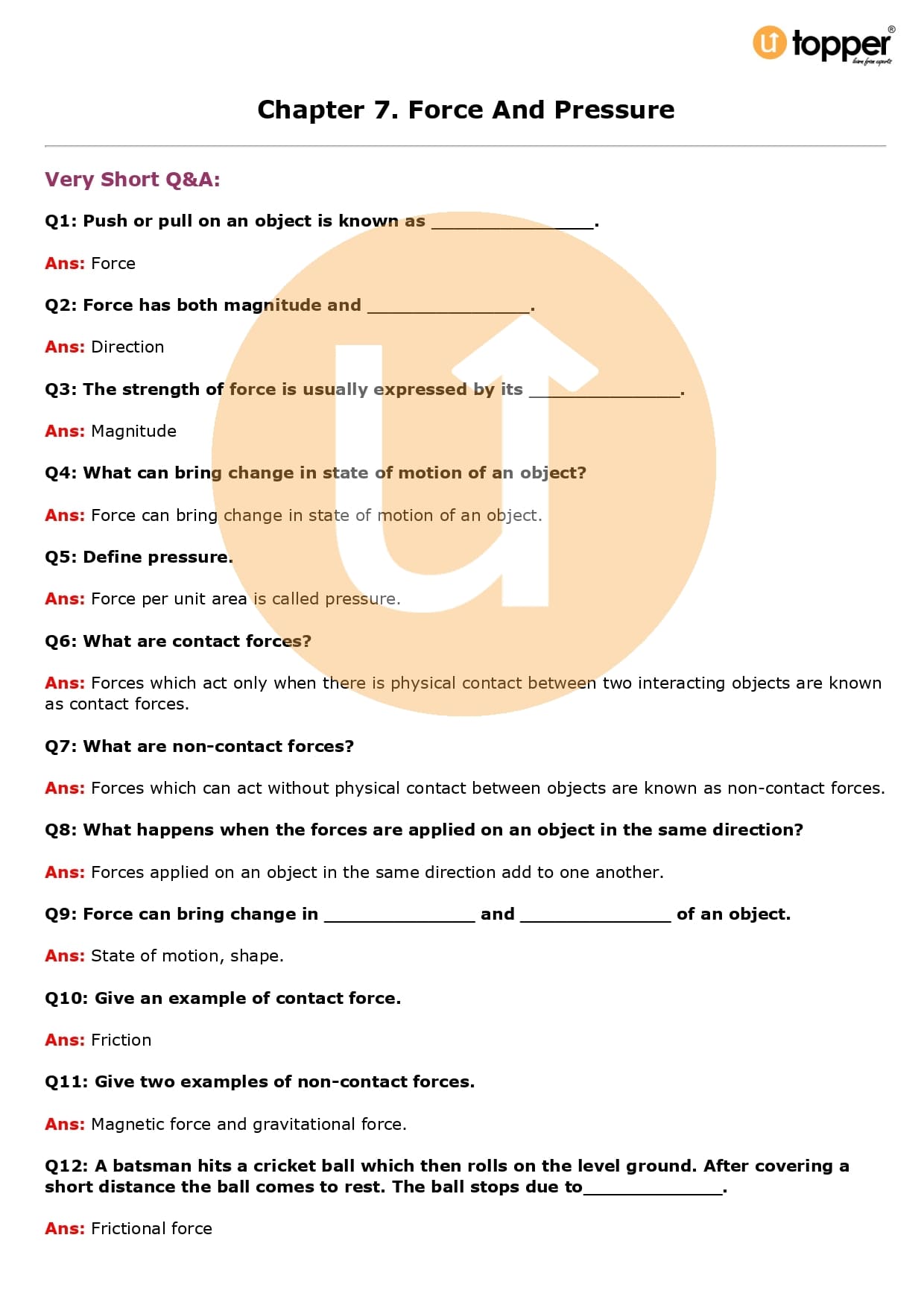 Class 8 Science Important Questions Chapter 11 Pdf – Force and Pressure