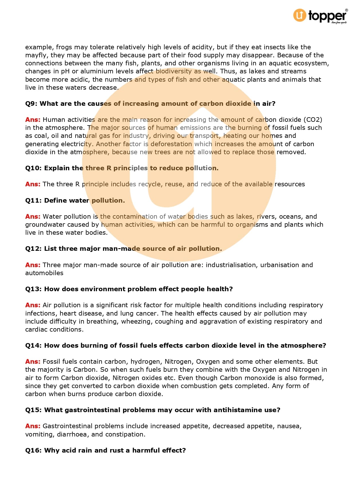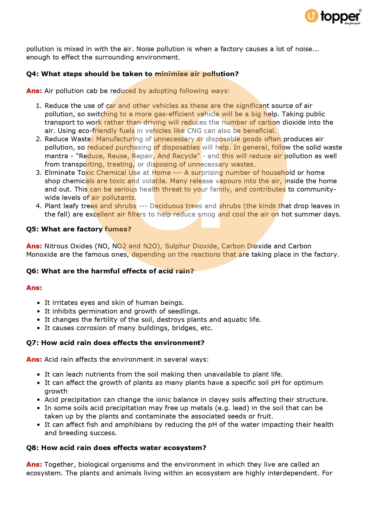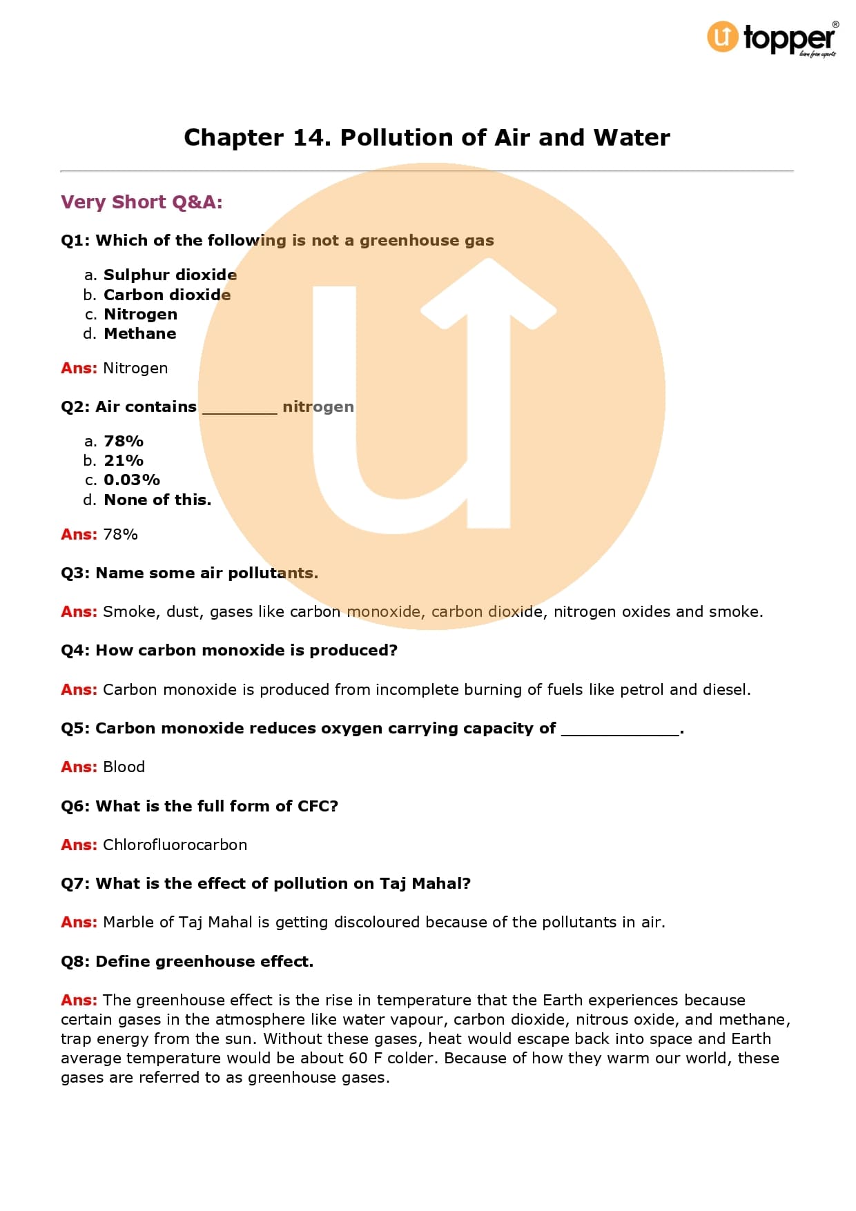 Class 8 Science Important Questions Chapter 18 Pdf – Pollution of Air and Water