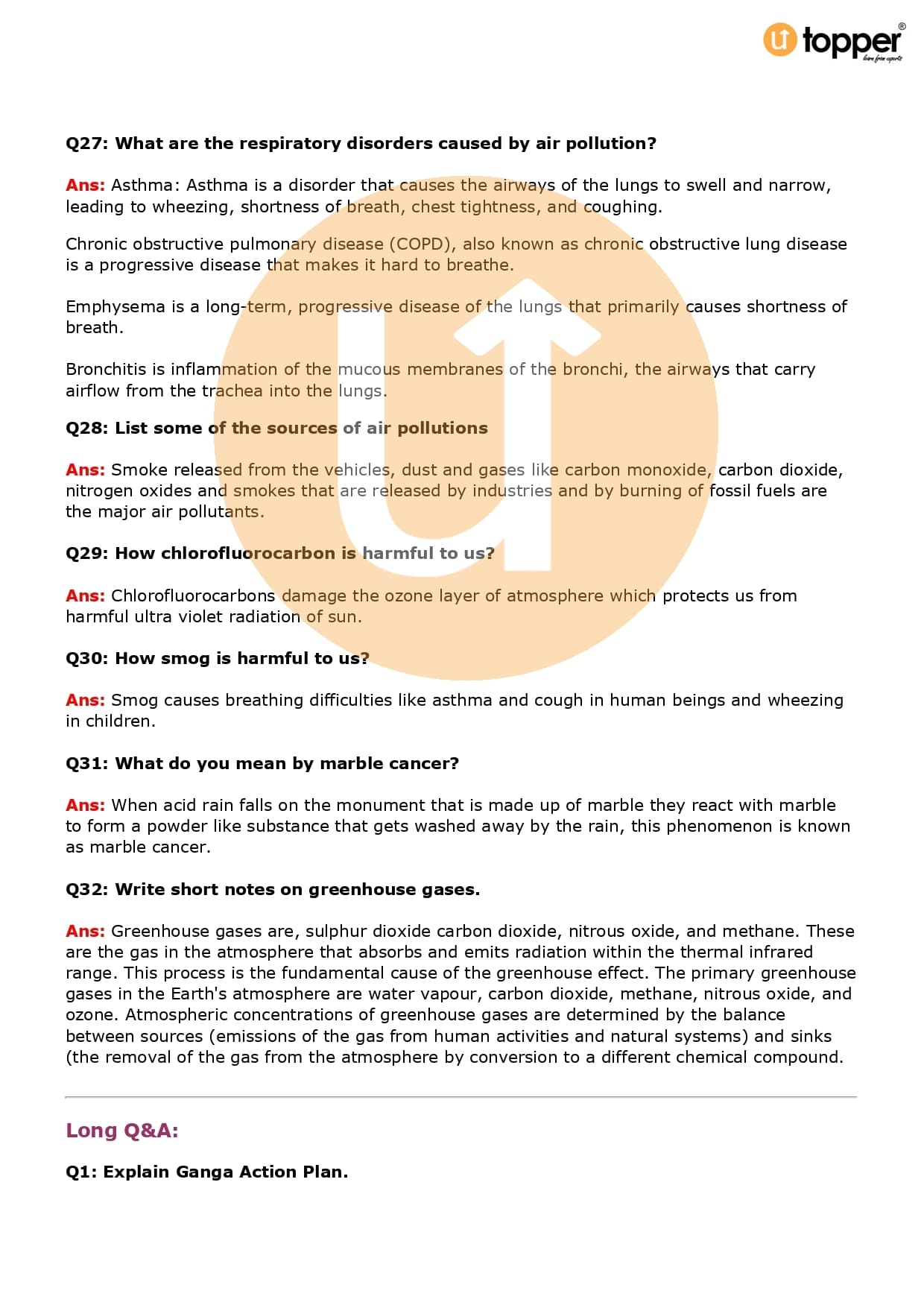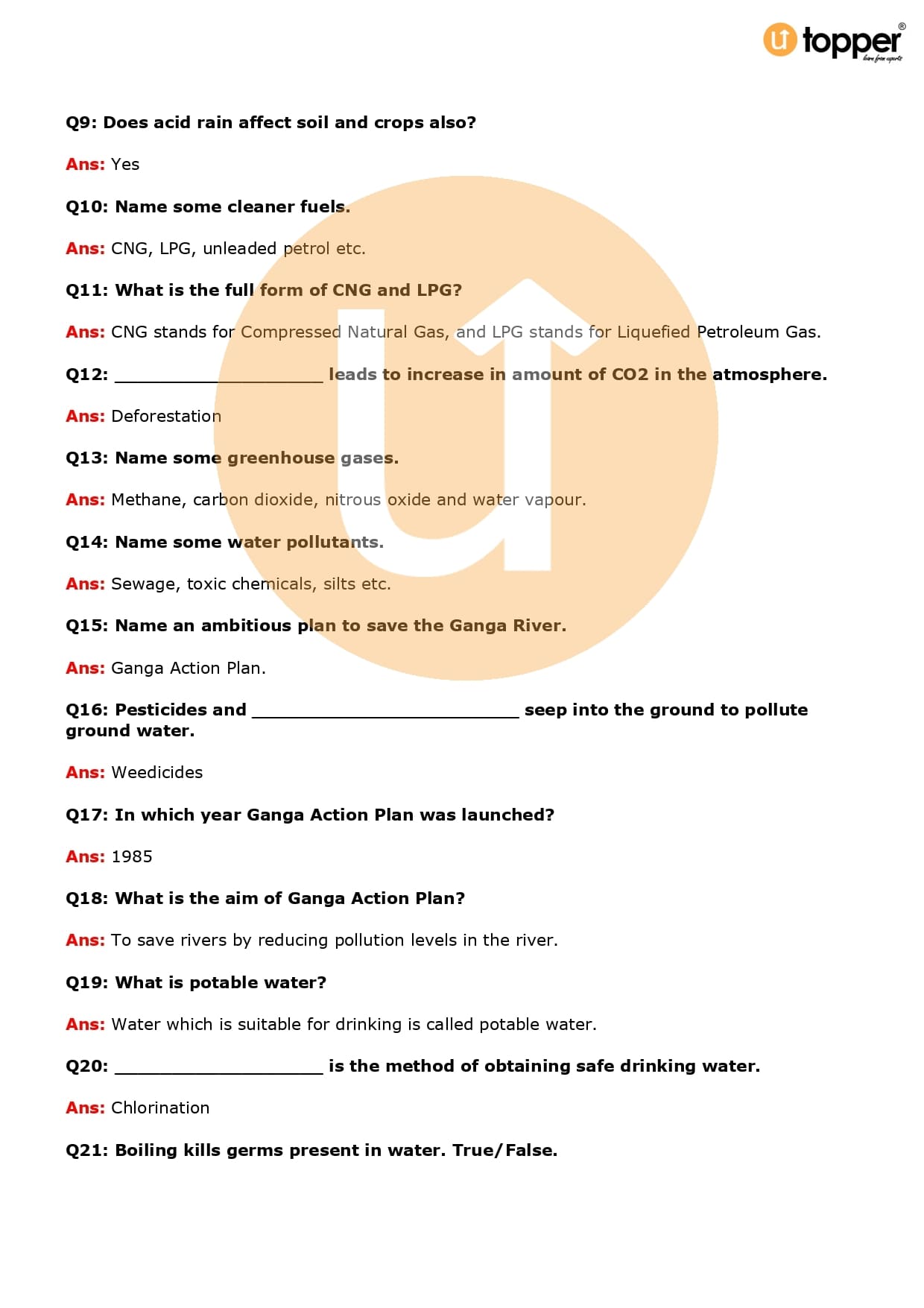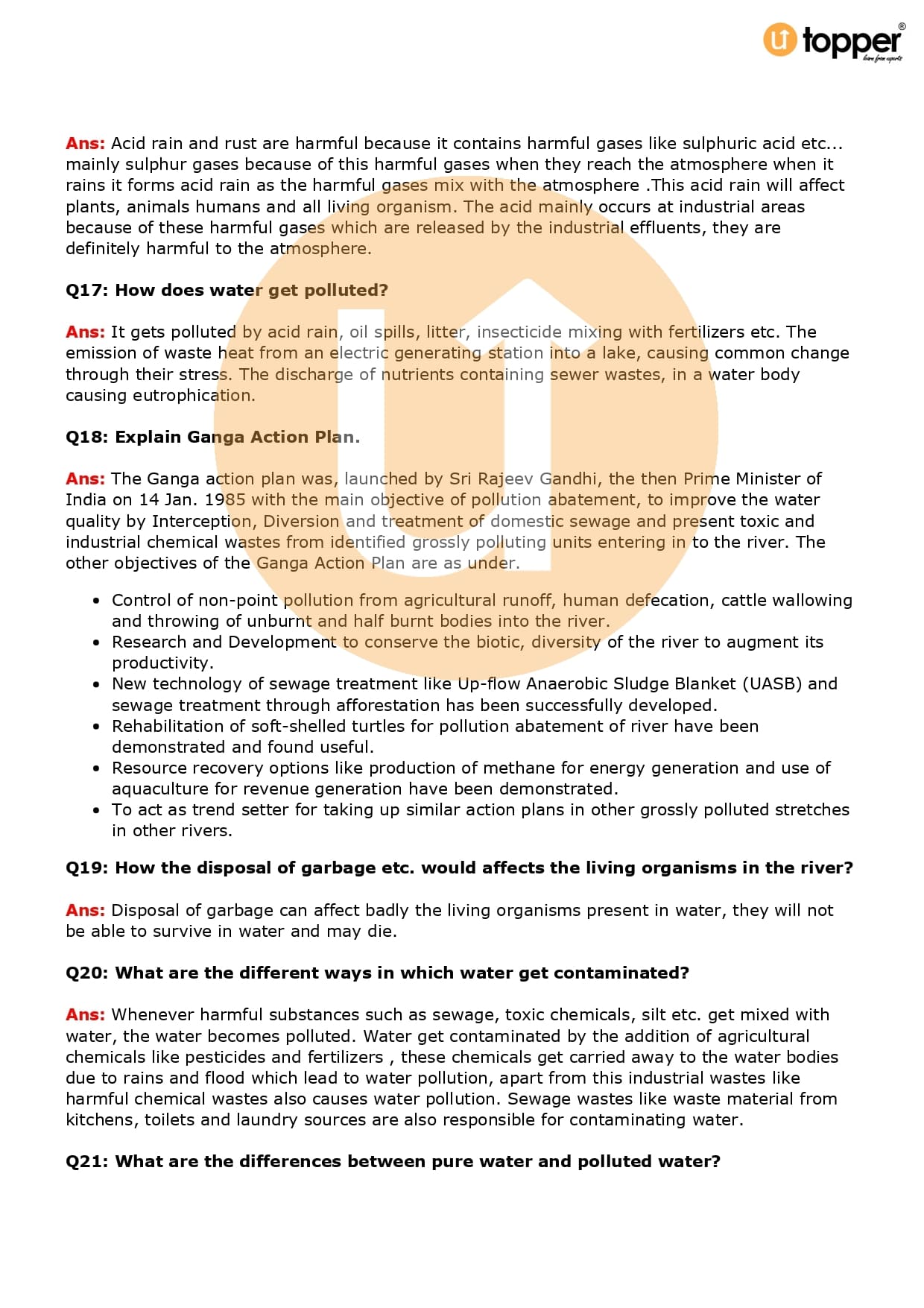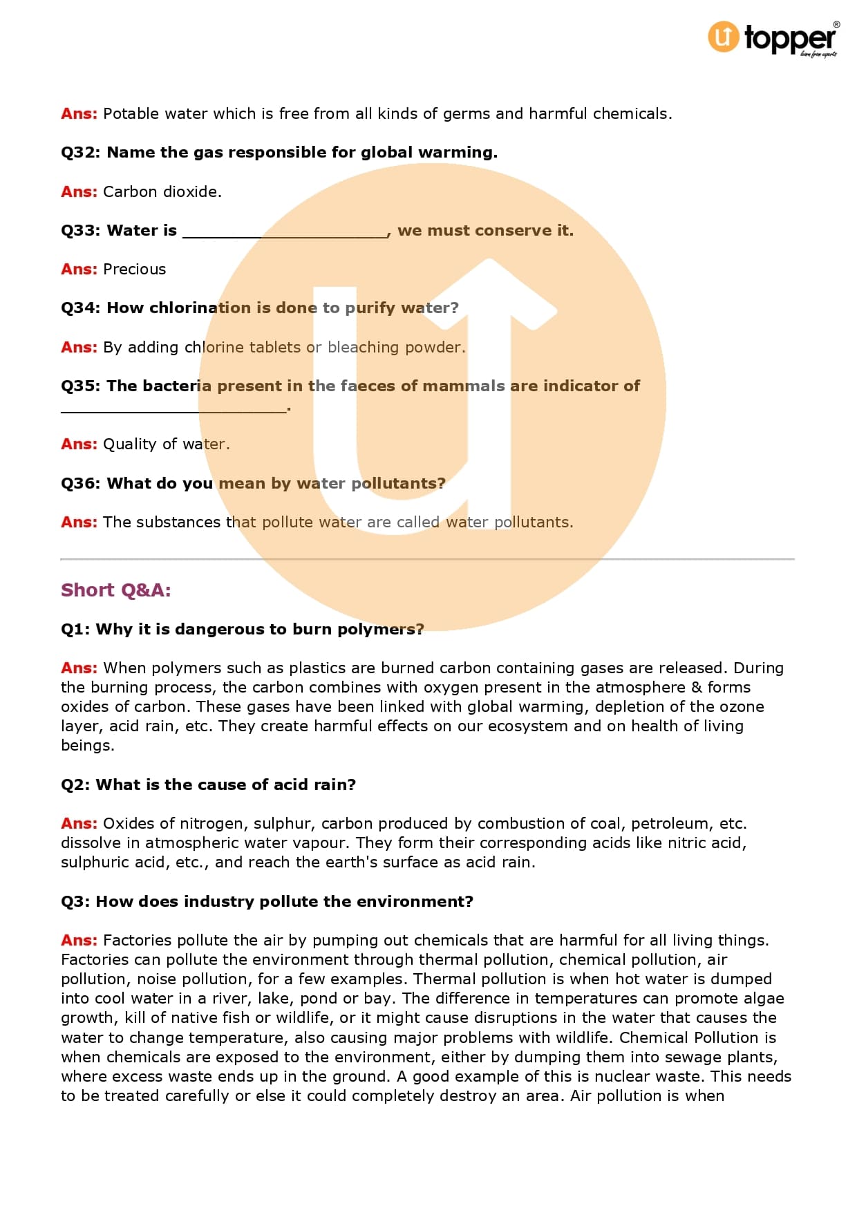 Class 8 Science Important Questions Chapter 18 Pdf – Pollution of Air and Water
