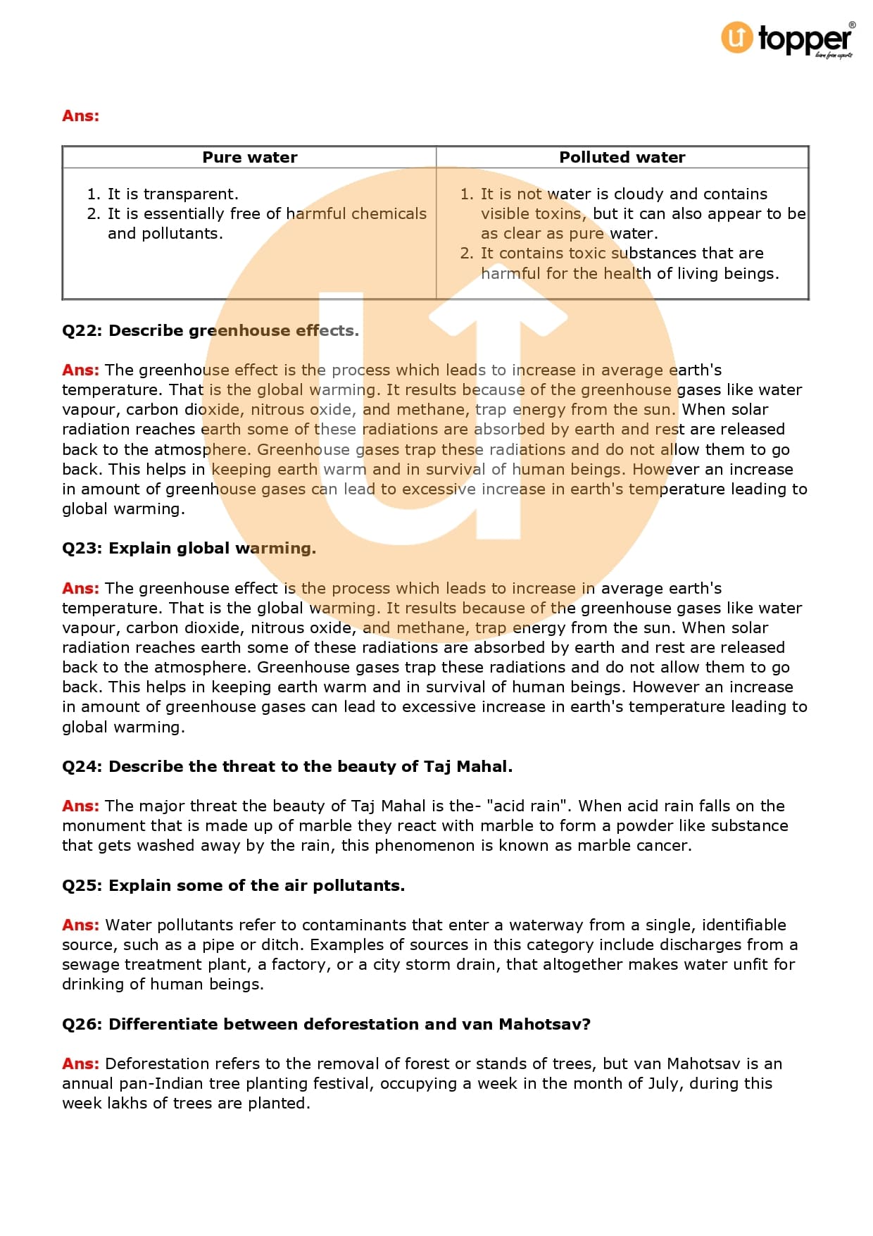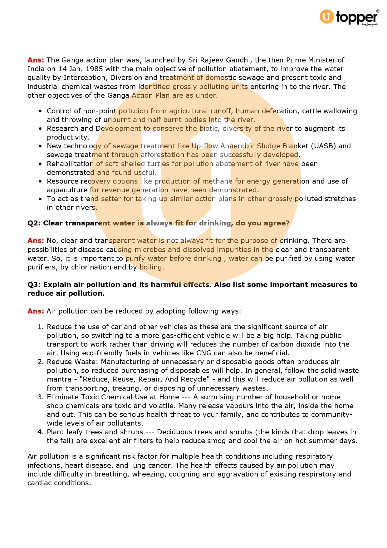 Class 8 Science Important Question CBSE Chapter 18 – Pollution of Air and Water
