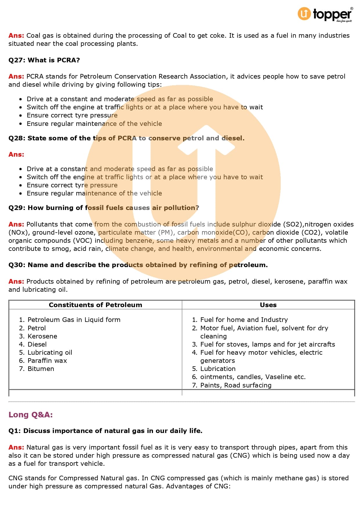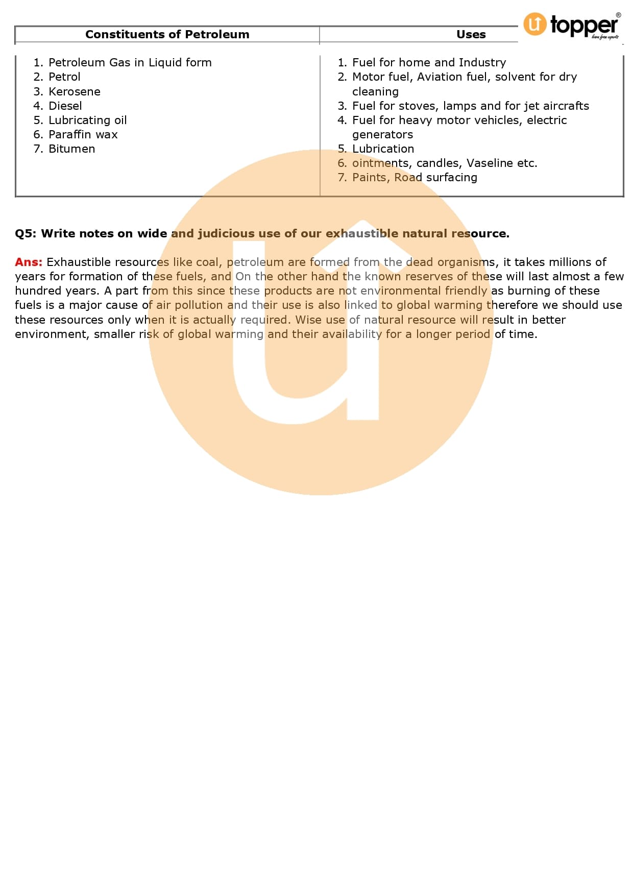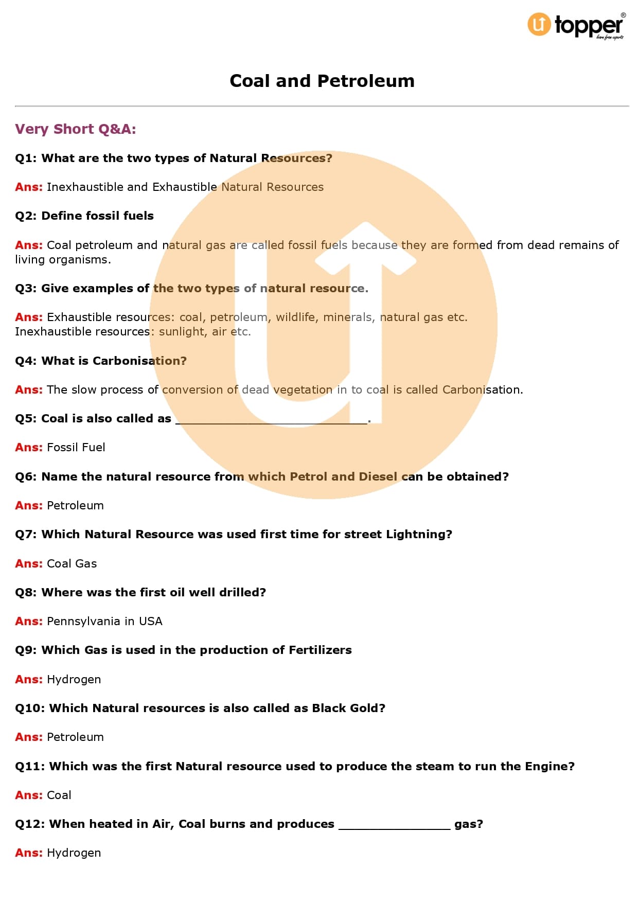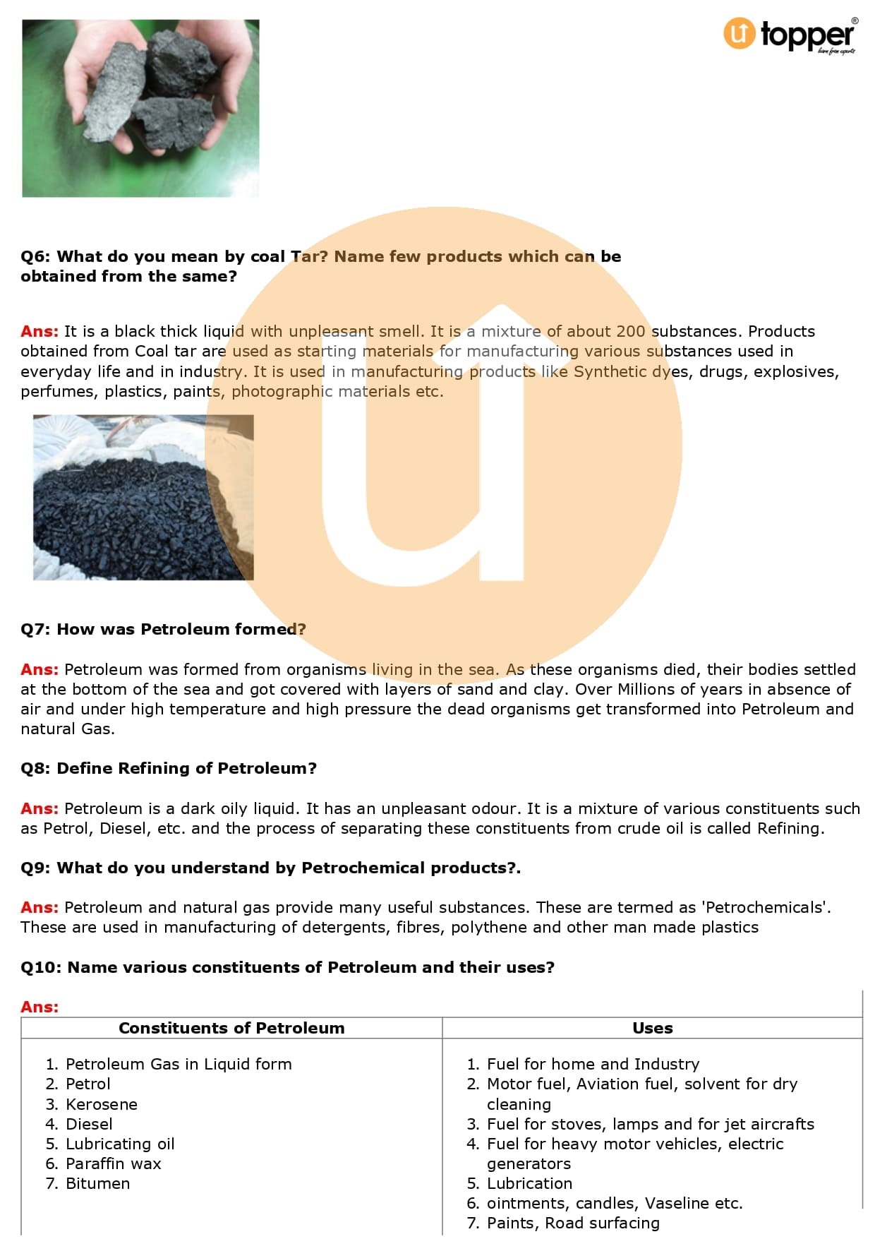 Class 8 Science Important Question CBSE Chapter 5 – Coal and Petroleum