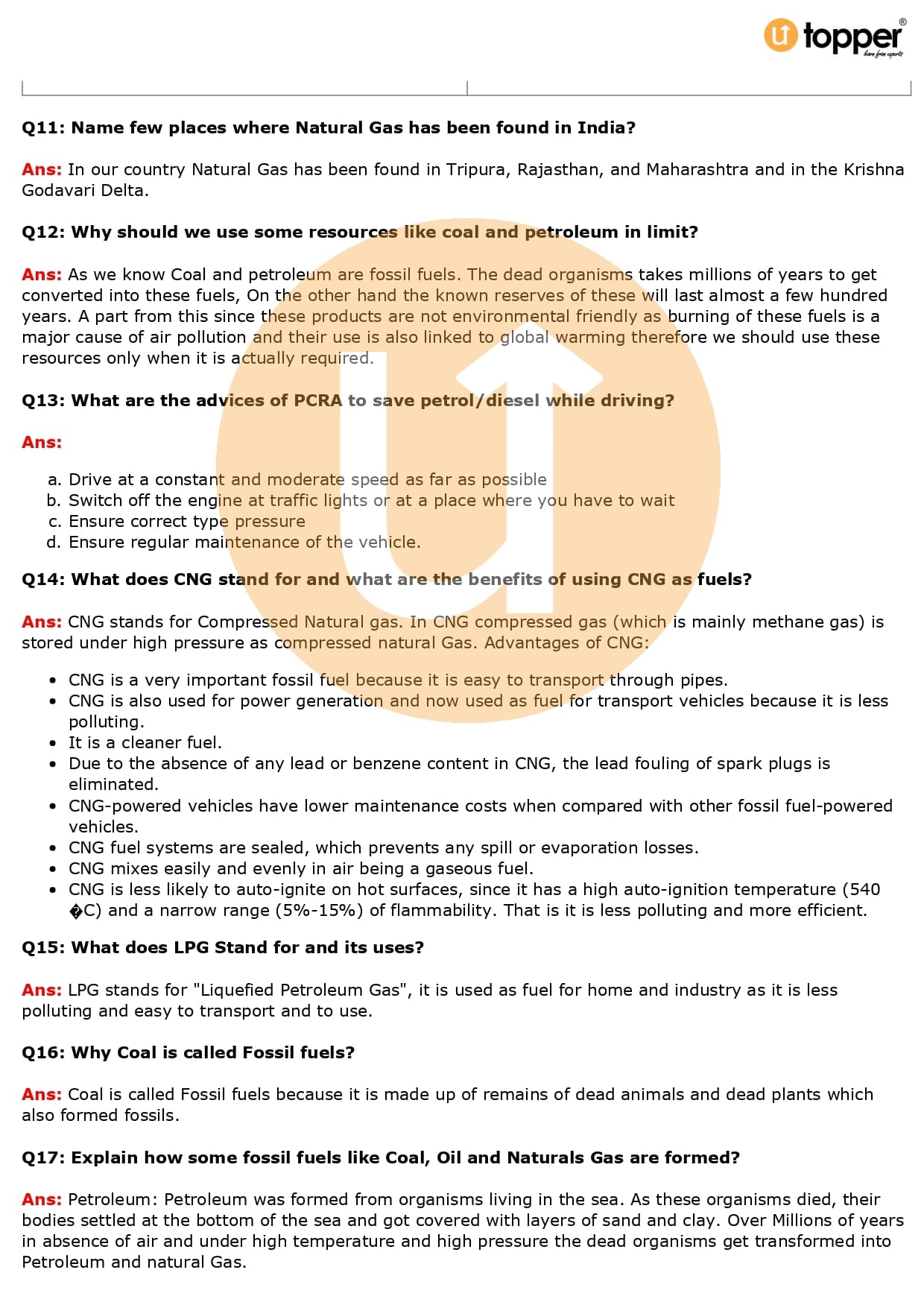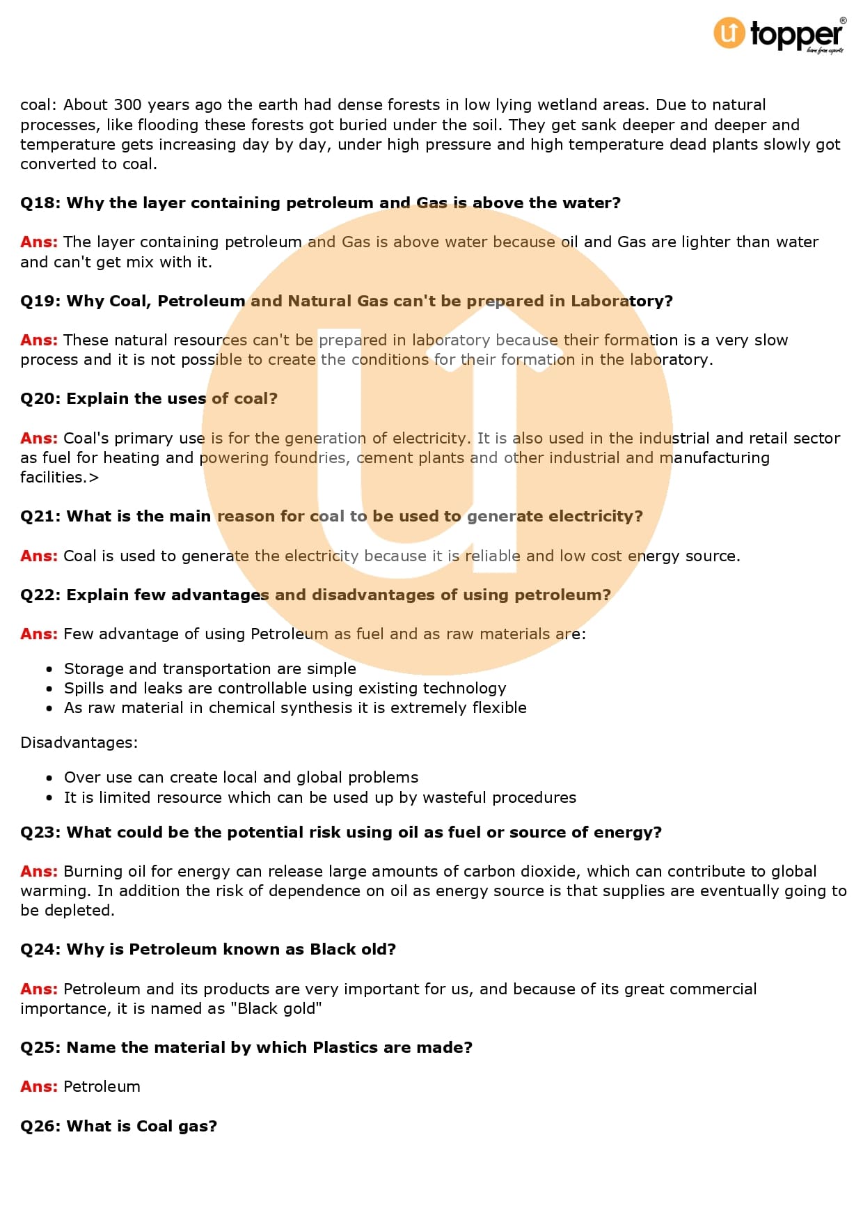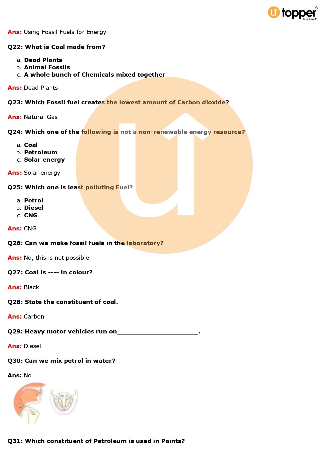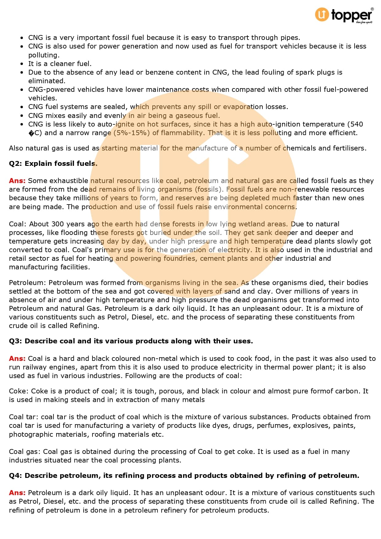 Class 8 Science Important Question CBSE Chapter 5 – Coal and Petroleum