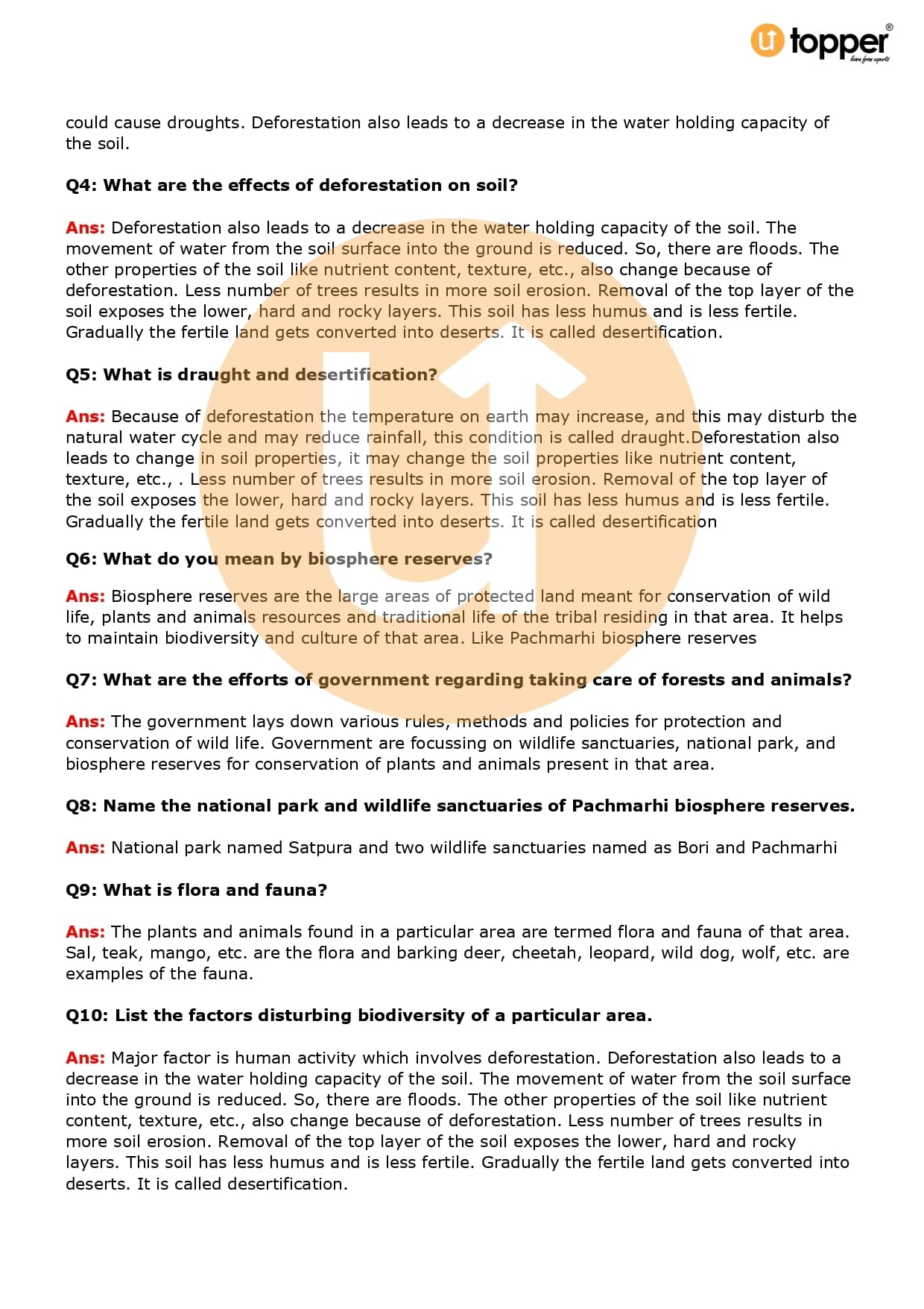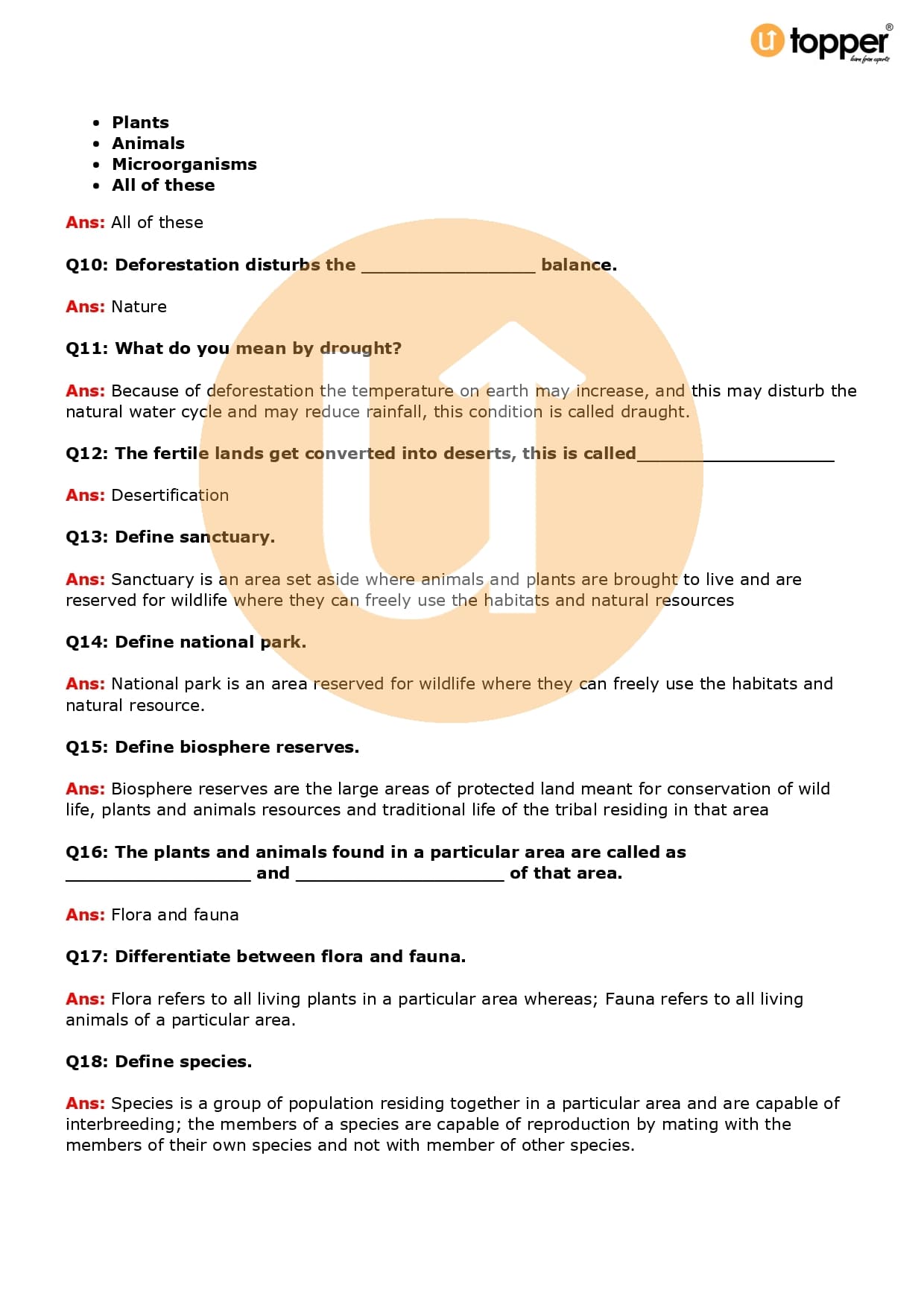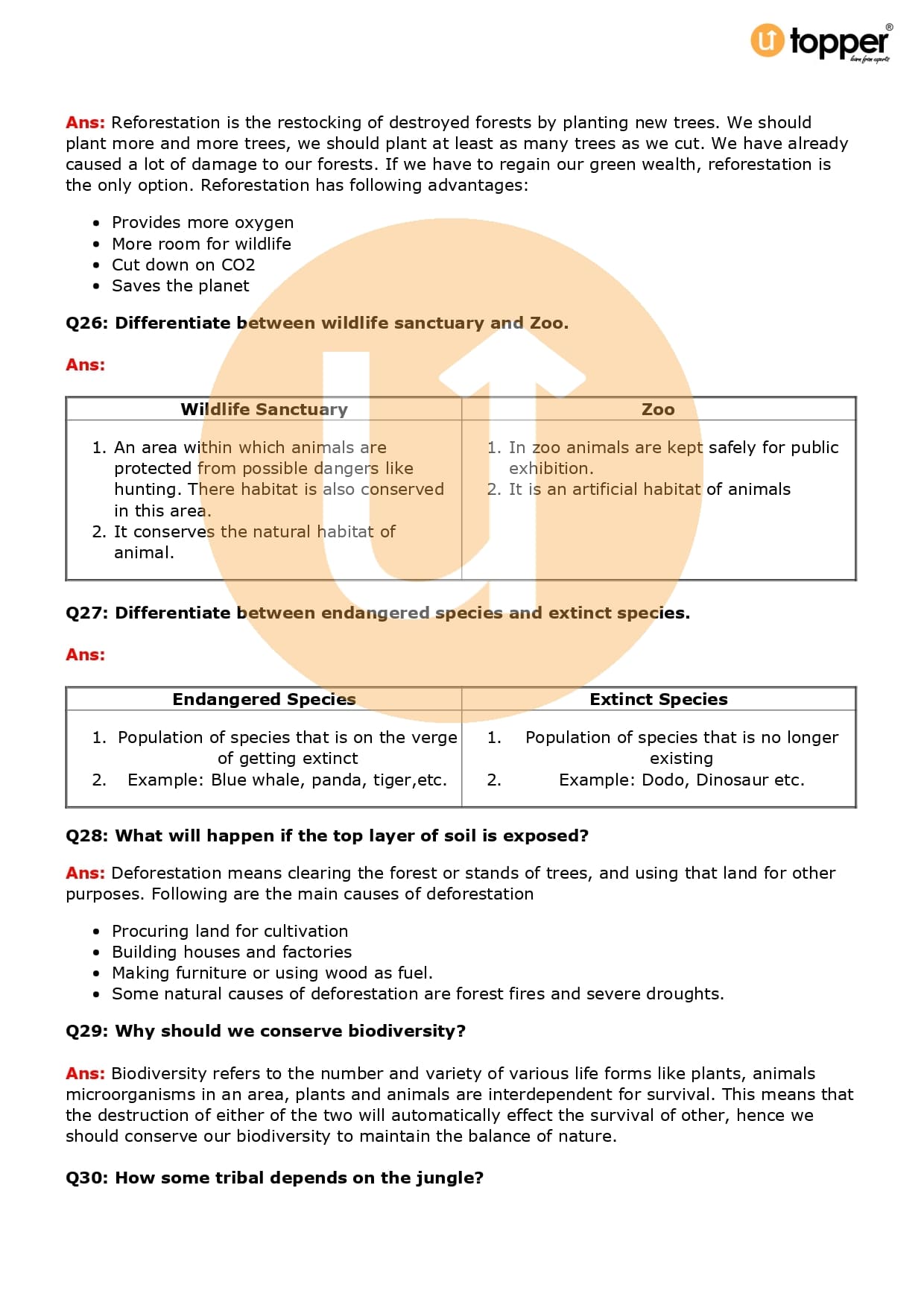 Class 8 Science Important Question CBSE Chapter 7 – Conservation of Plants and Animals