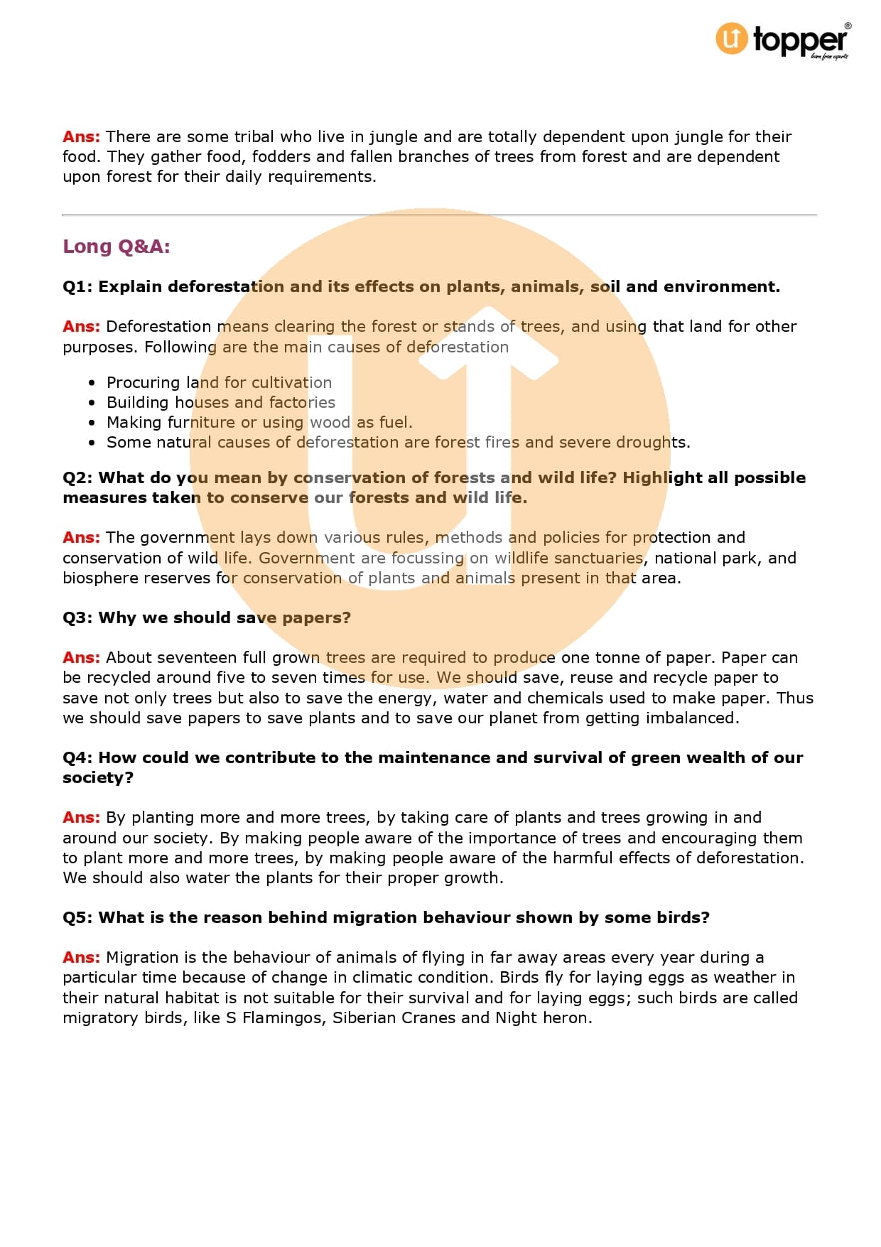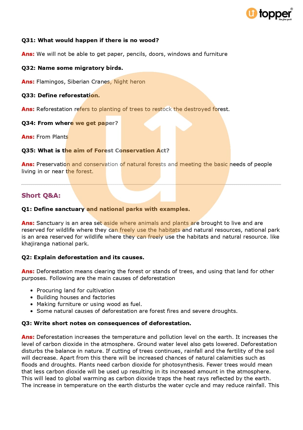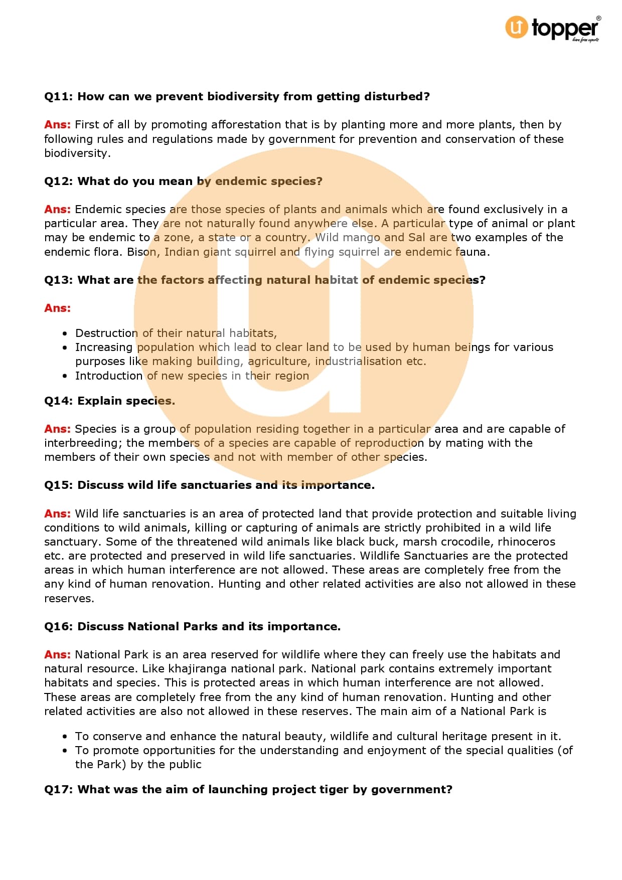 Class 8 Science Important Question CBSE Chapter 7 – Conservation of Plants and Animals
