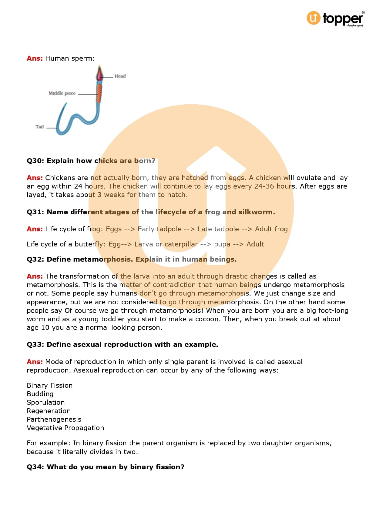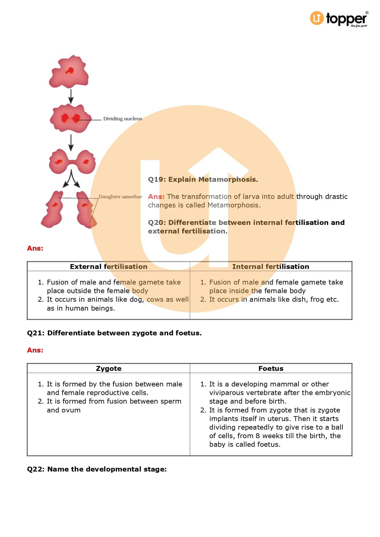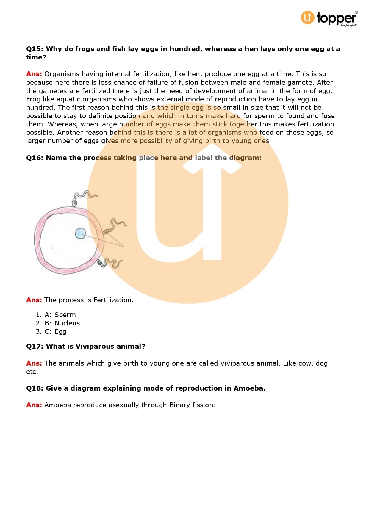Class 8 Science Important Question CBSE Chapter 9 – Reproduction in Animals