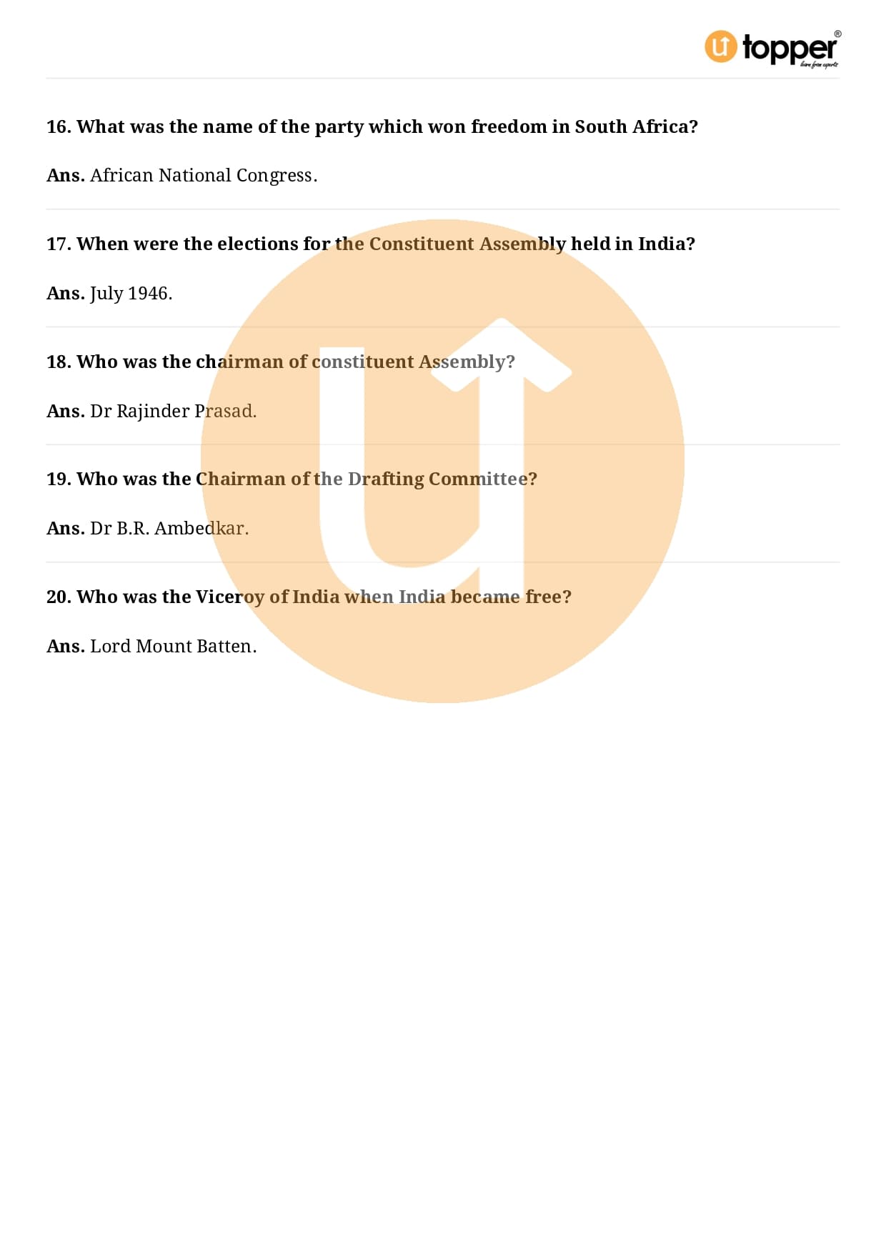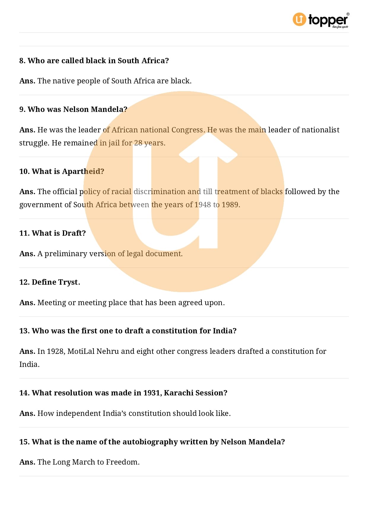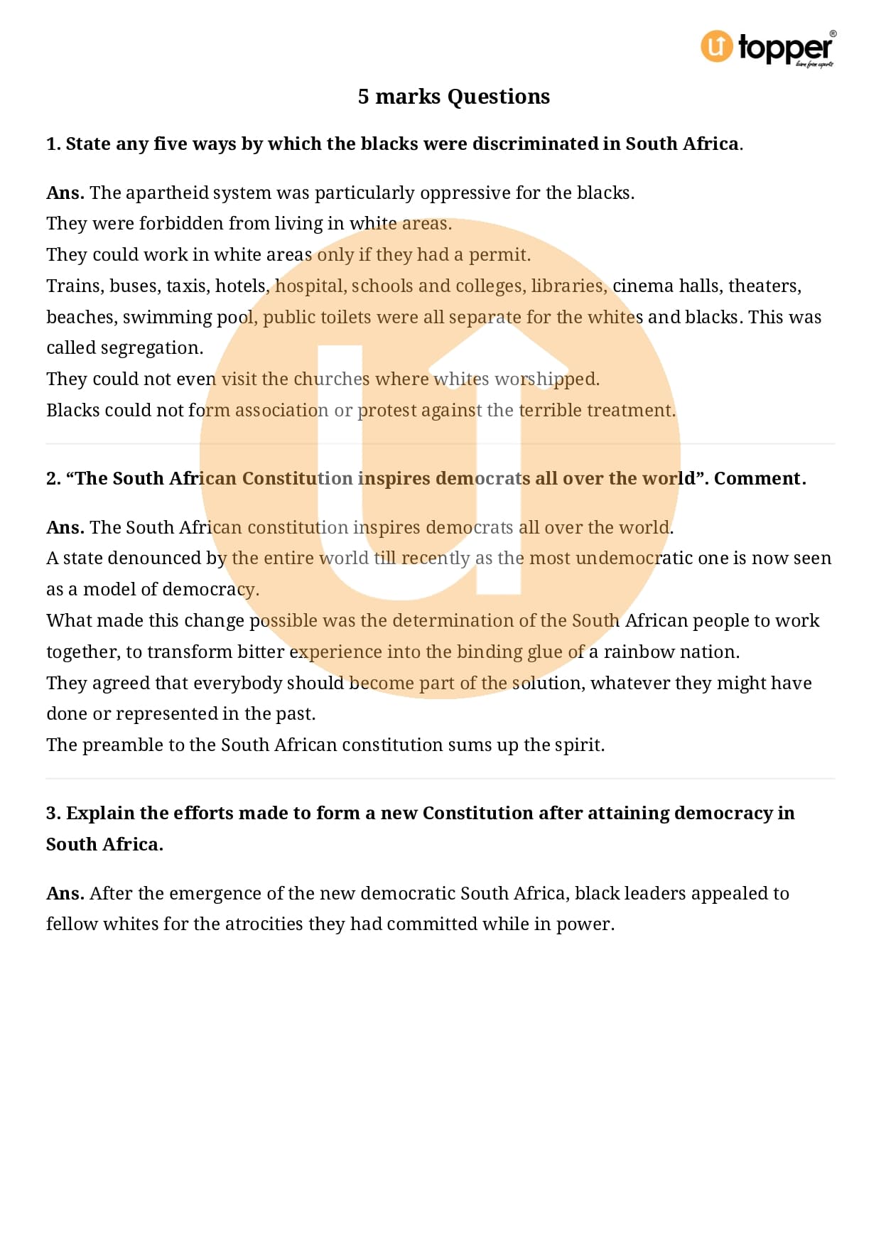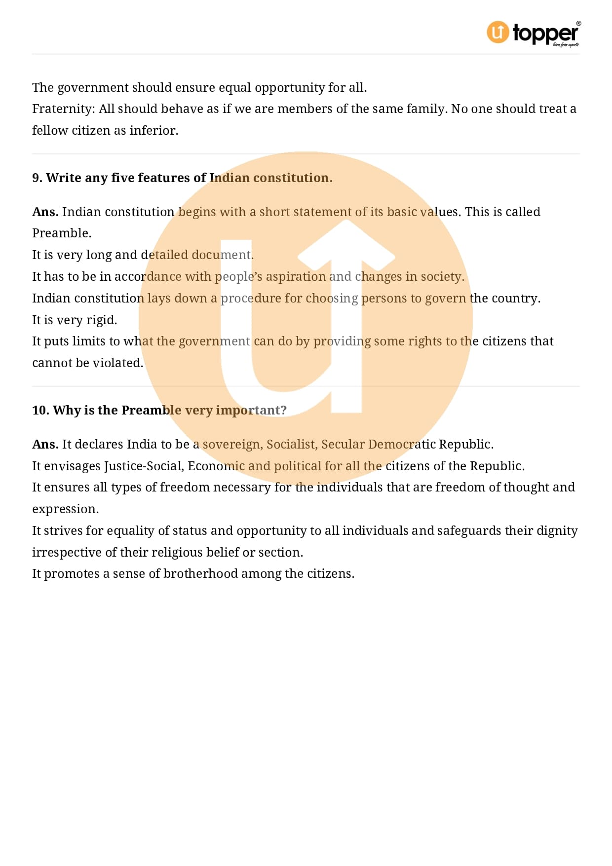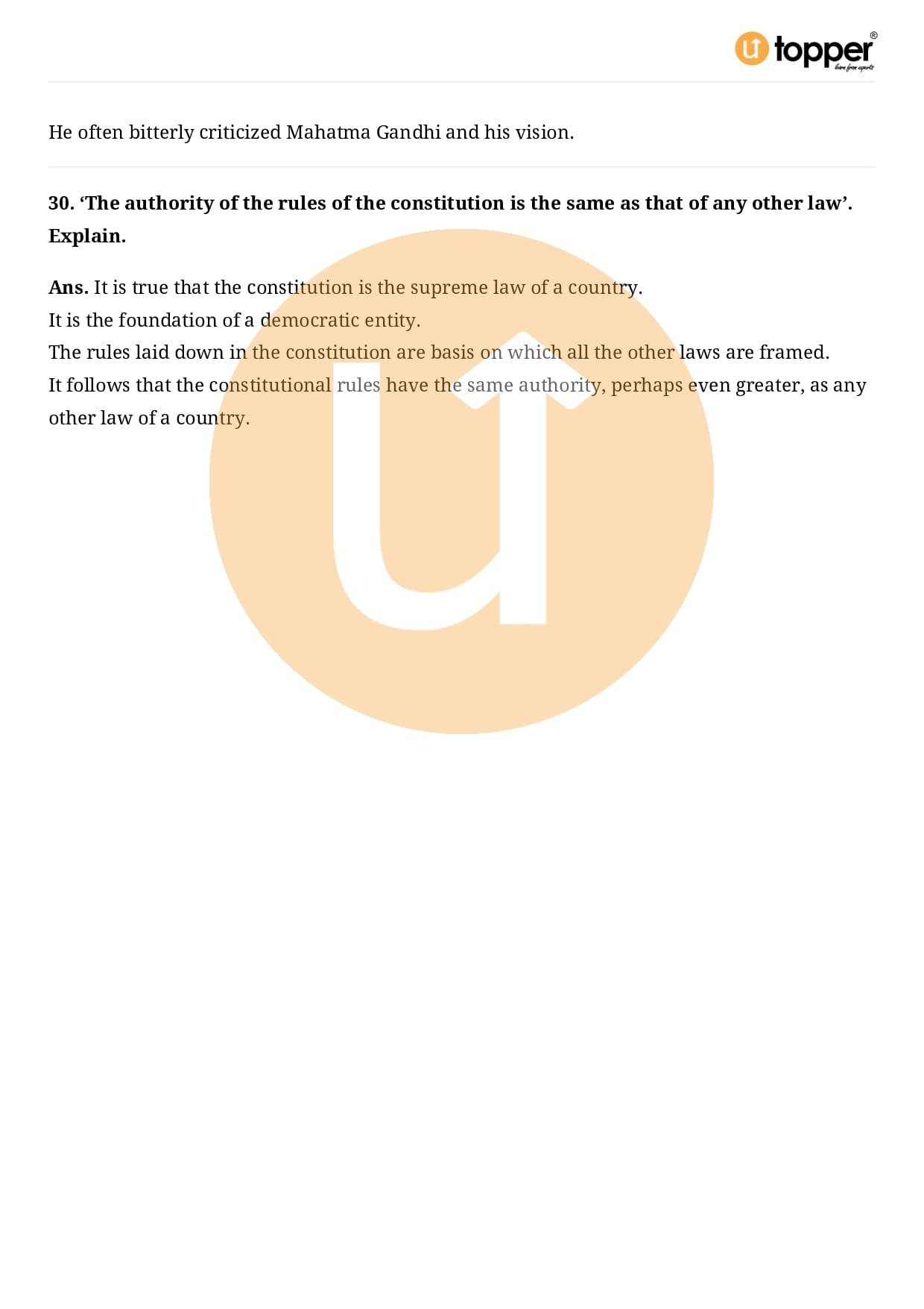 Class 9 Civics Important Question CBSE Chapter 3 – Constitutional Design