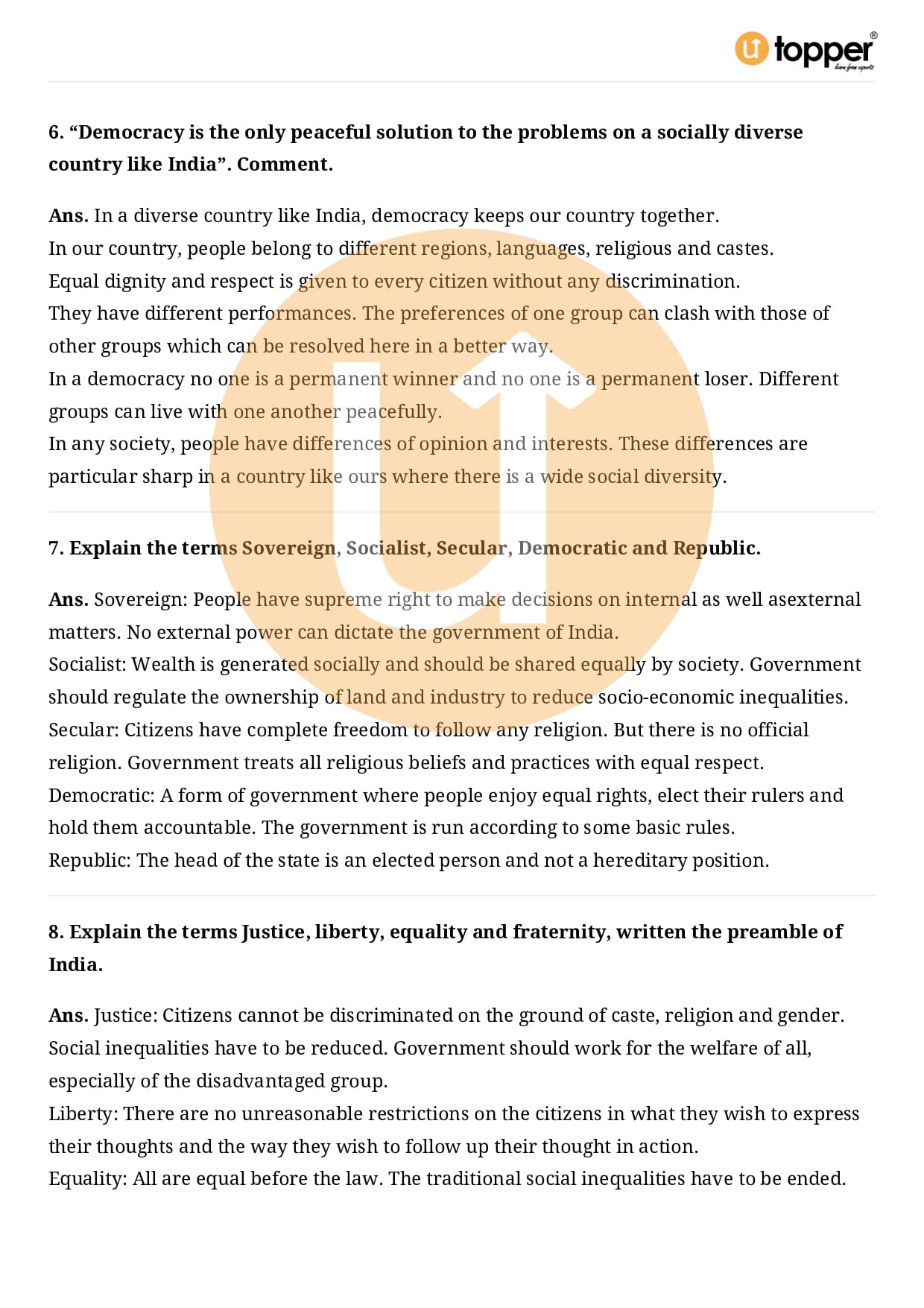Class 9 Civics Important Question Chapter 3