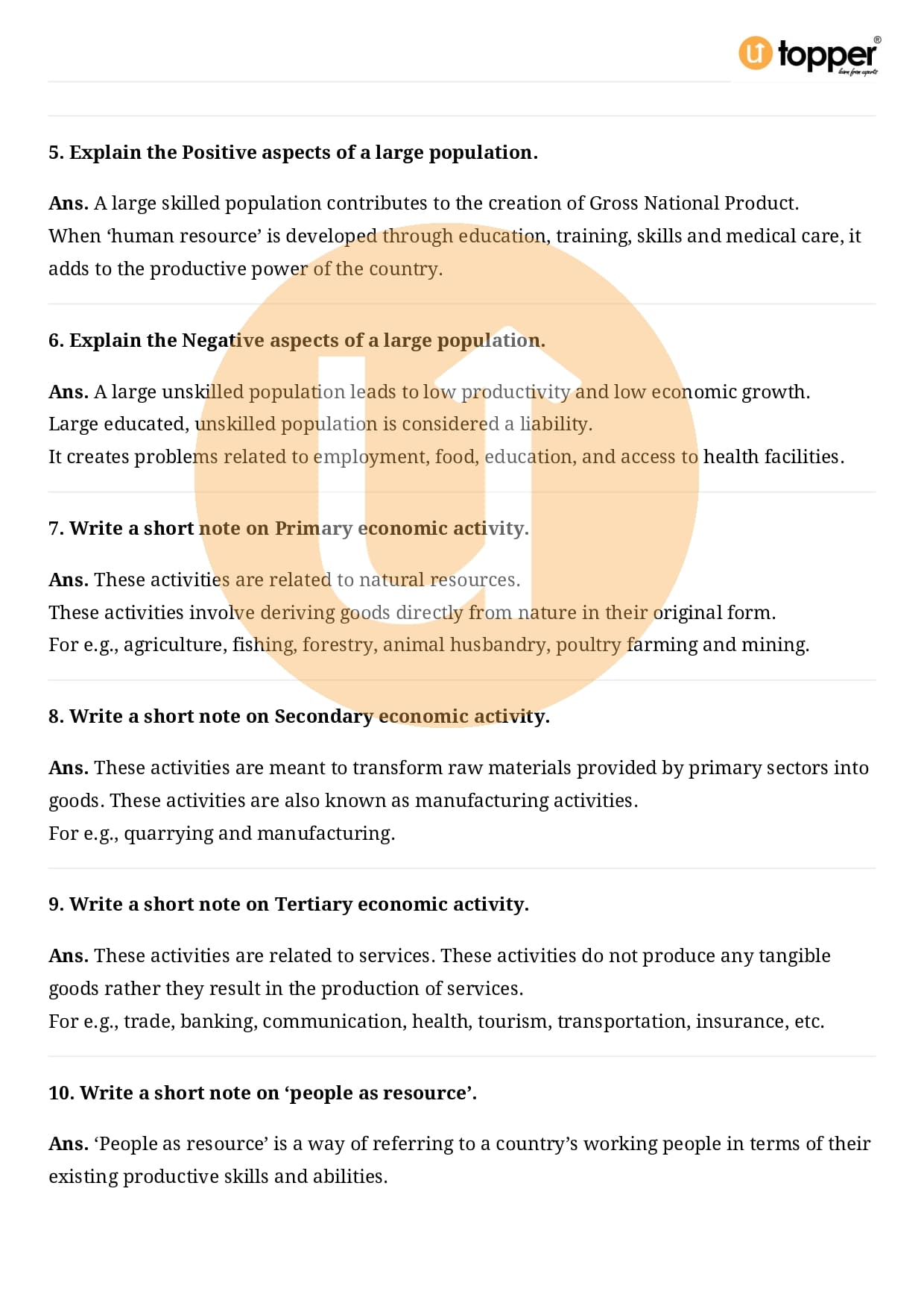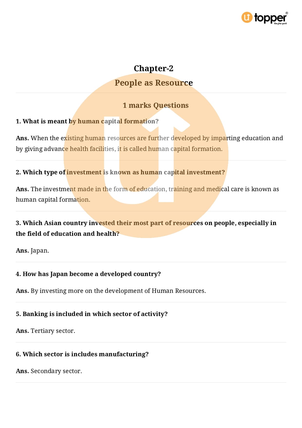 Class 9 Economics Important Questions Chapter 2 Pdf – People as Resource