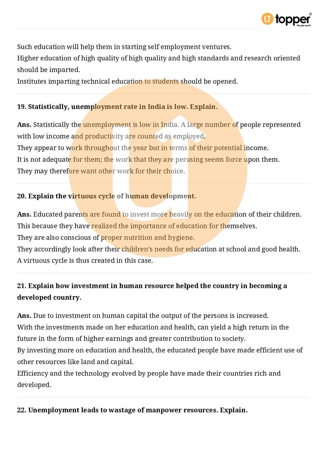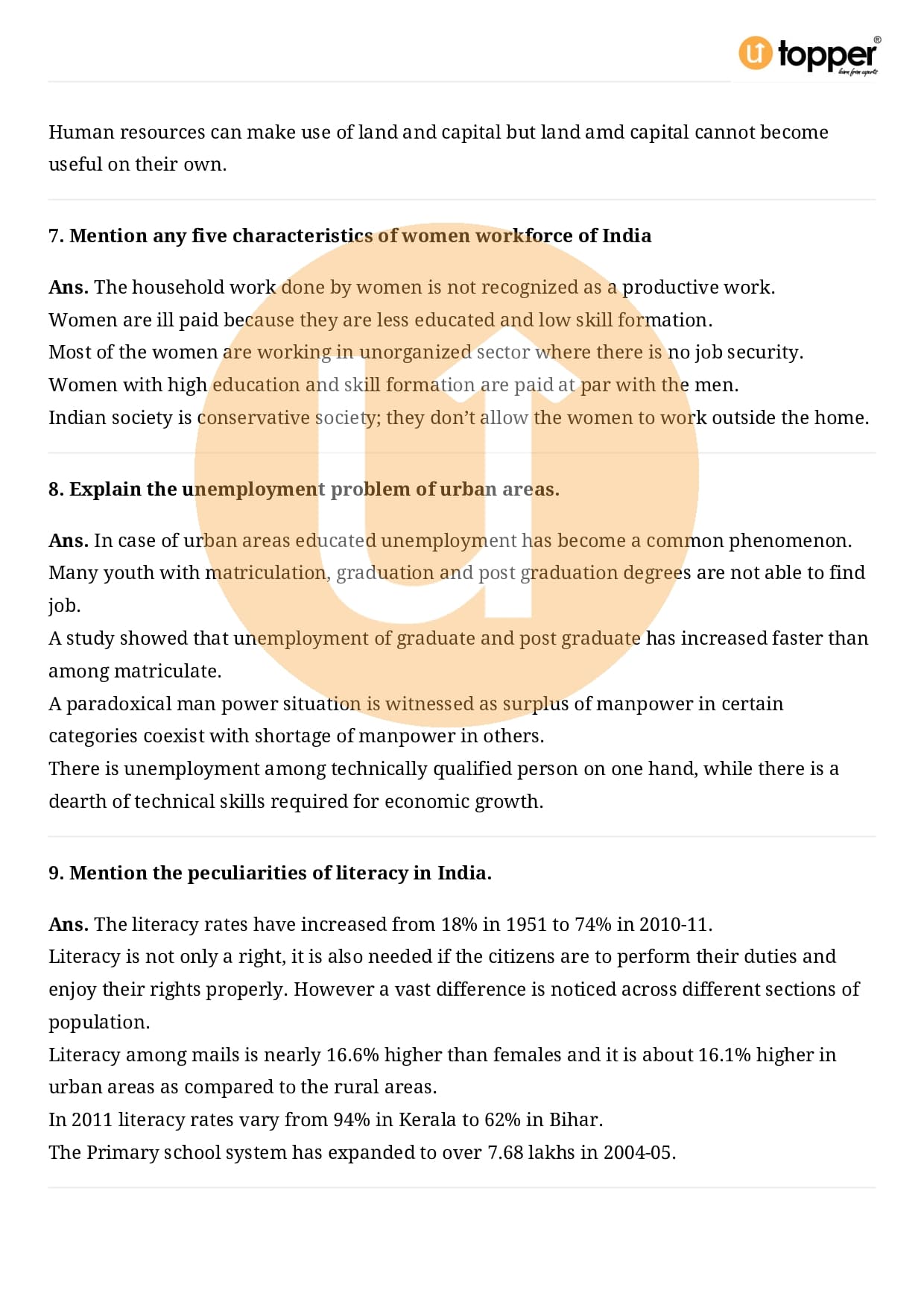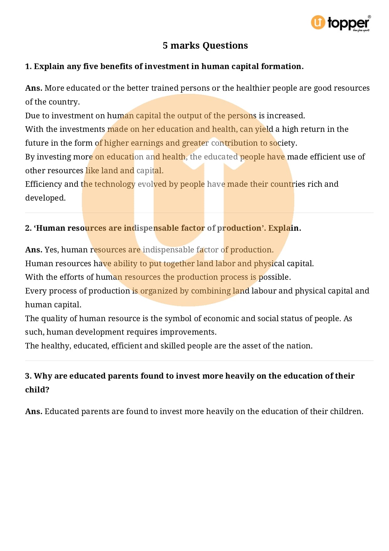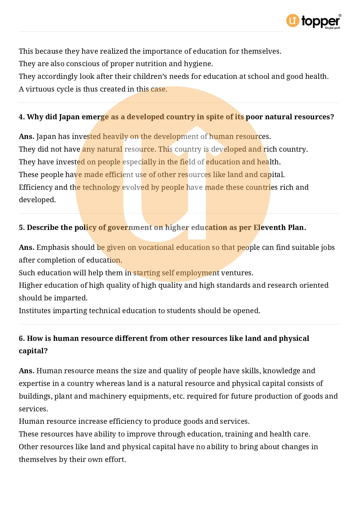 Class 9 Economics Important Question CBSE Chapter 2 – People as Resource