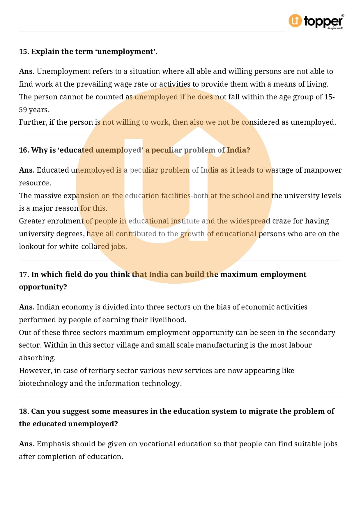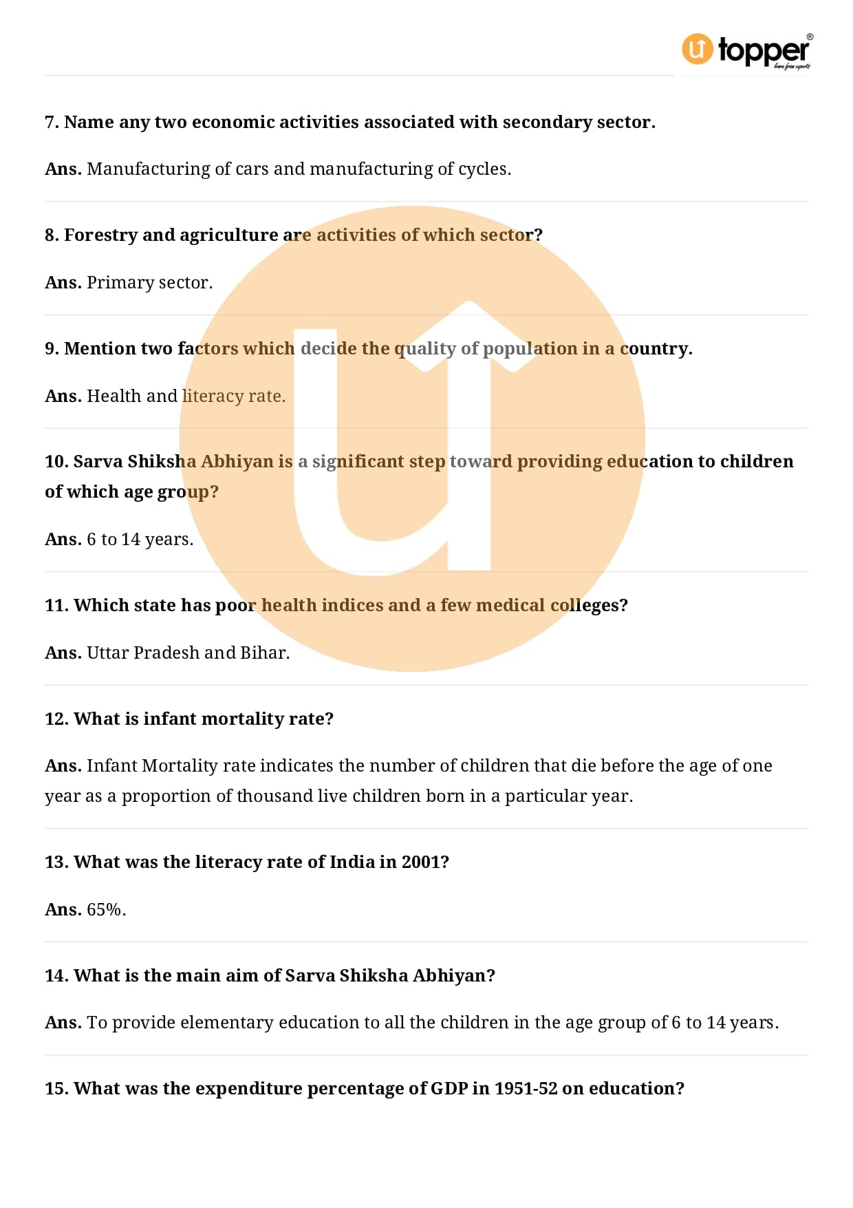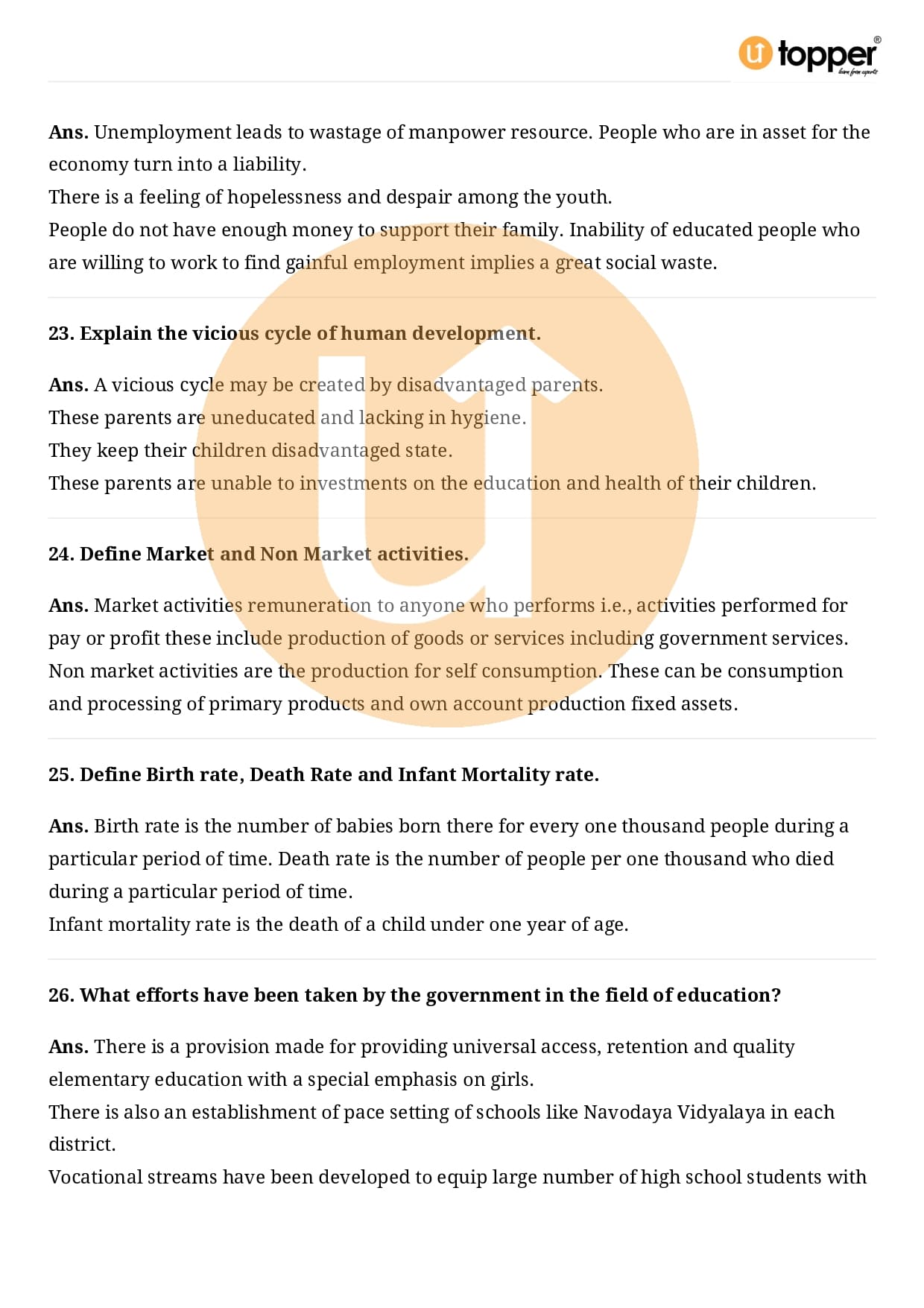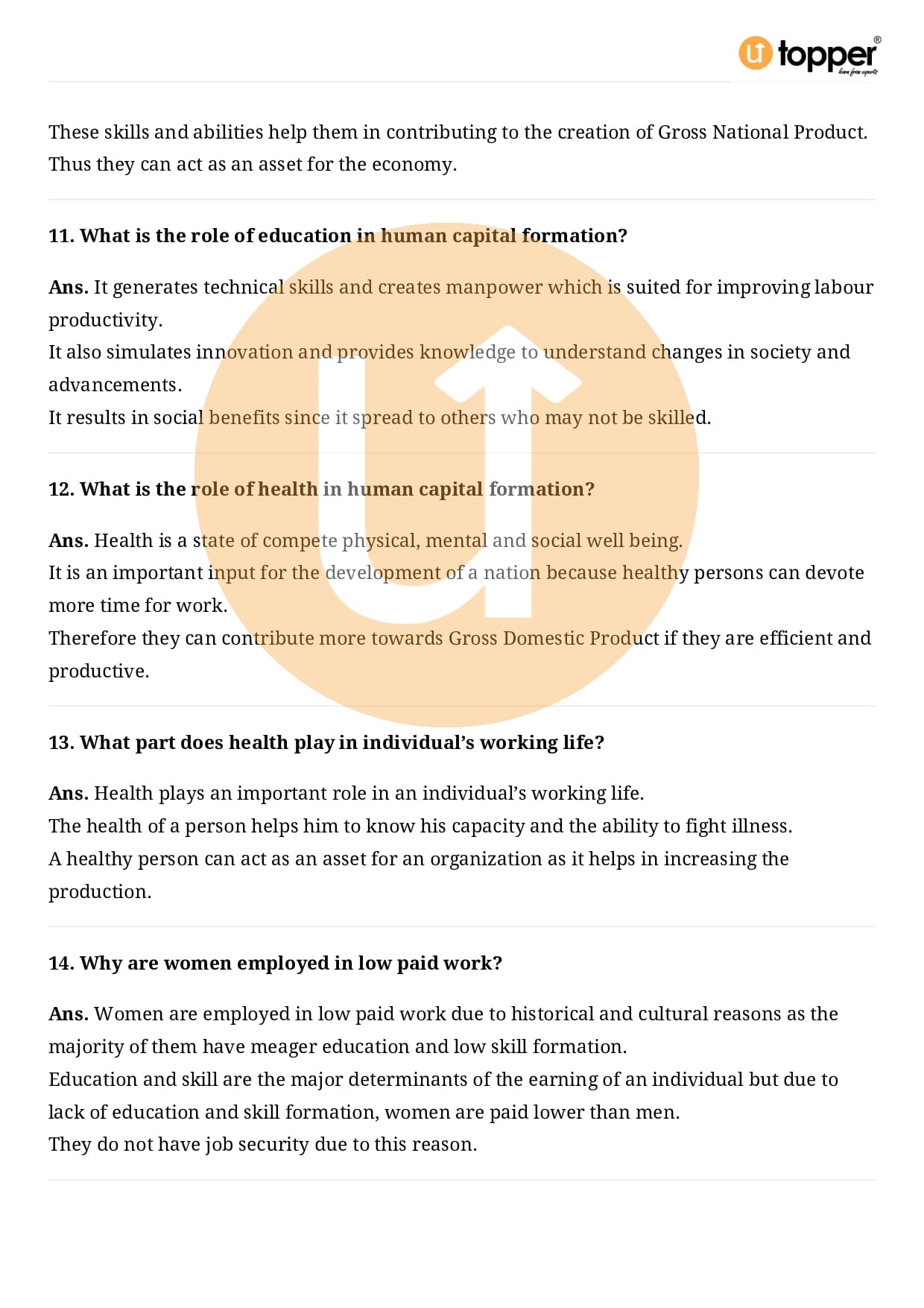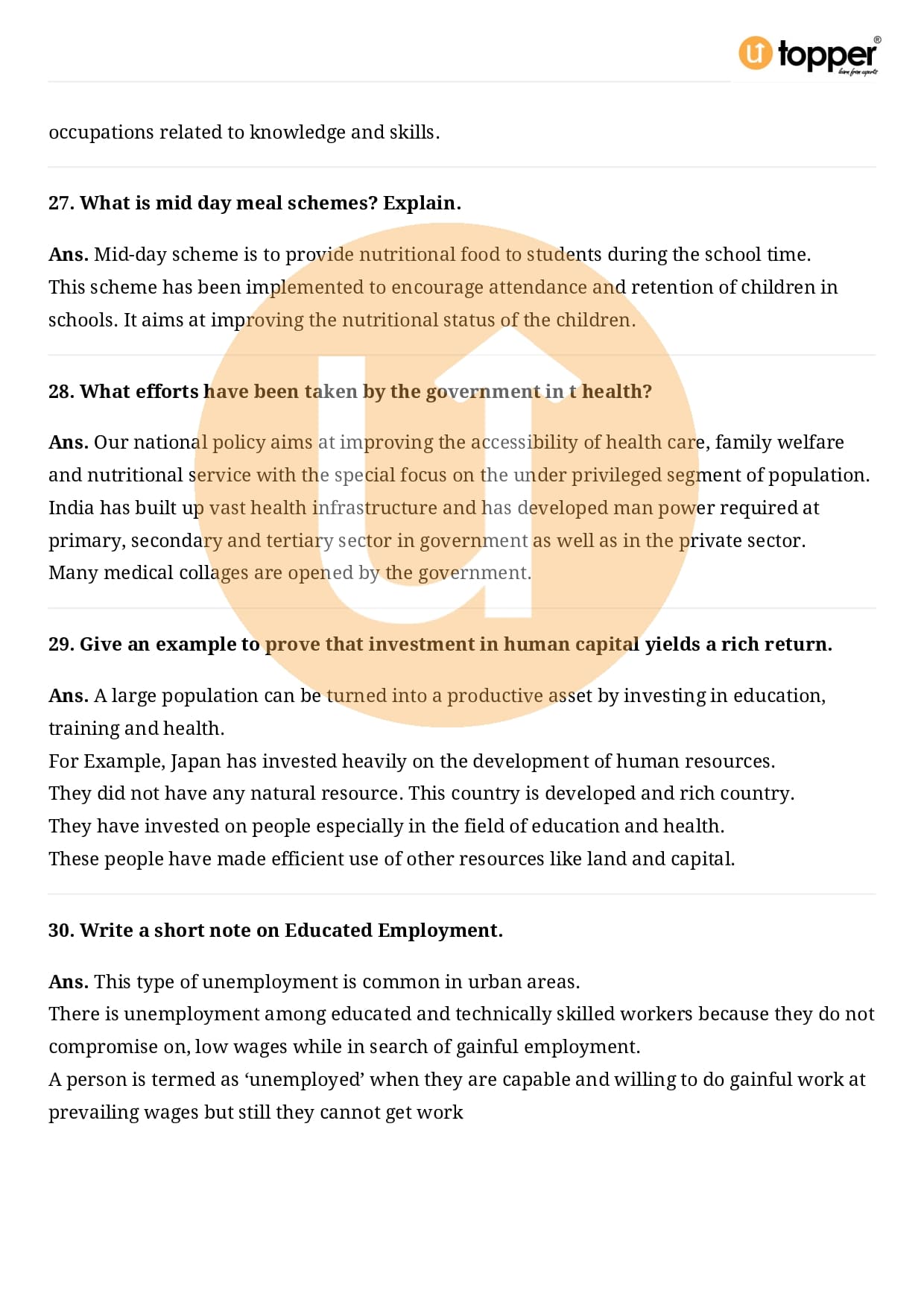 Class 9 Economics Important Question CBSE Chapter 2 – People as Resource
