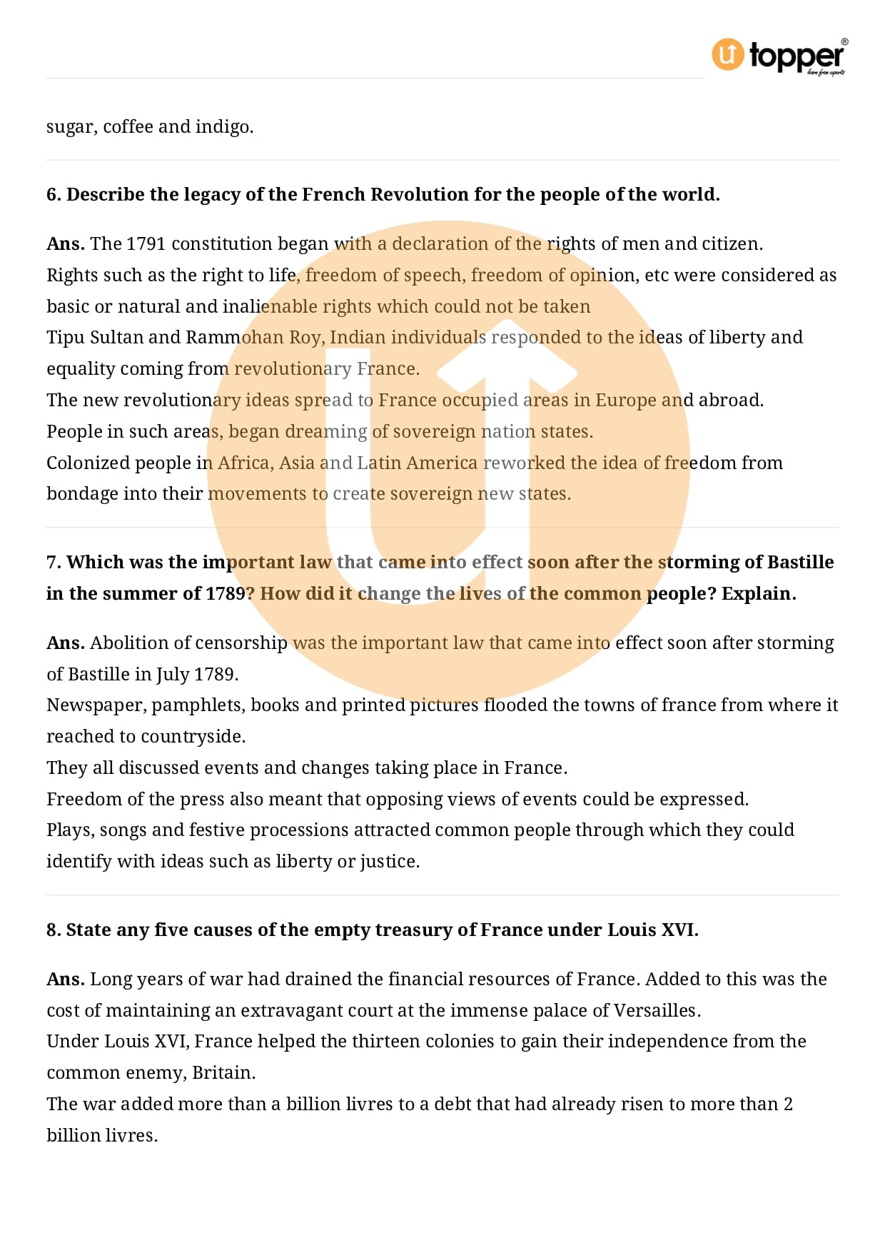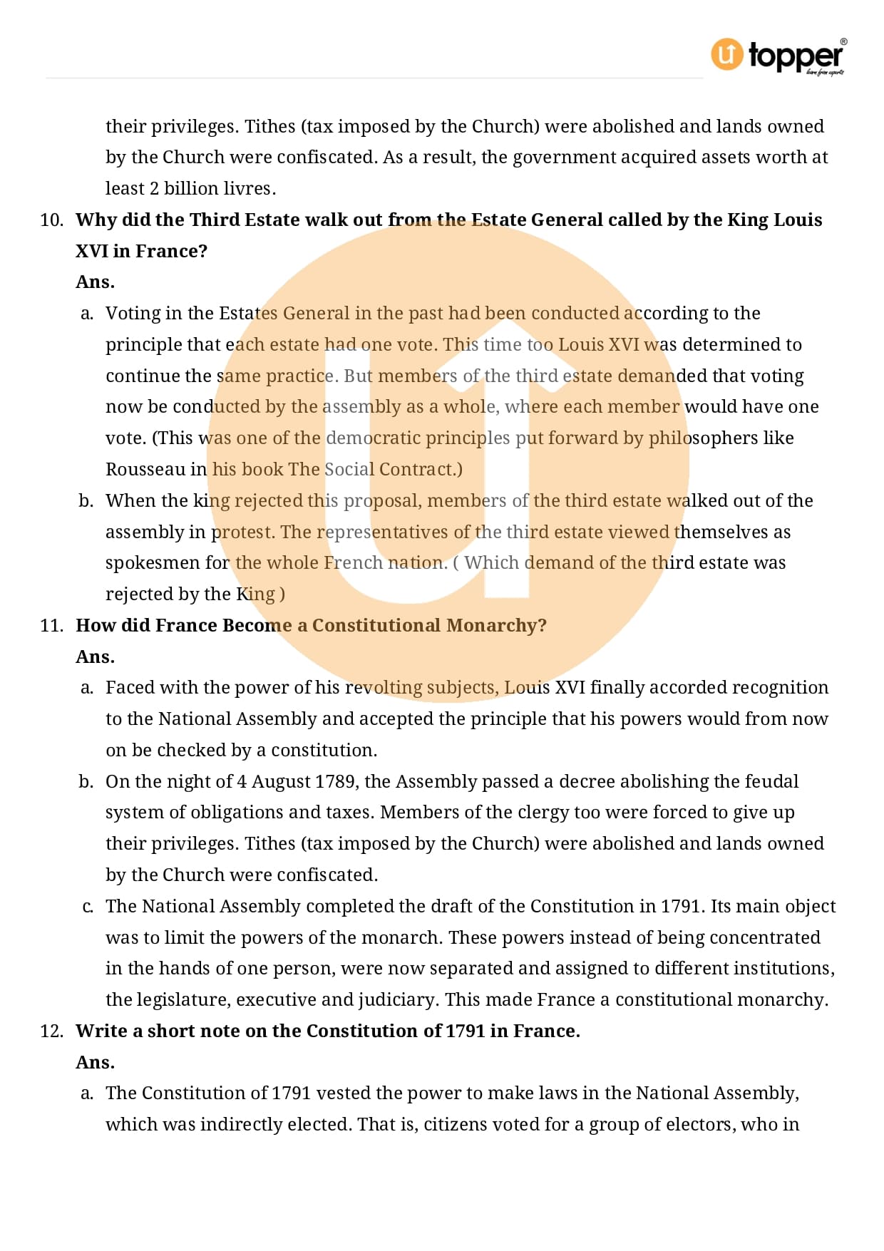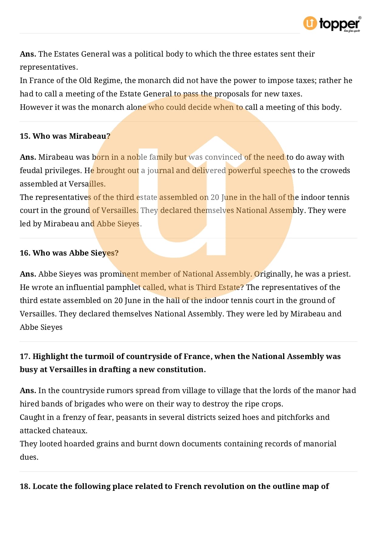 Class 9 History Important Questions Chapter 1 Pdf – The French Revolution