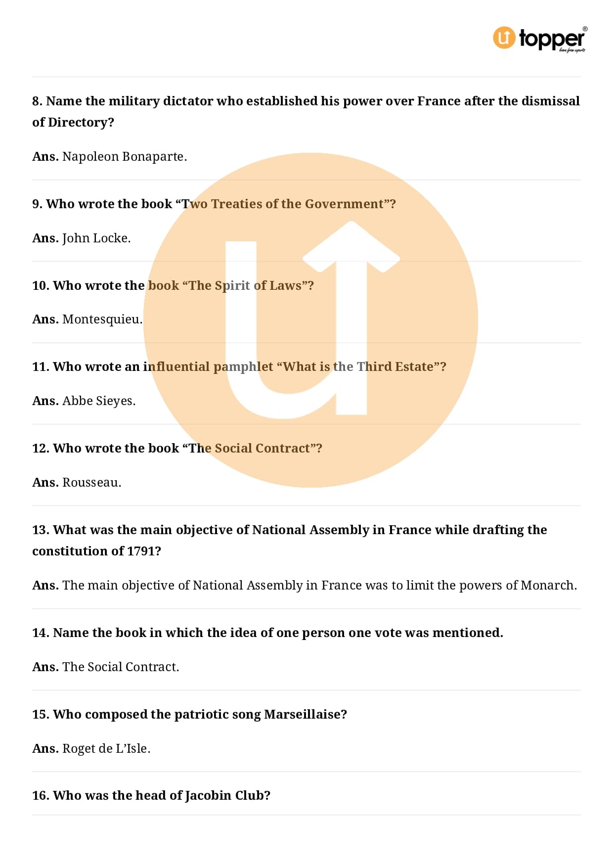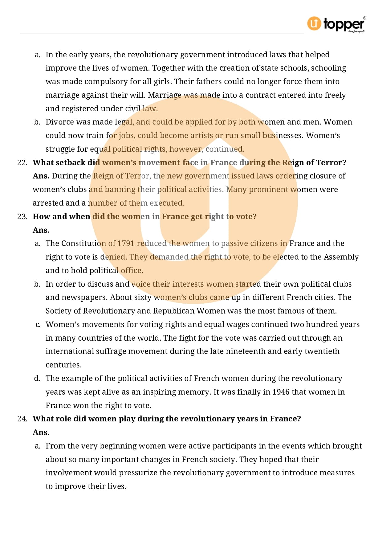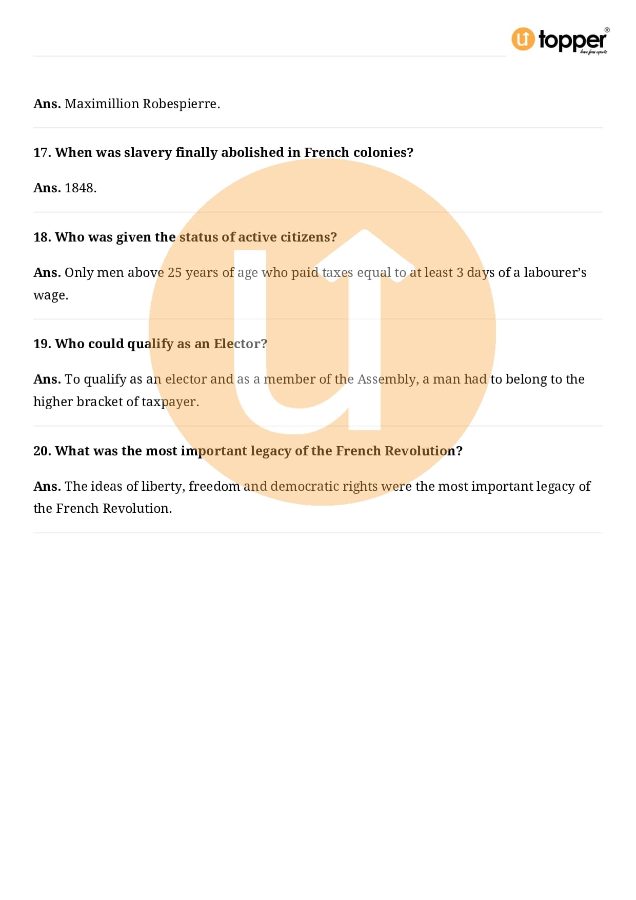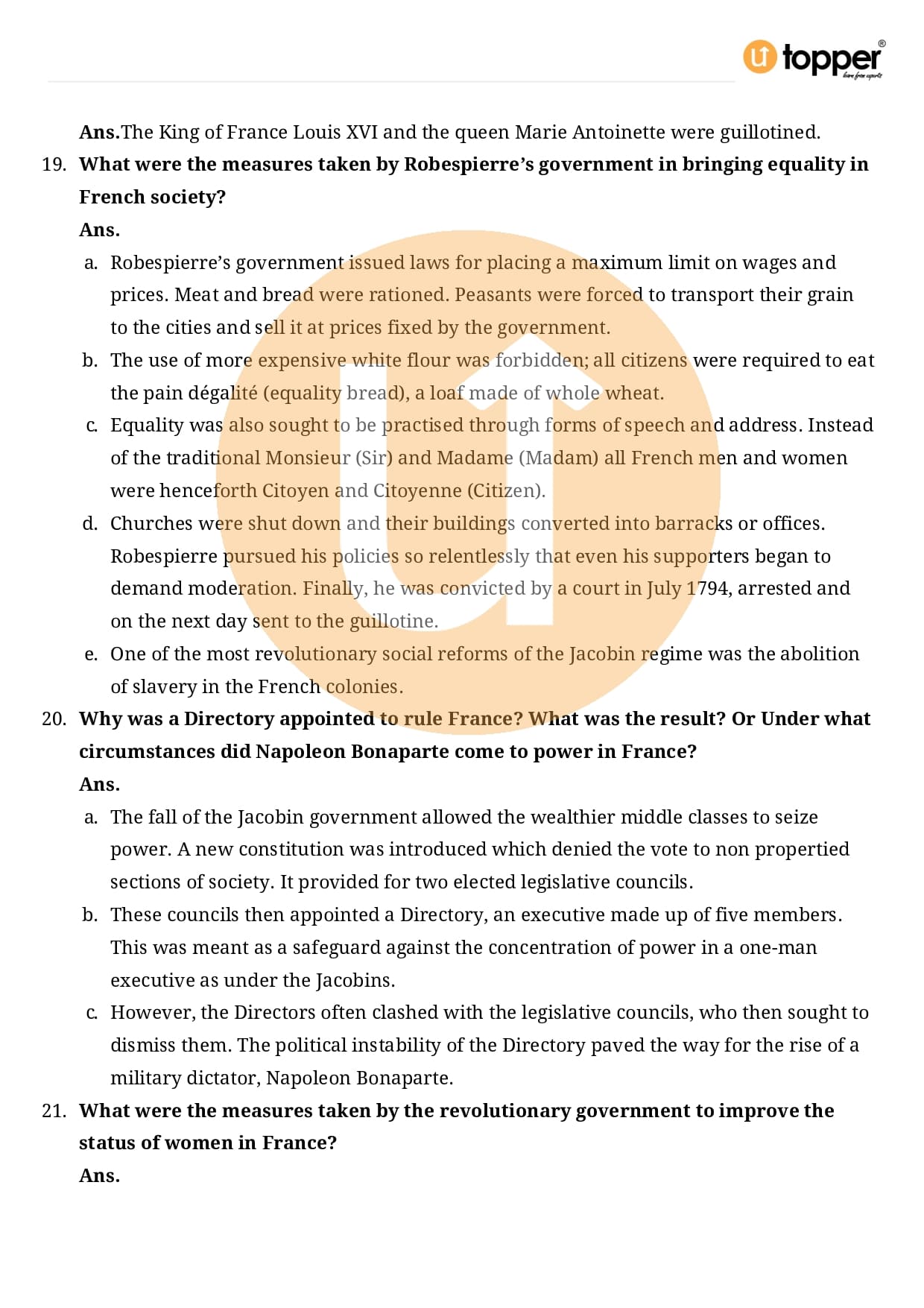 Class 9 History Important Questions Chapter 1 Pdf – The French Revolution