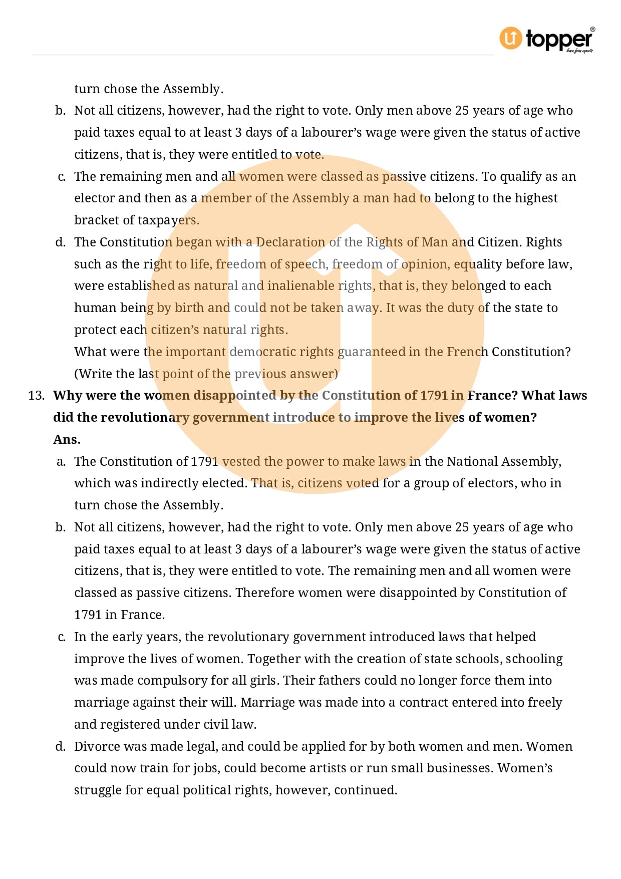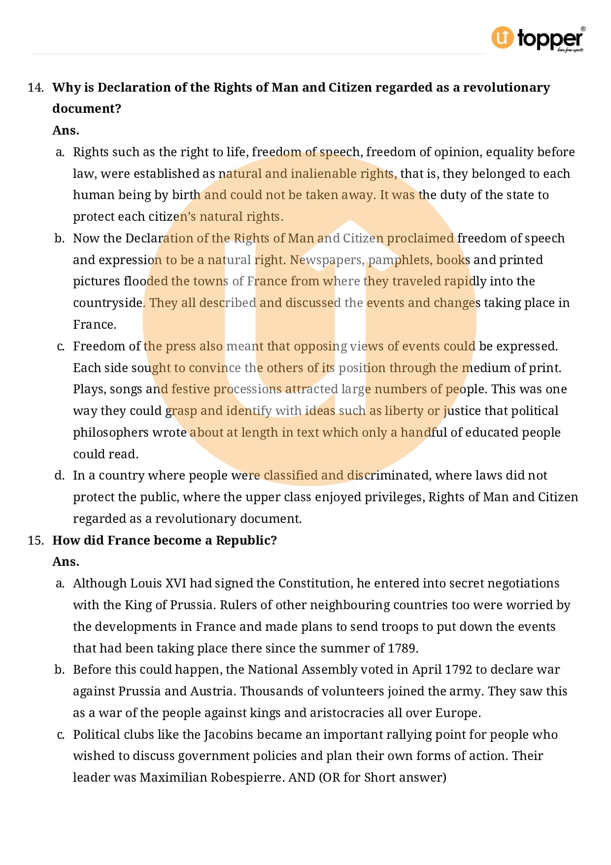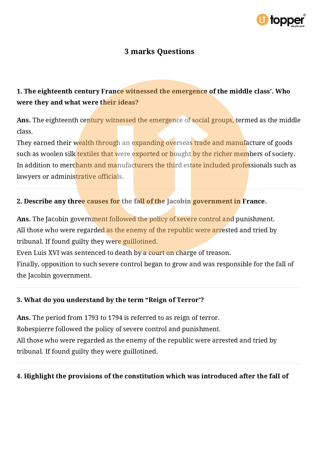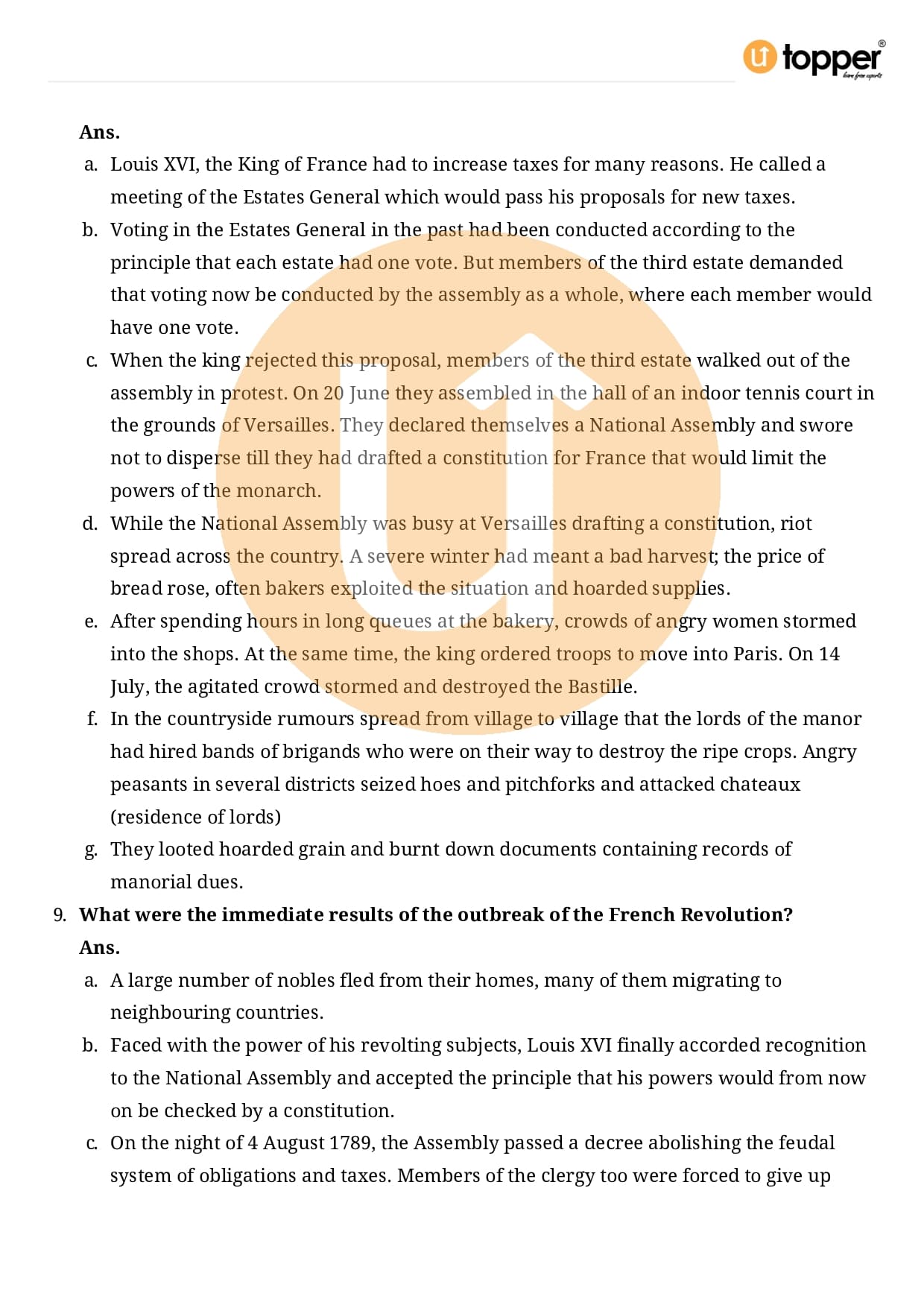 Class 9 History Important Question CBSE Chapter 1 – The French Revolution