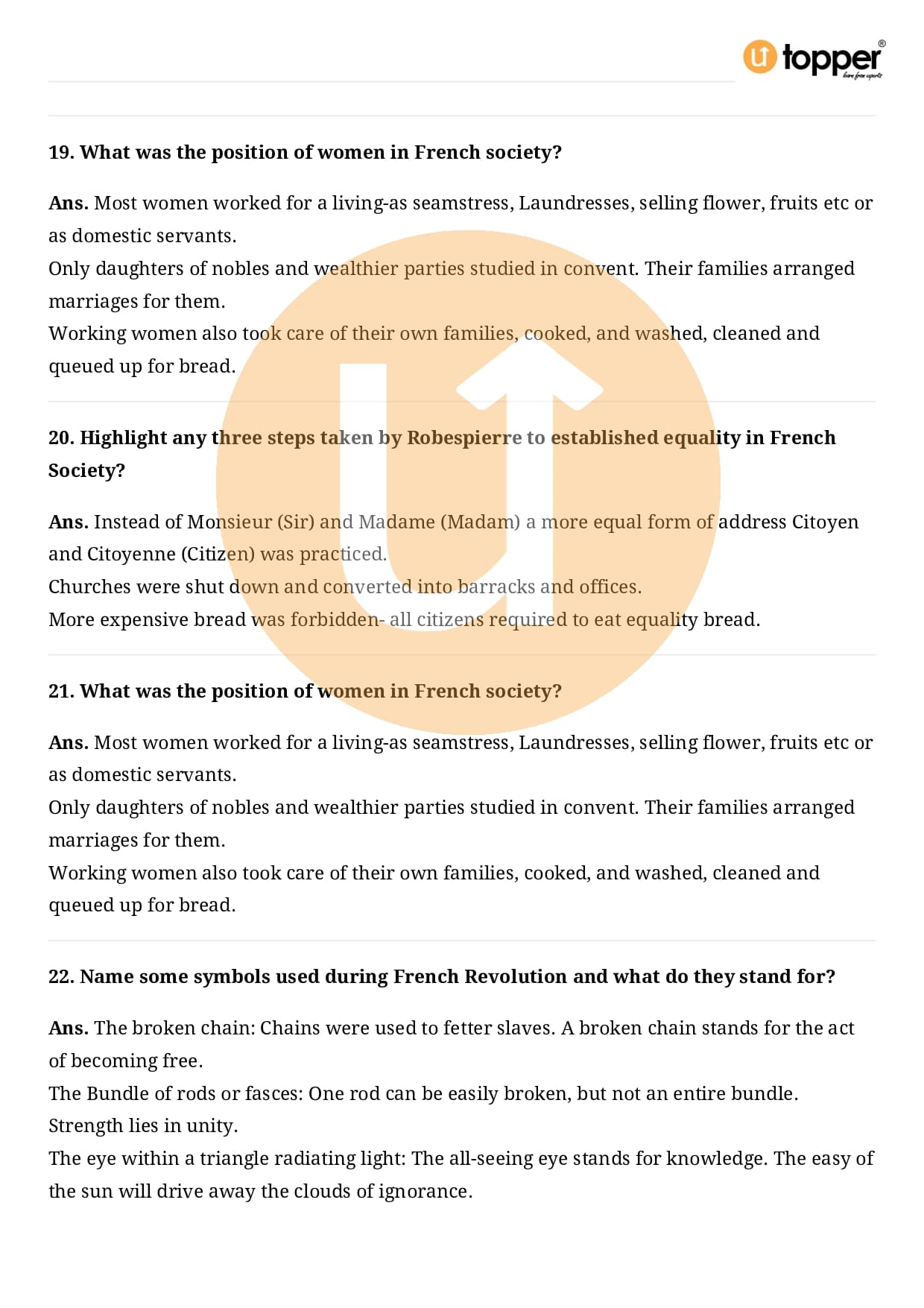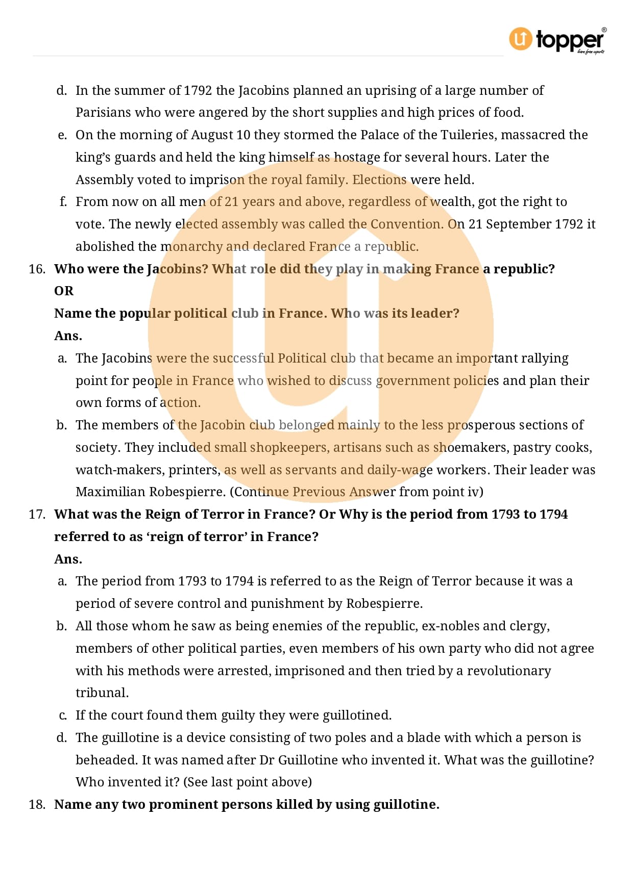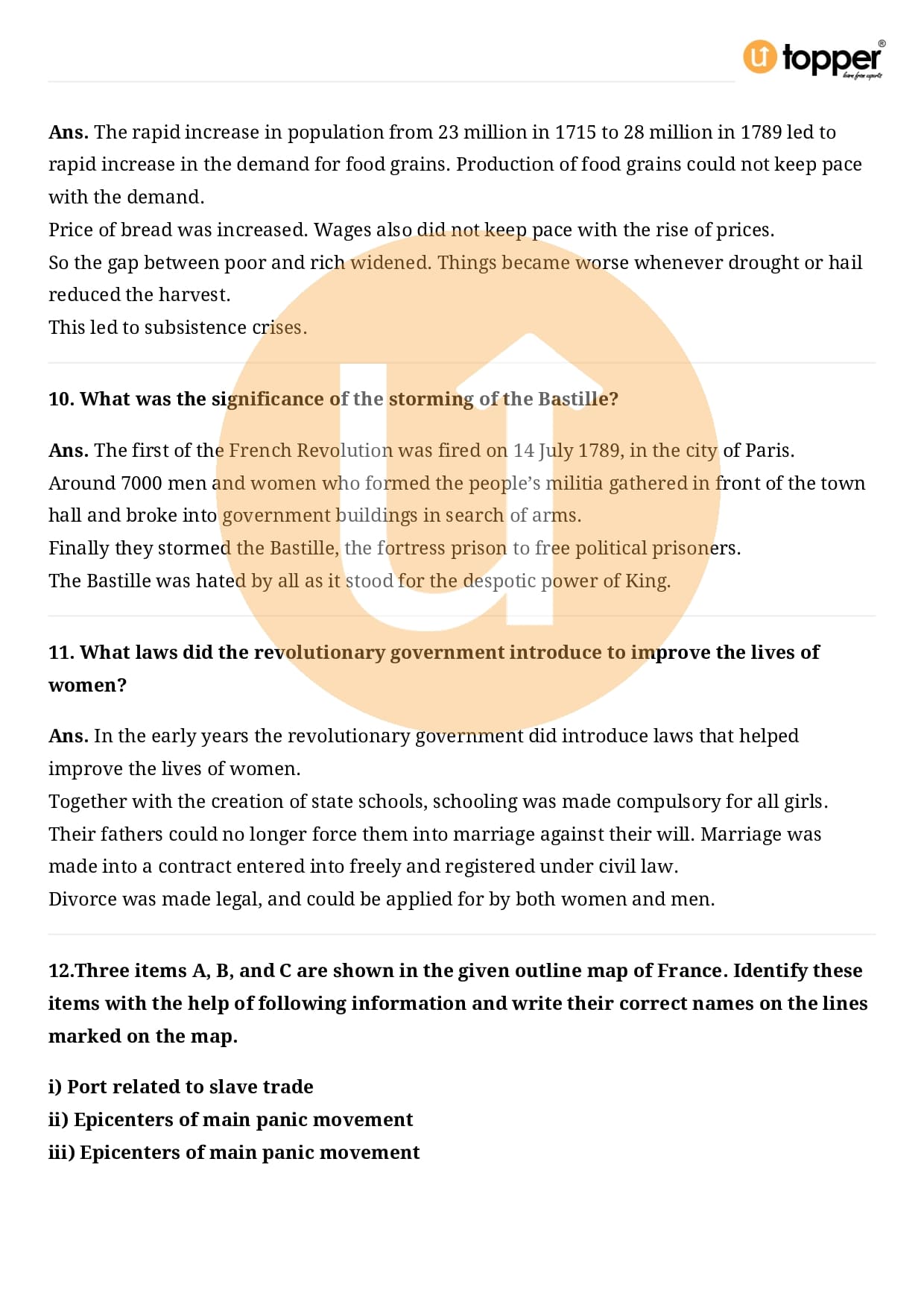 Class 9 History Important Question CBSE Chapter 1 – The French Revolution