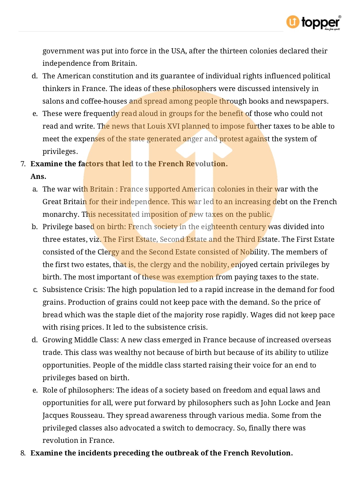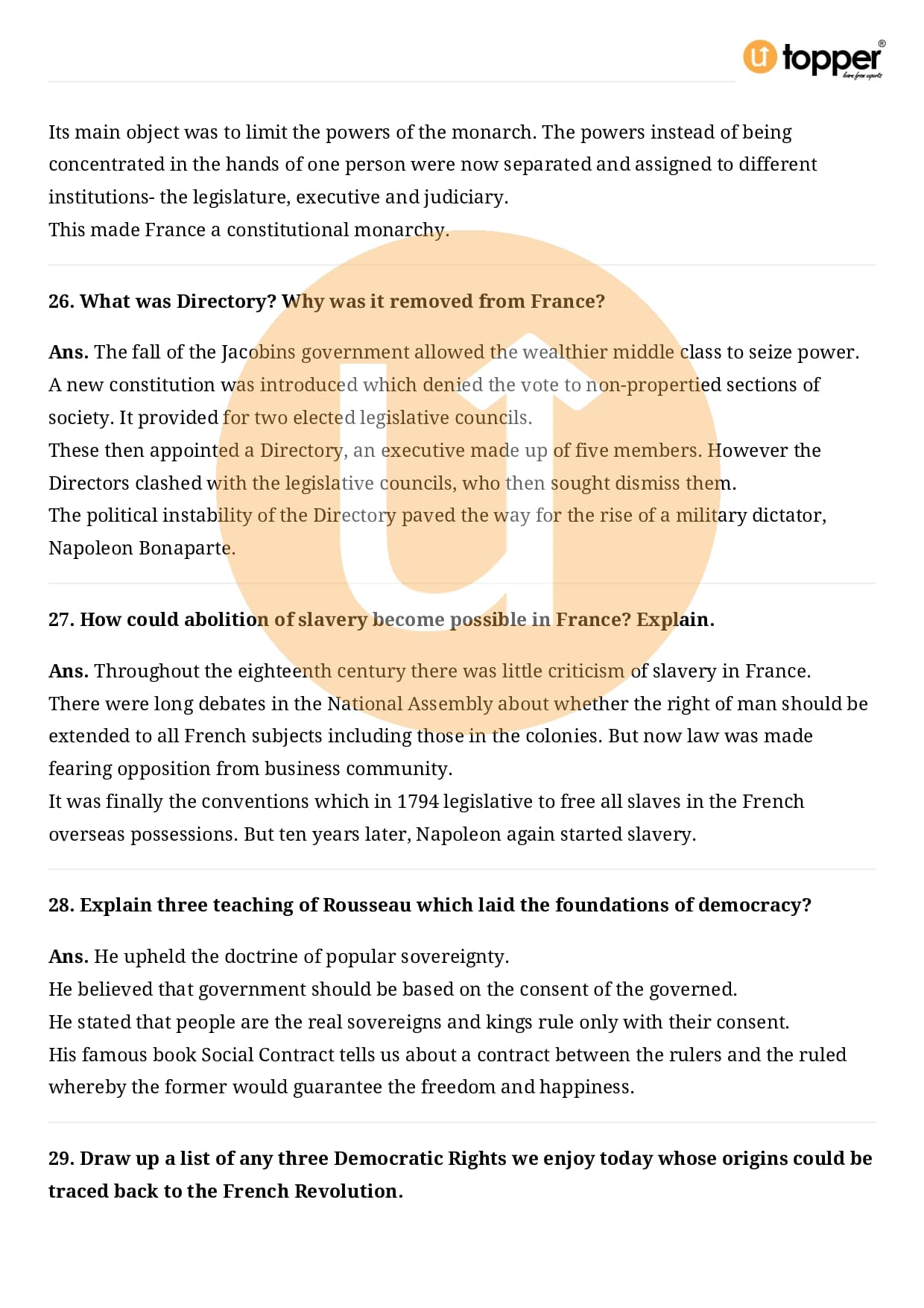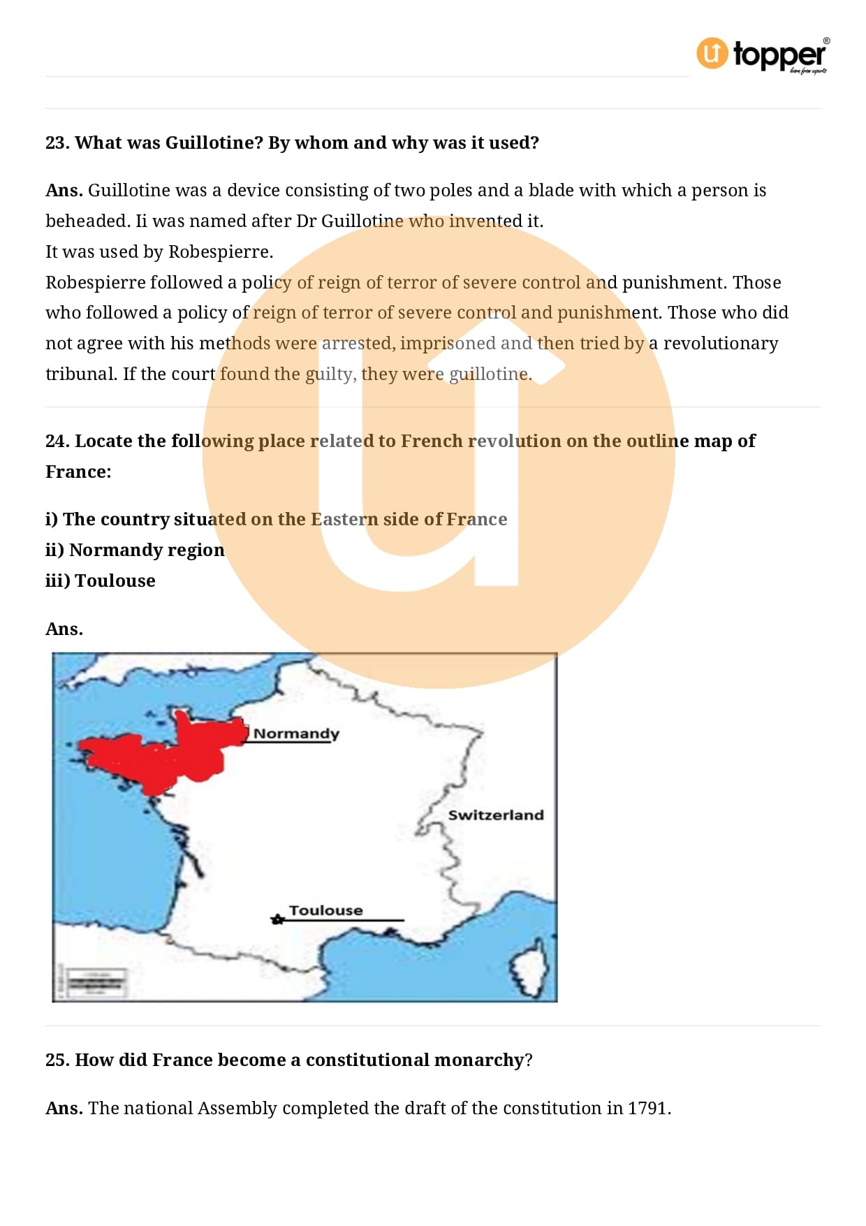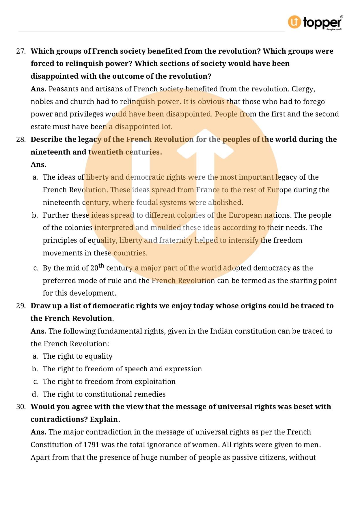 Class 9 History Important Question CBSE Chapter 1 – The French Revolution