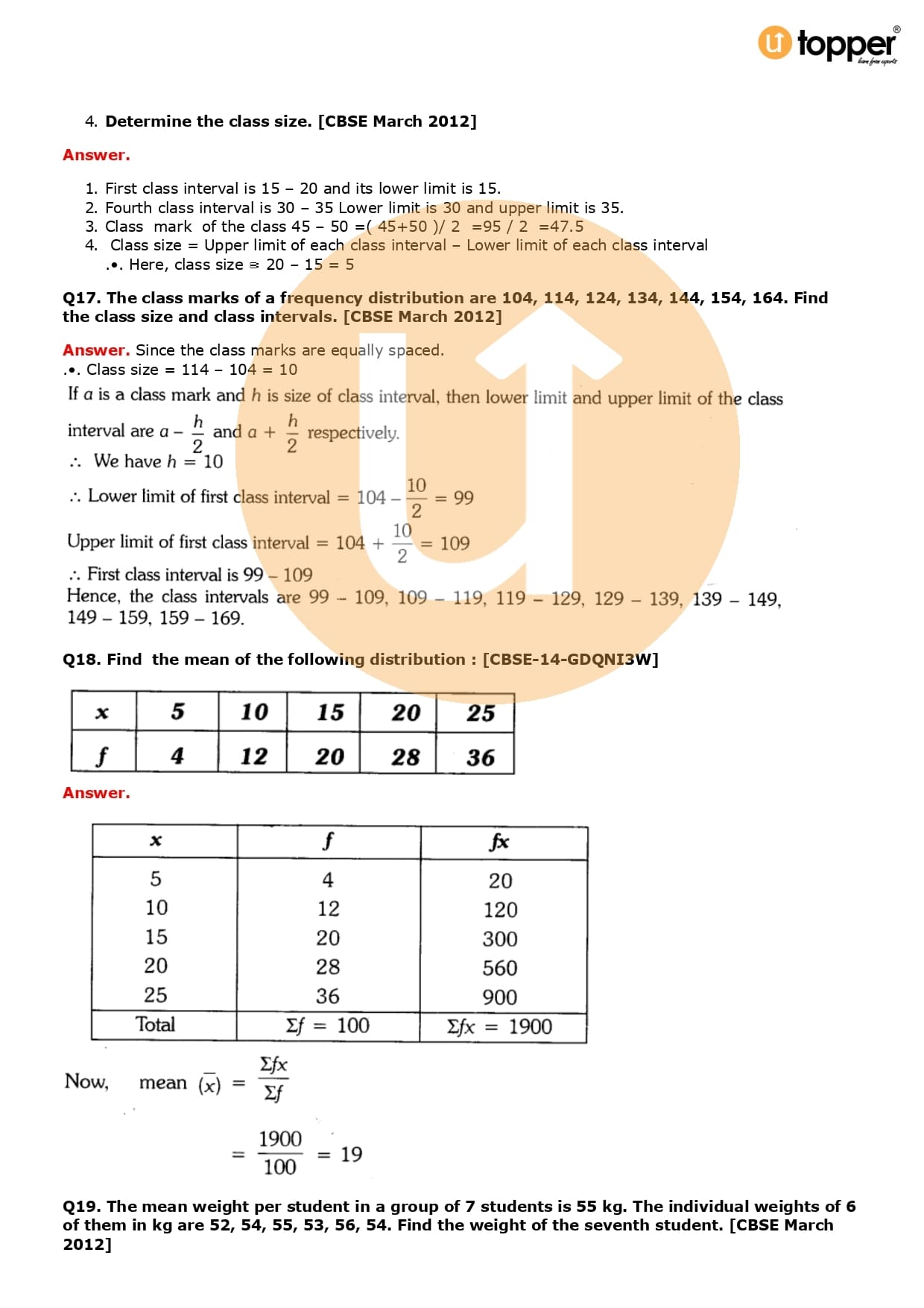 Class 9 Maths Important Question CBSE Chapter 7 – Statistics