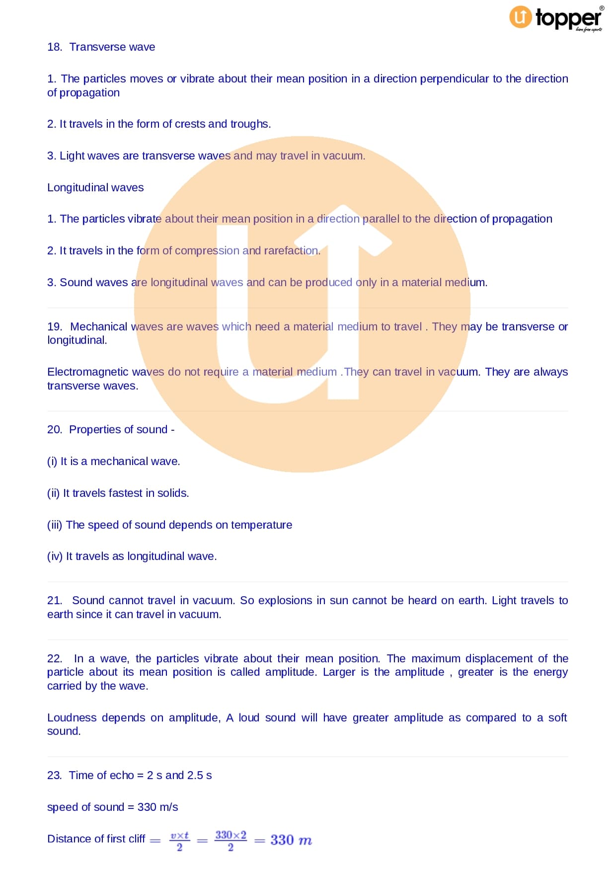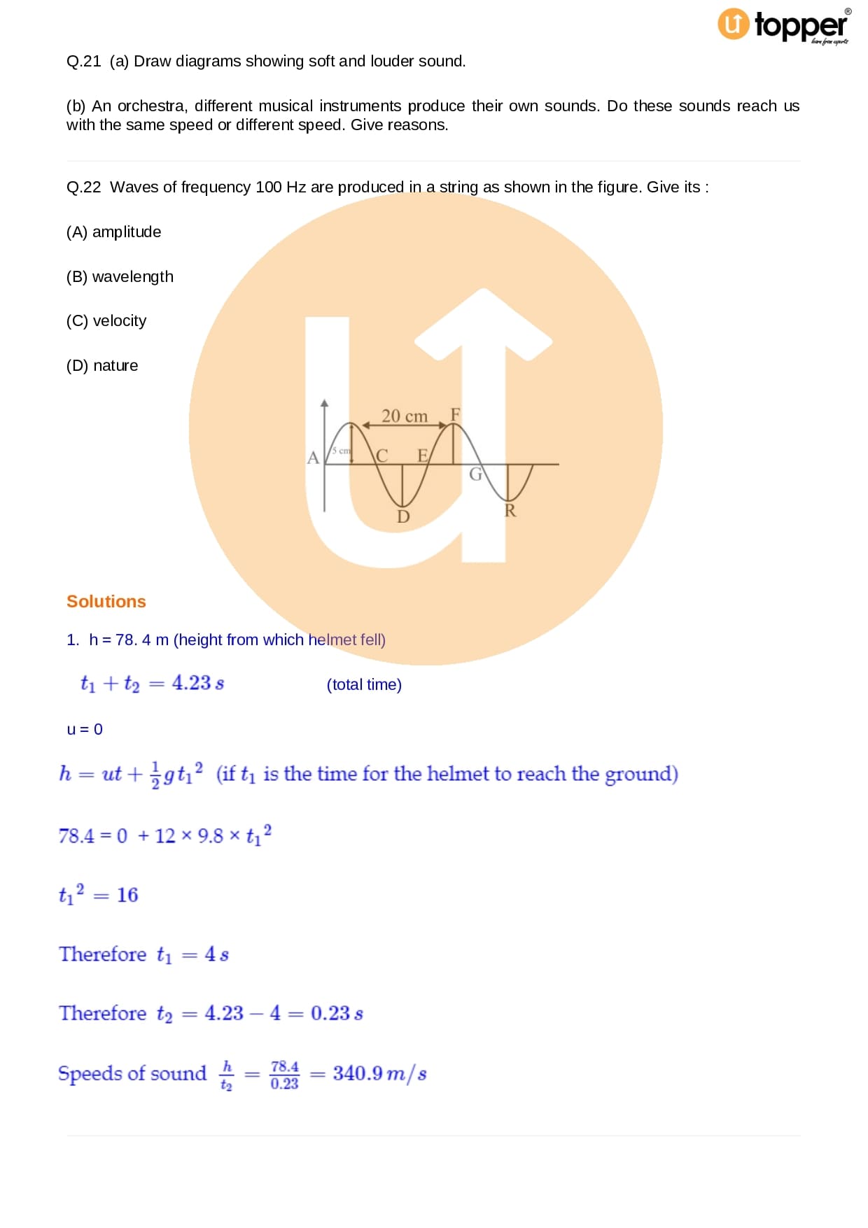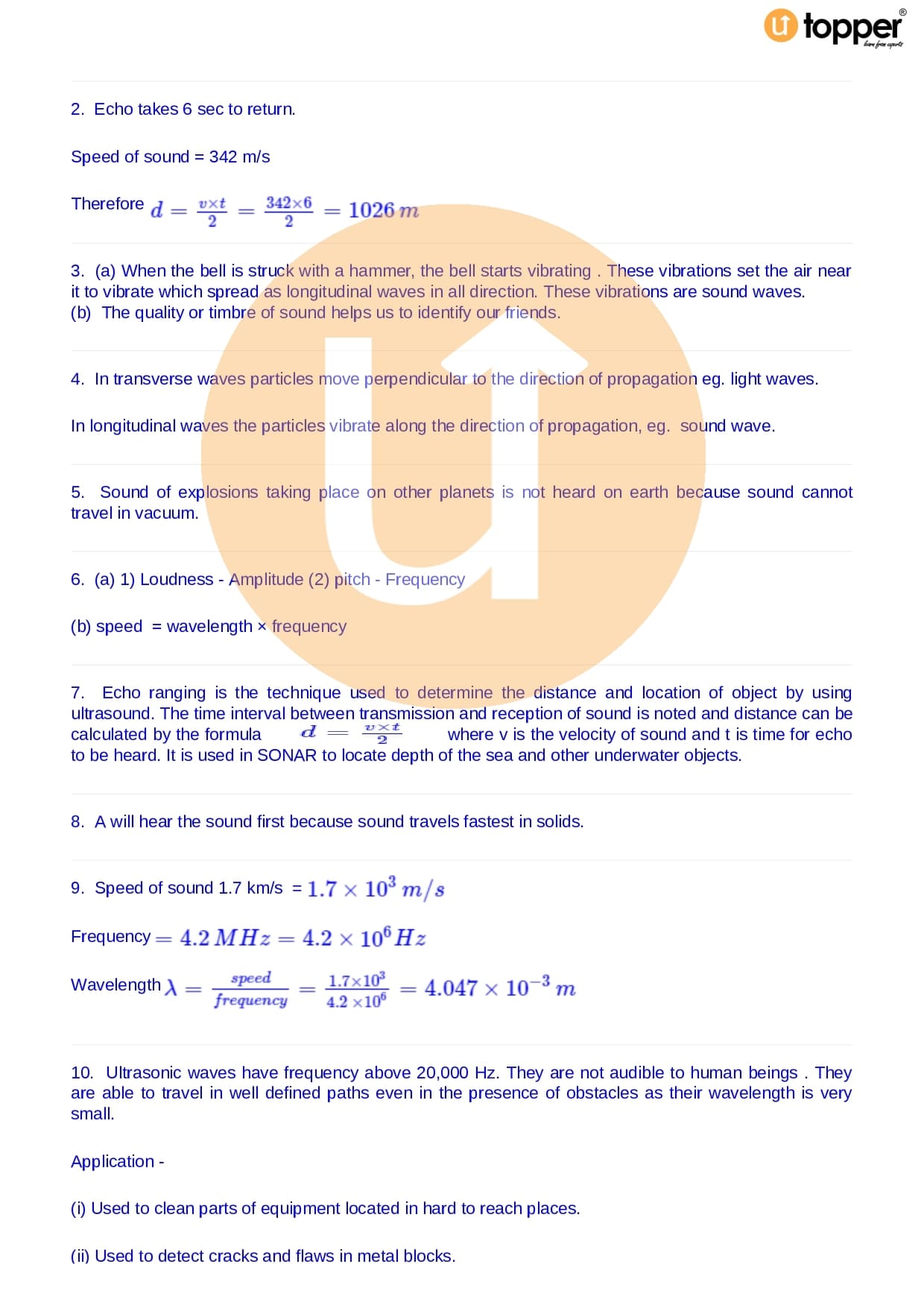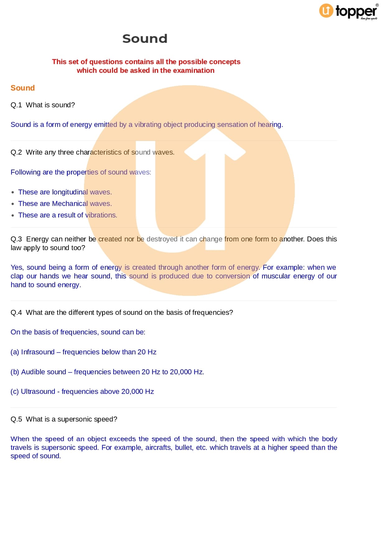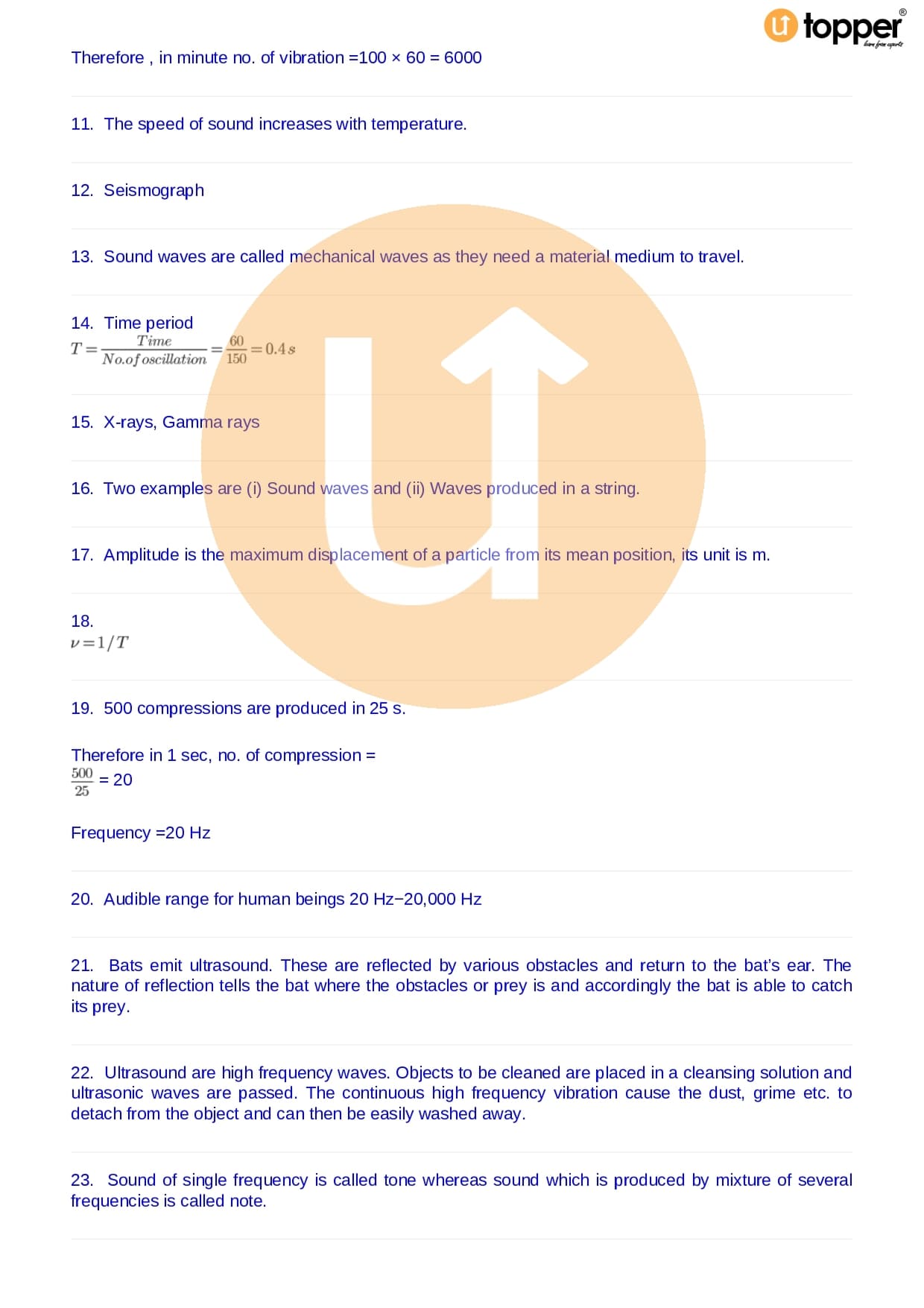 Class 9 Science Important Questions Chapter 12 Pdf – Sound