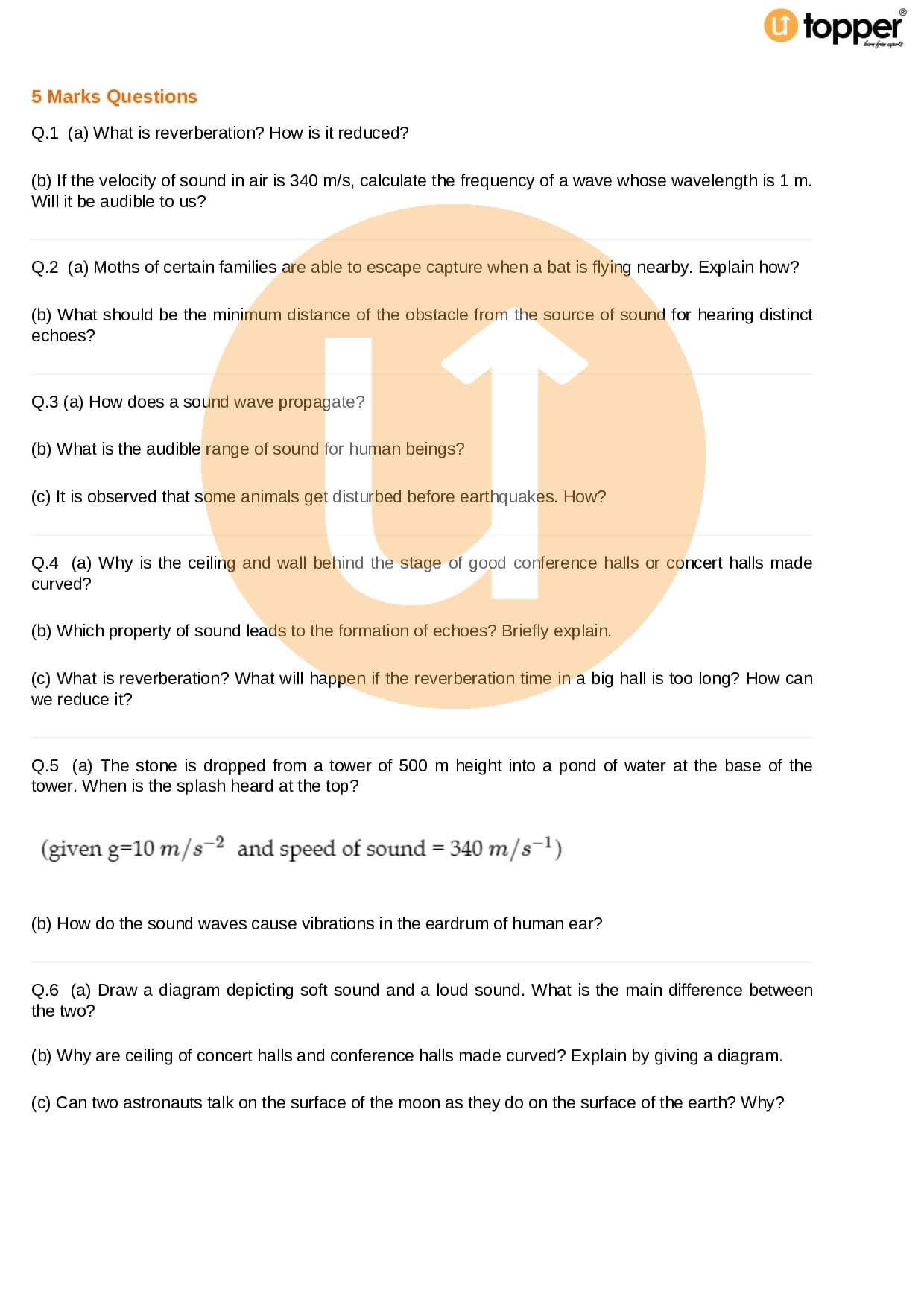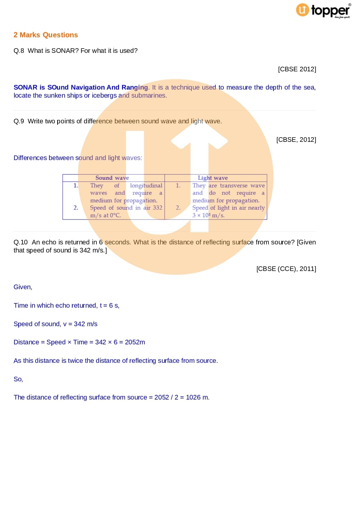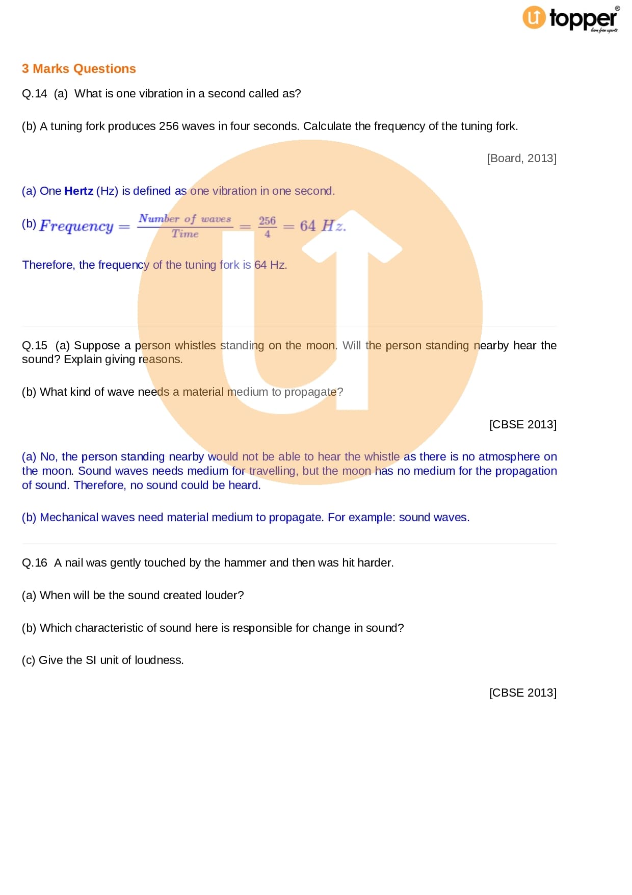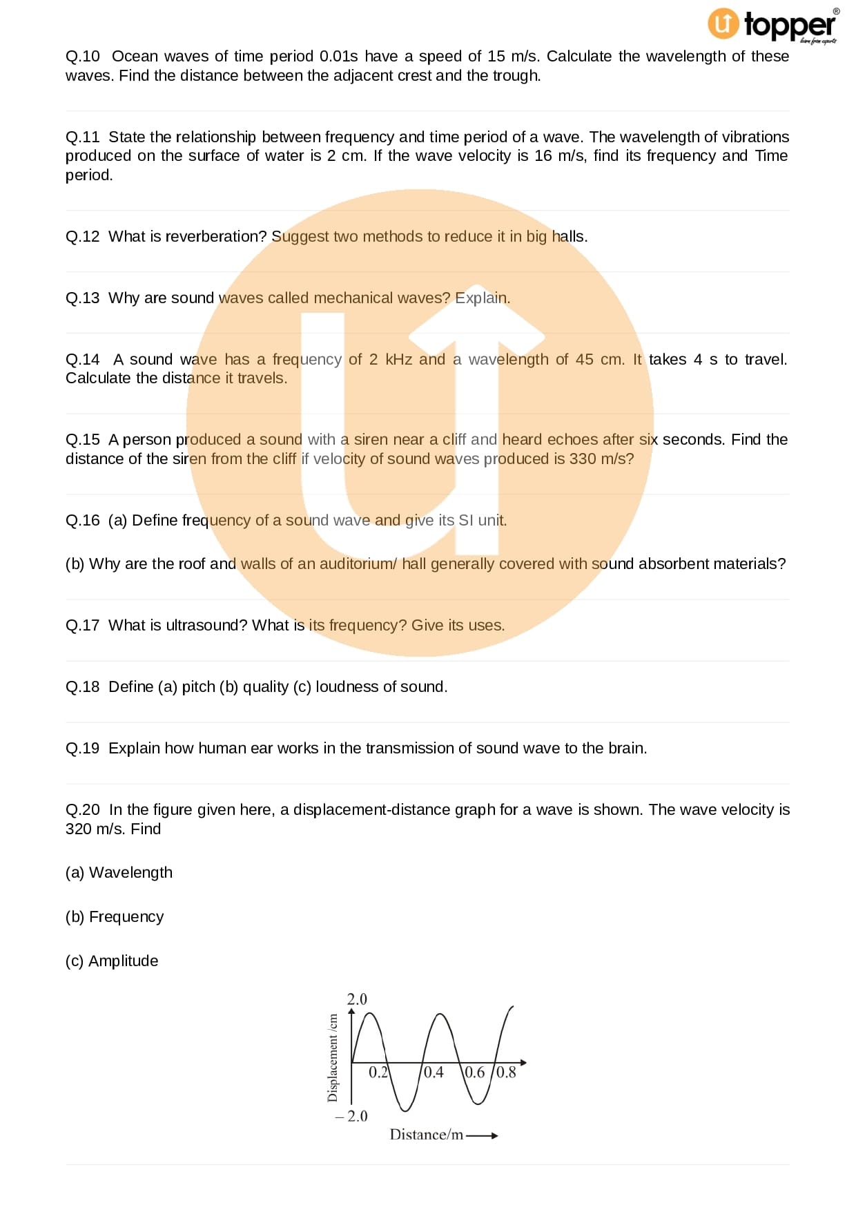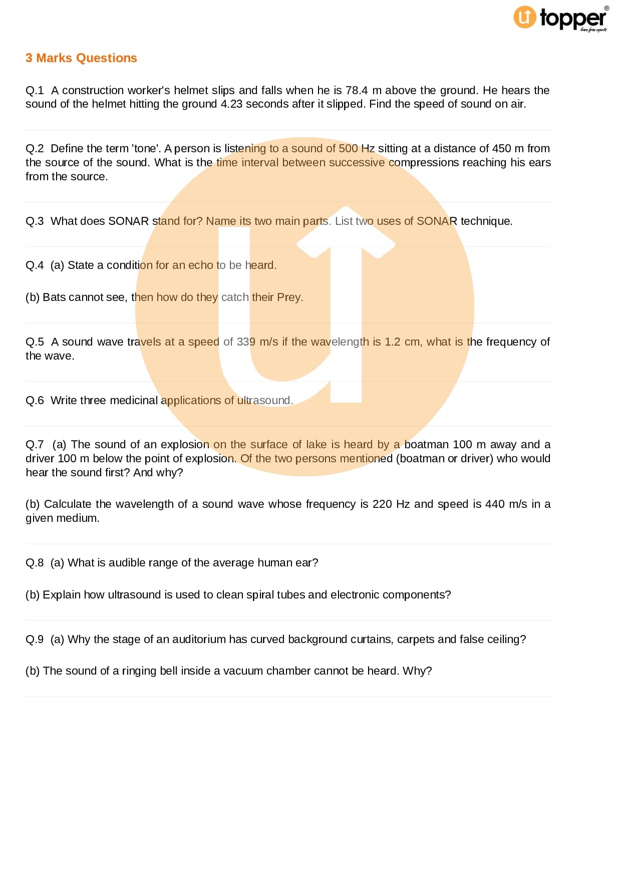 Class 9 Science Important Question CBSE Chapter 12 – Sound