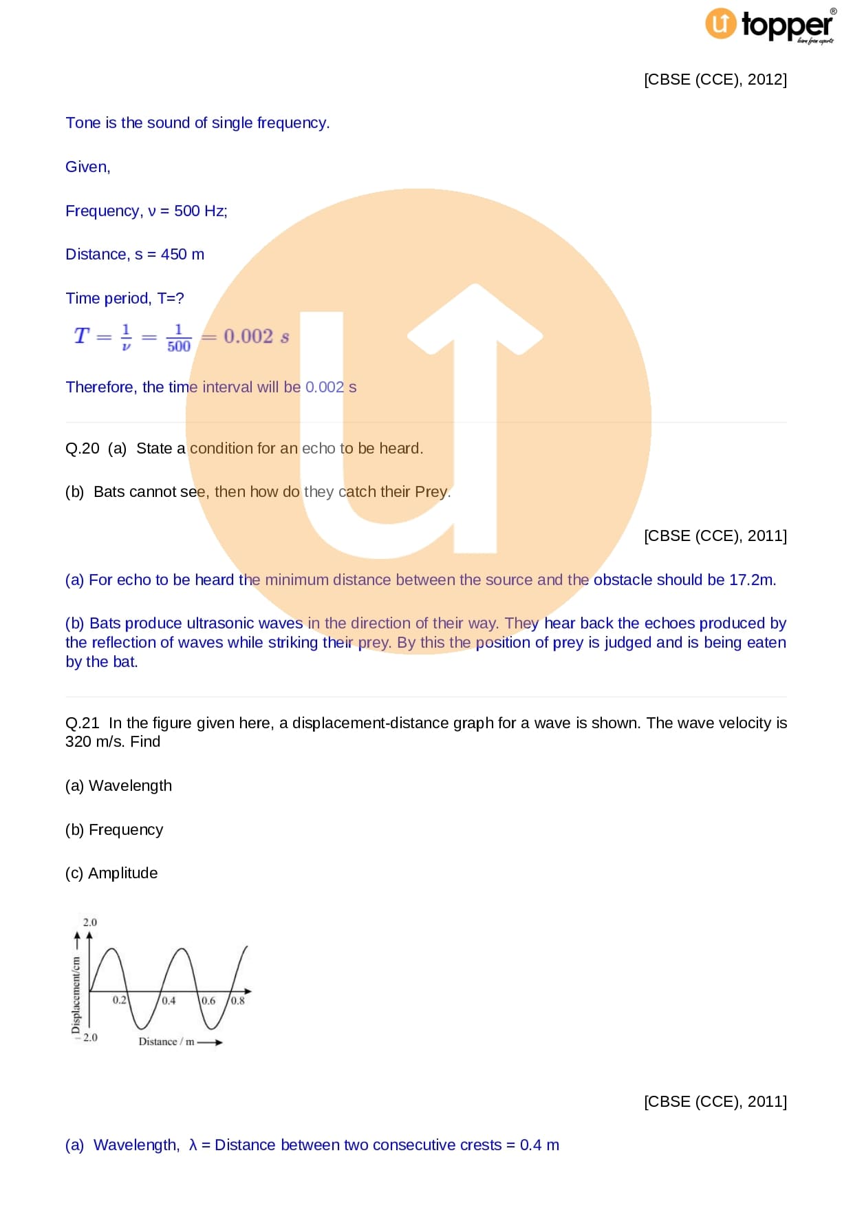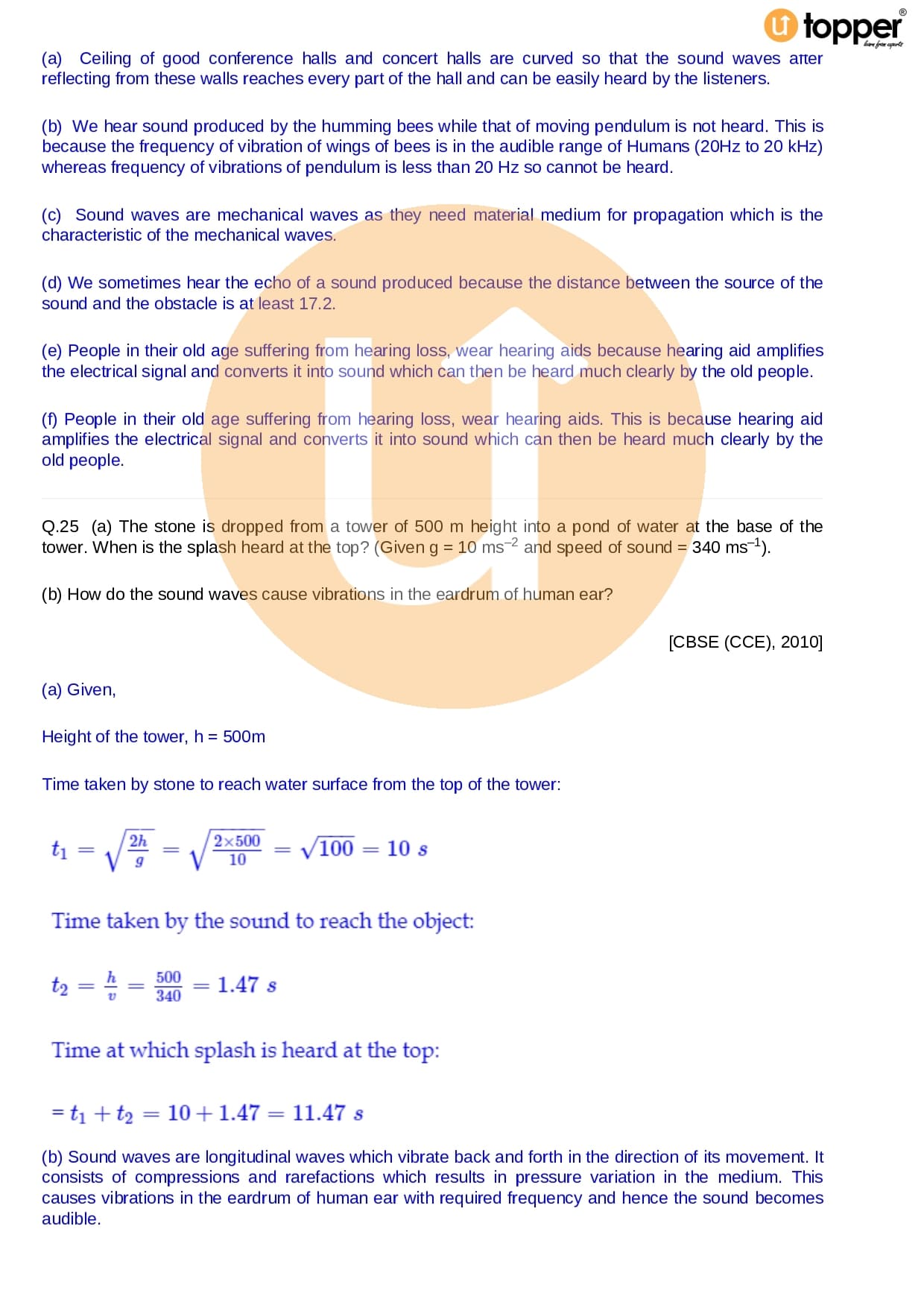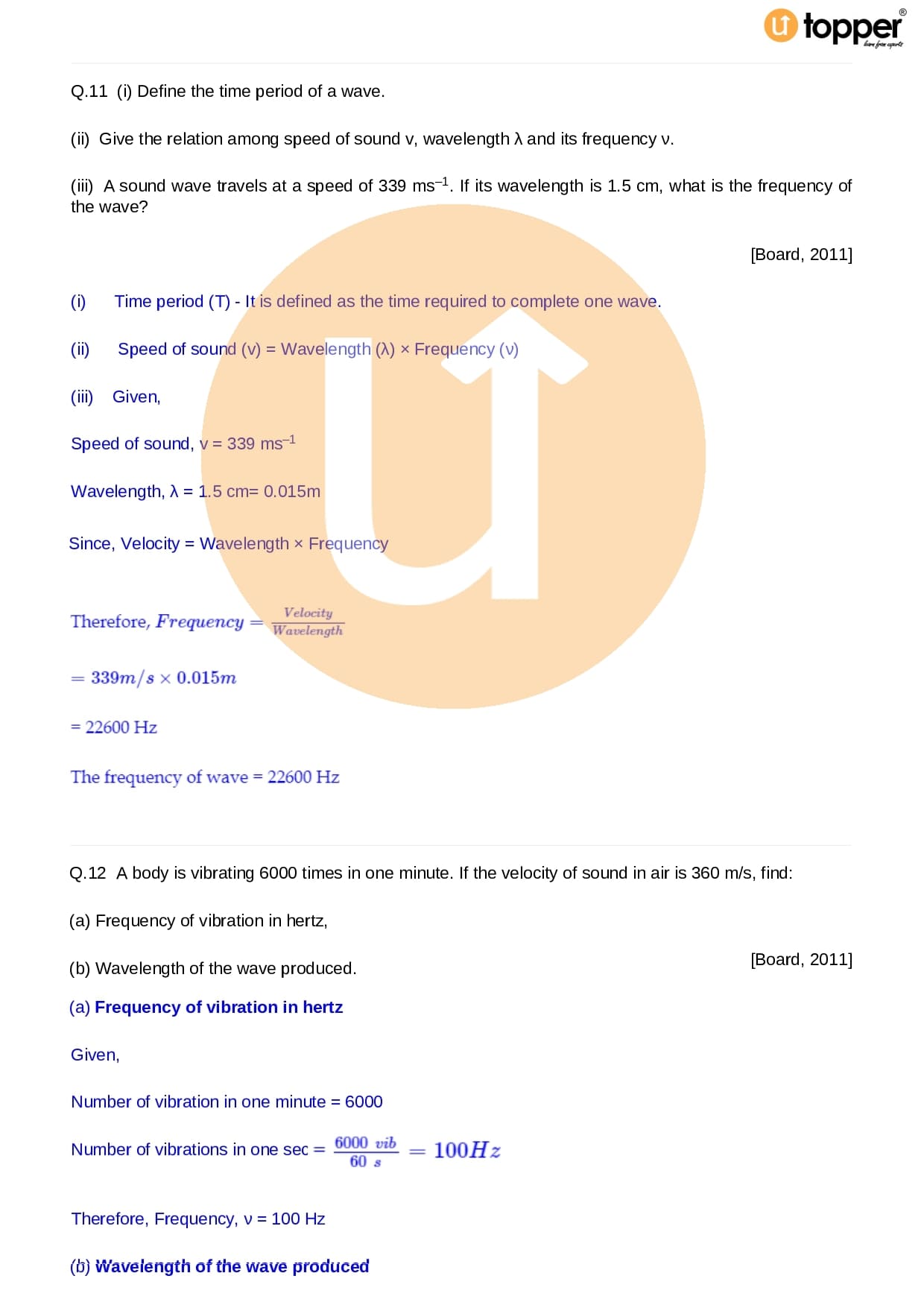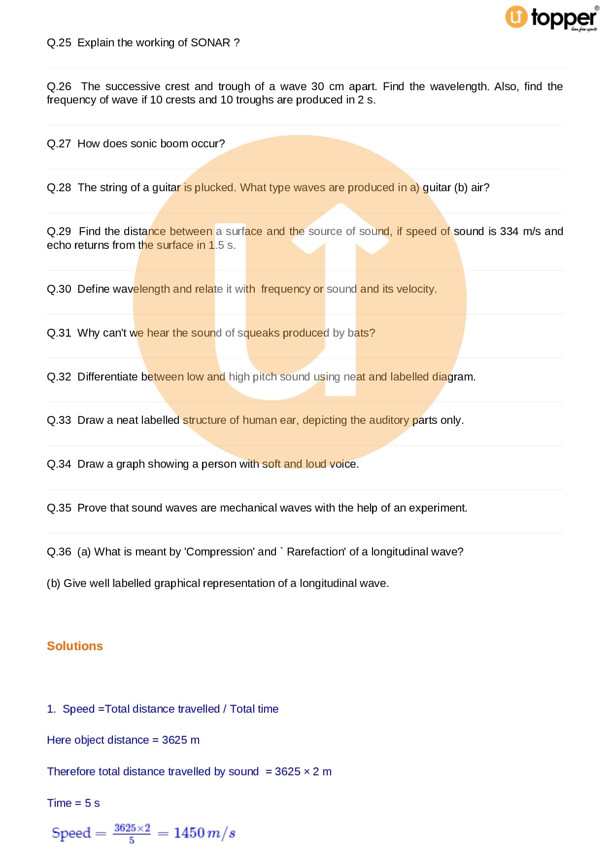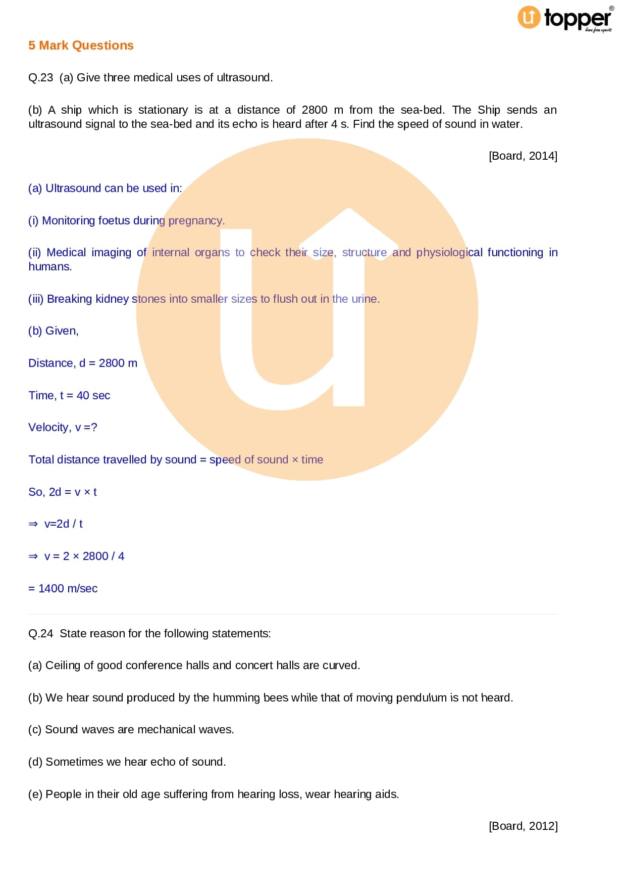 Class 9 Science Important Question CBSE Chapter 12 – Sound
