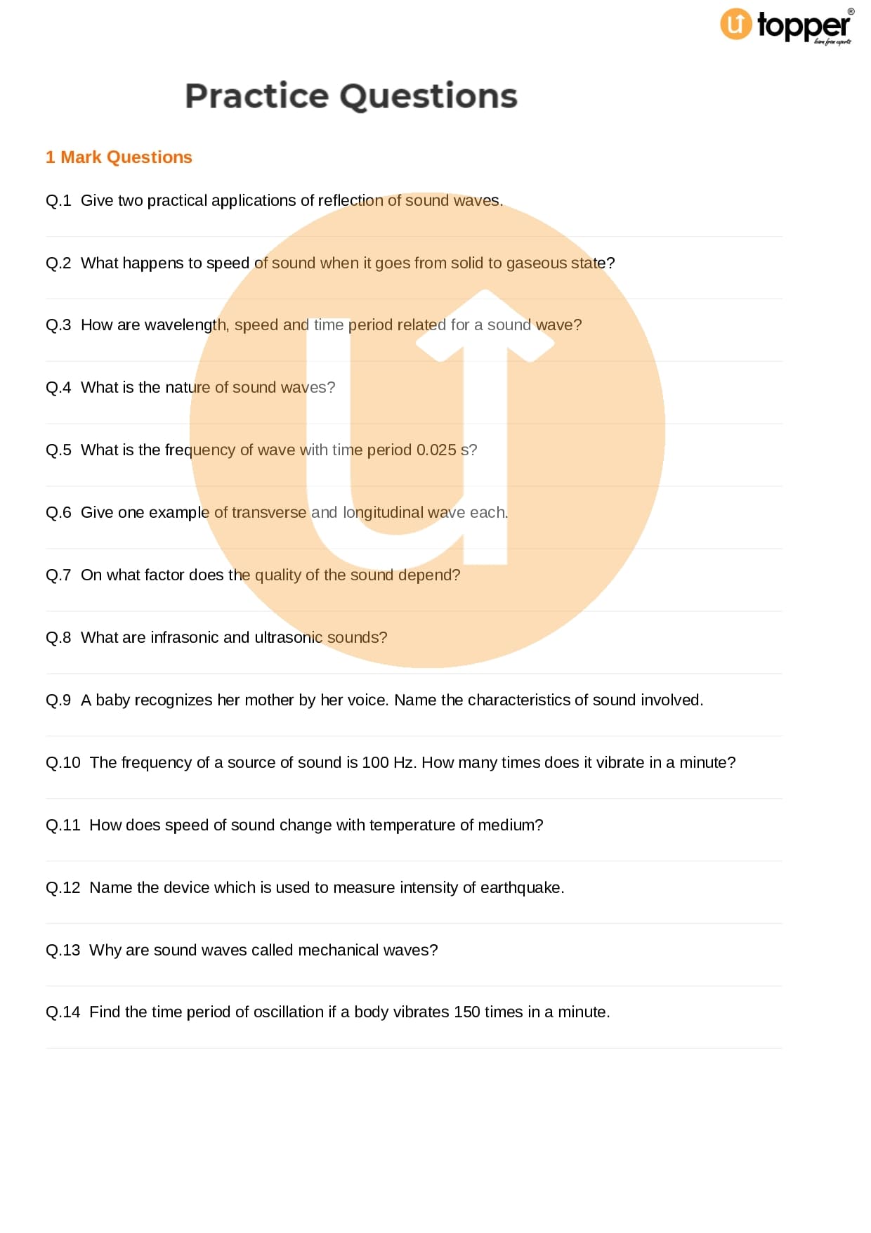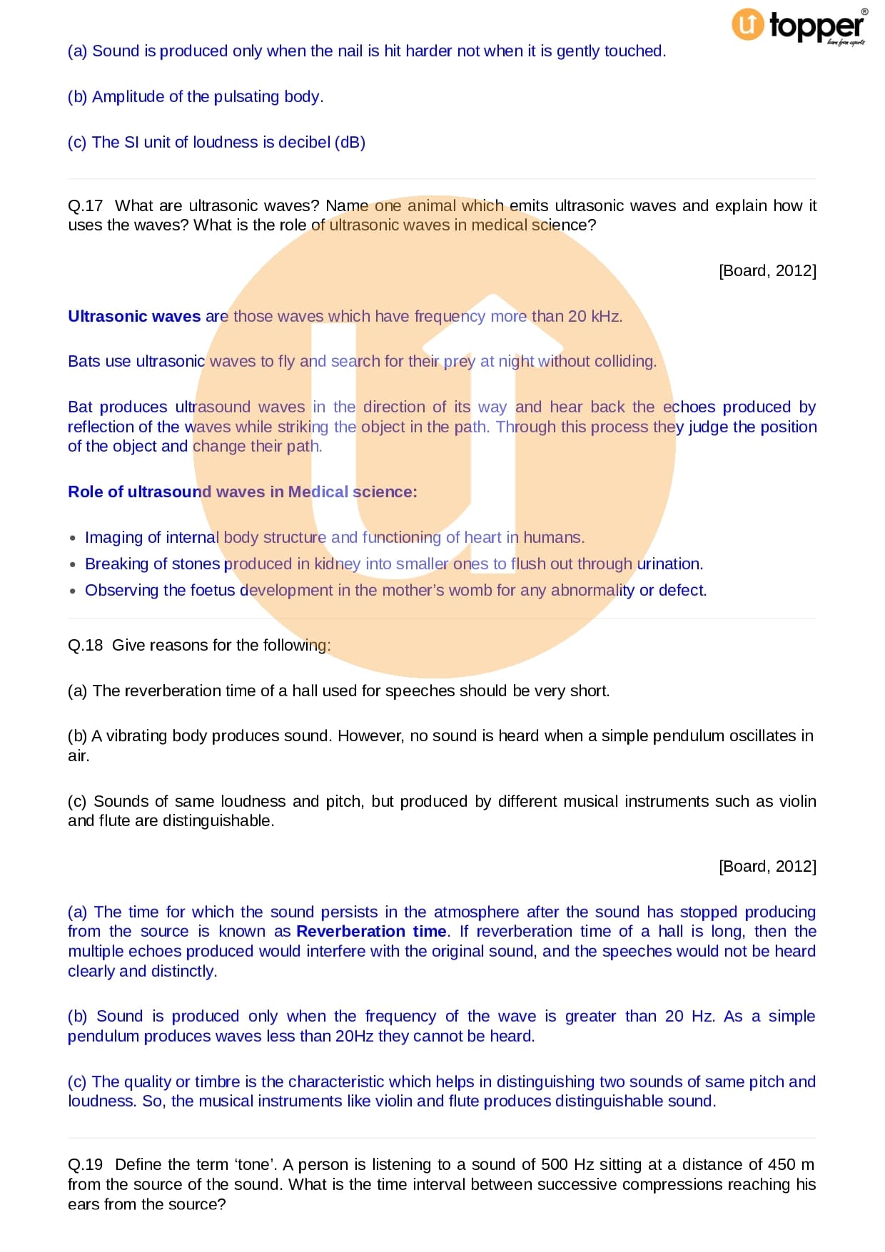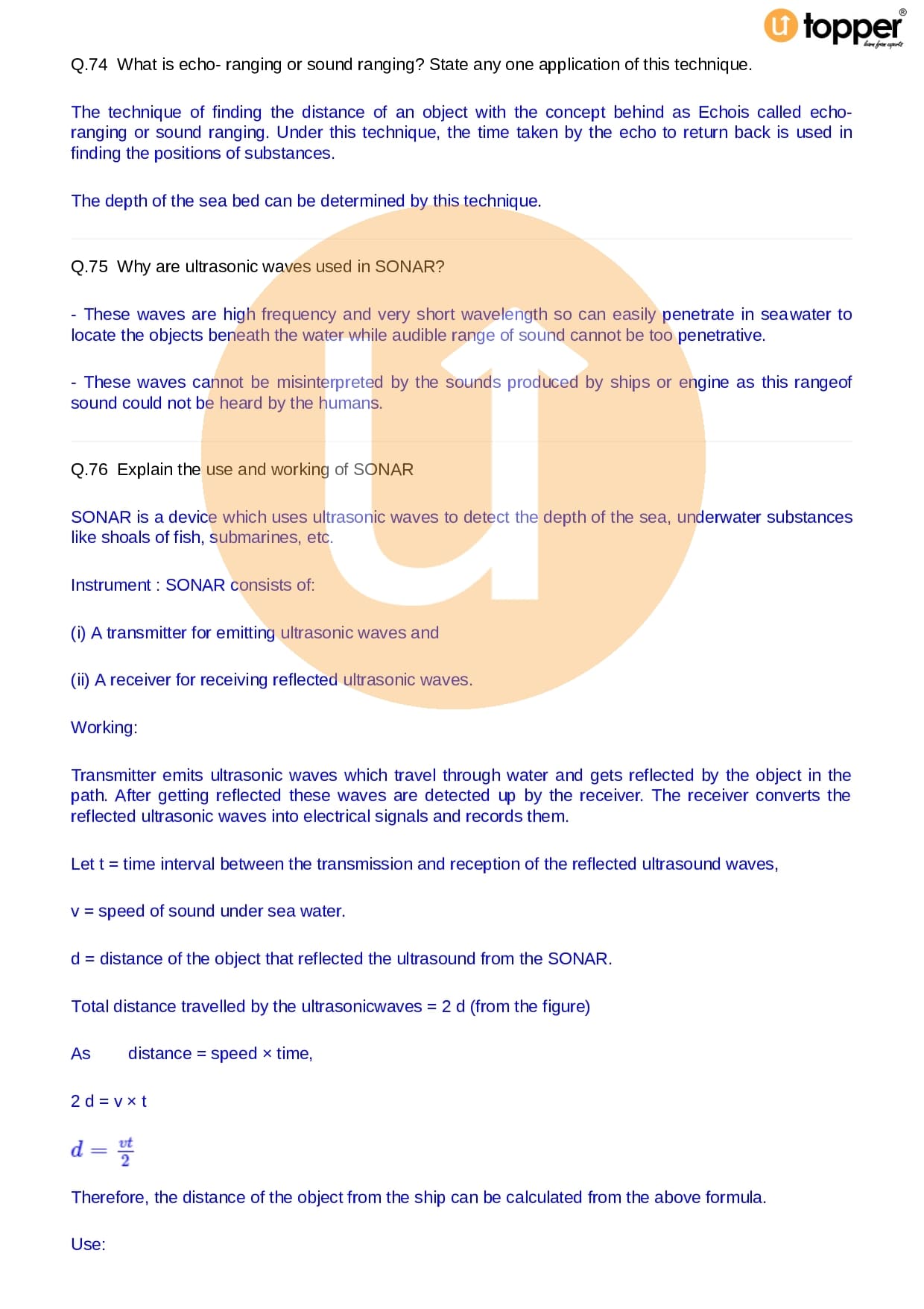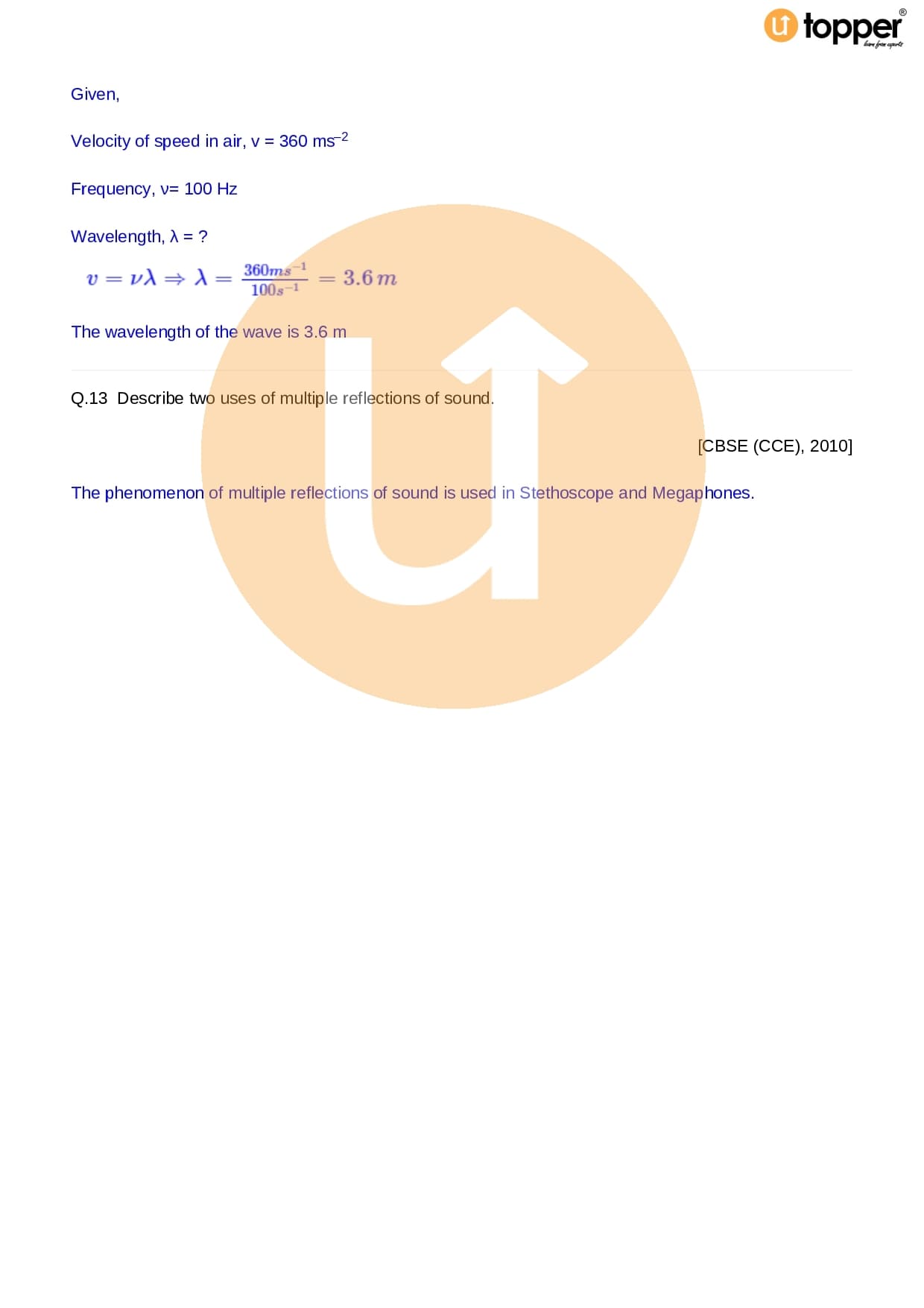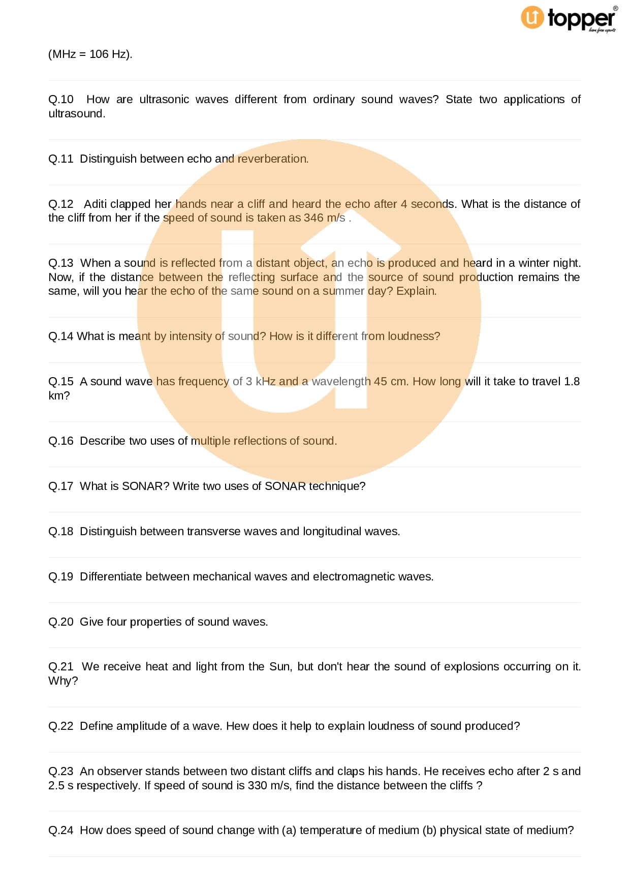 Class 9 Science Important Question CBSE Chapter 12 – Sound