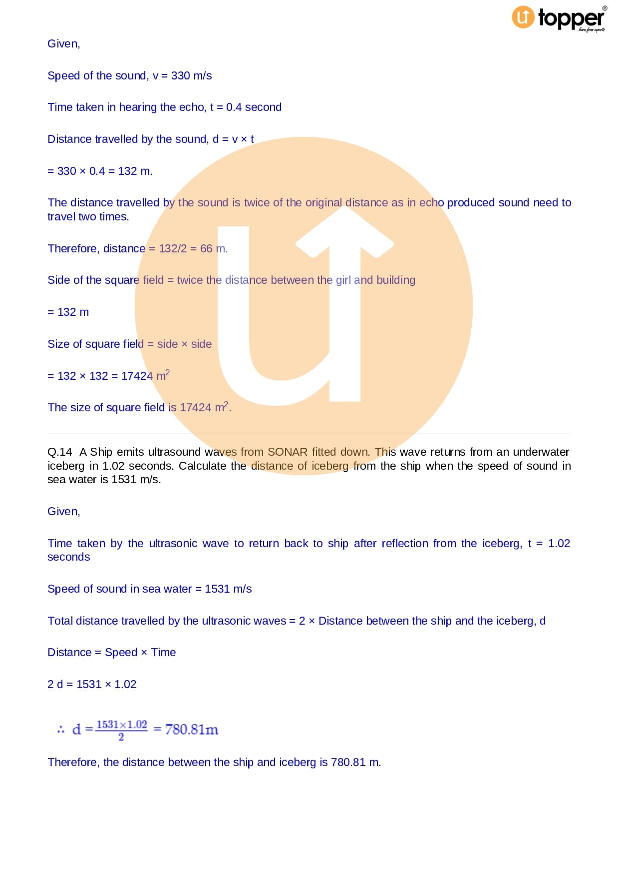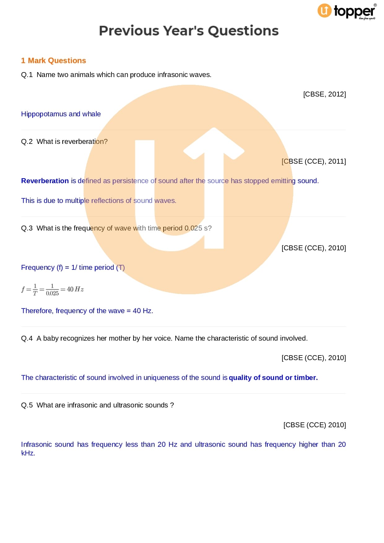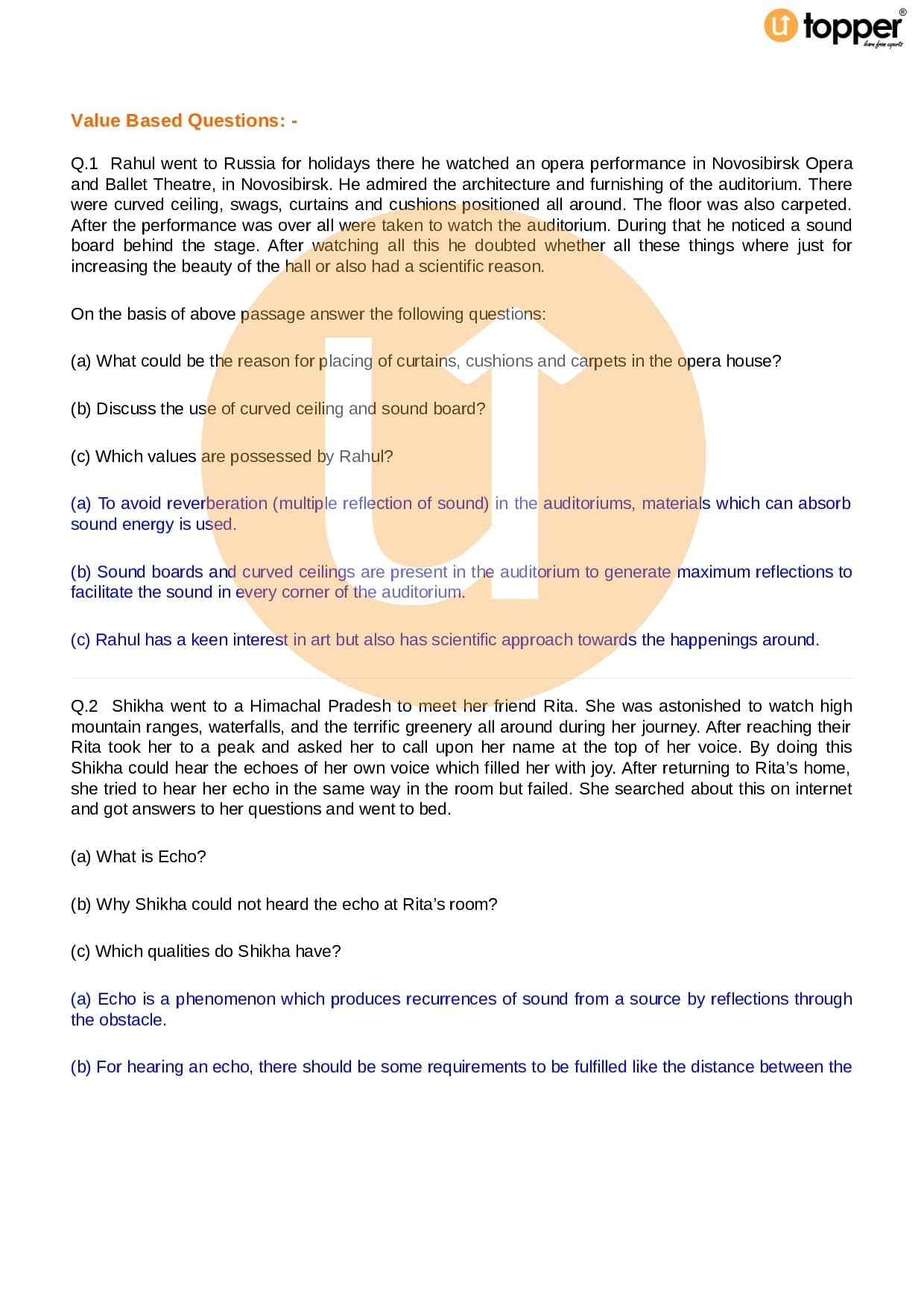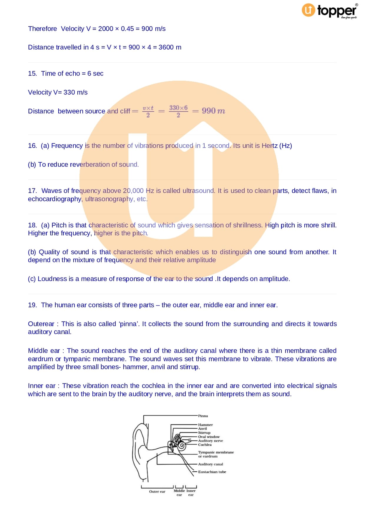 Class 9 Science Important Question CBSE Chapter 12 – Sound
