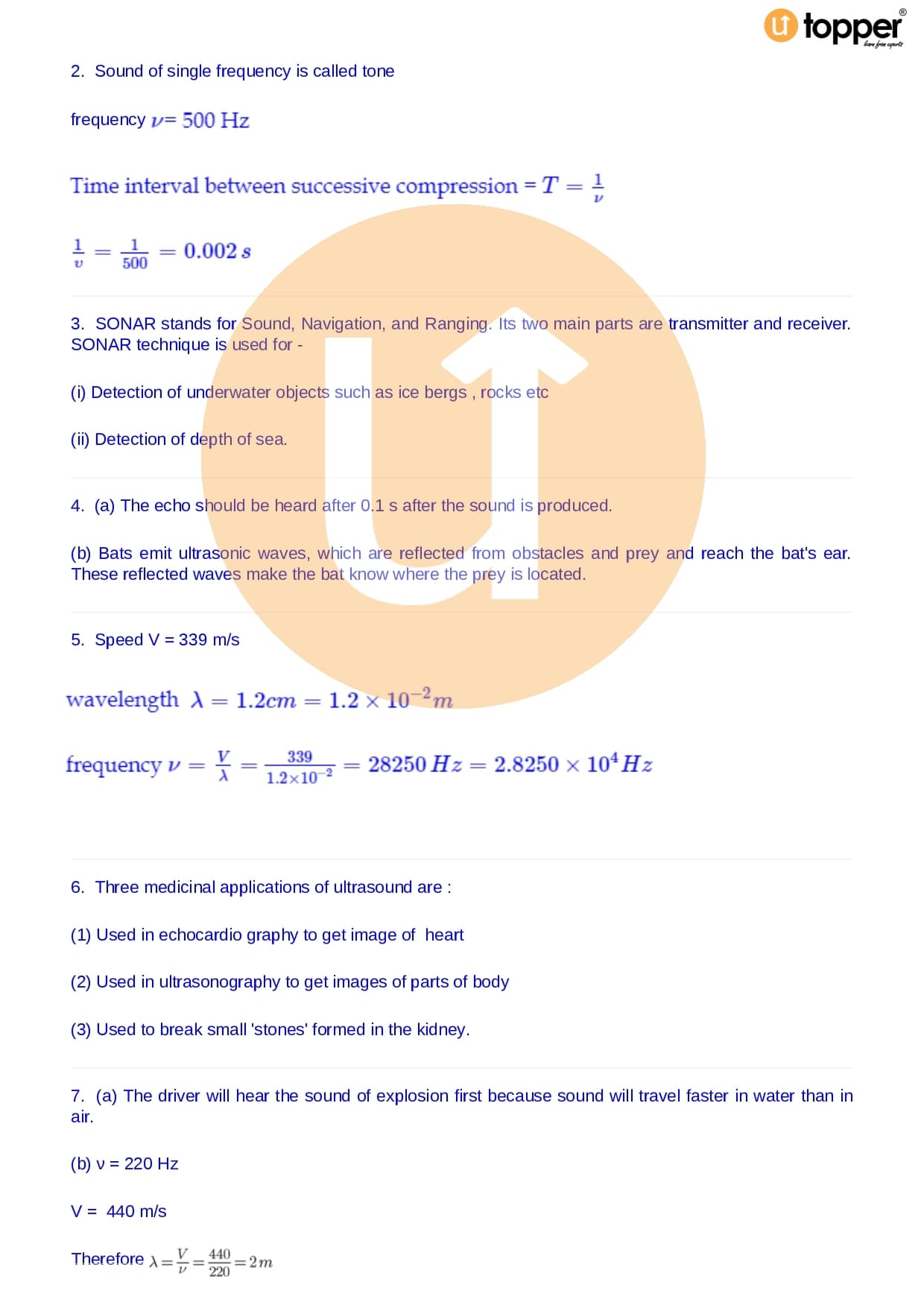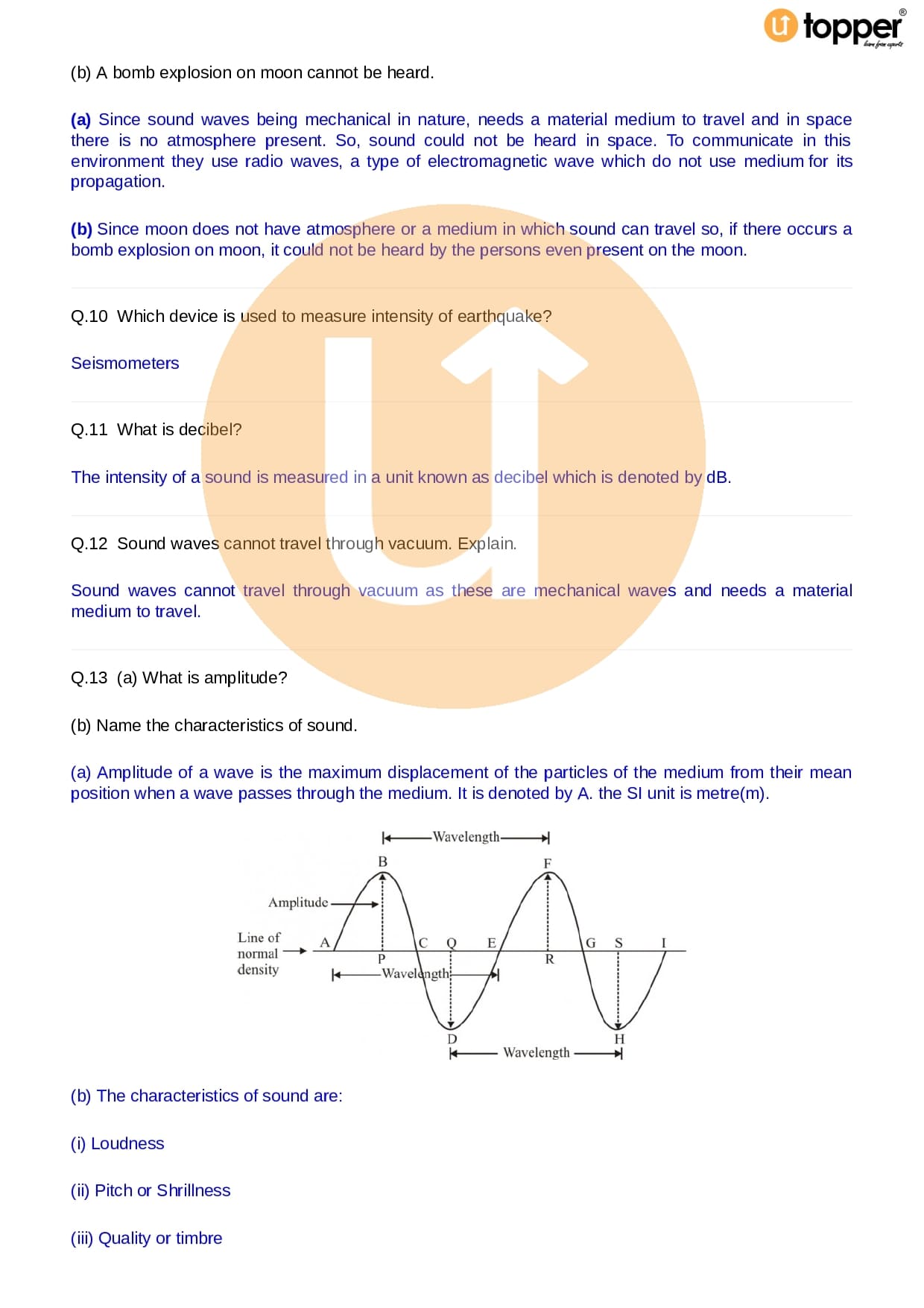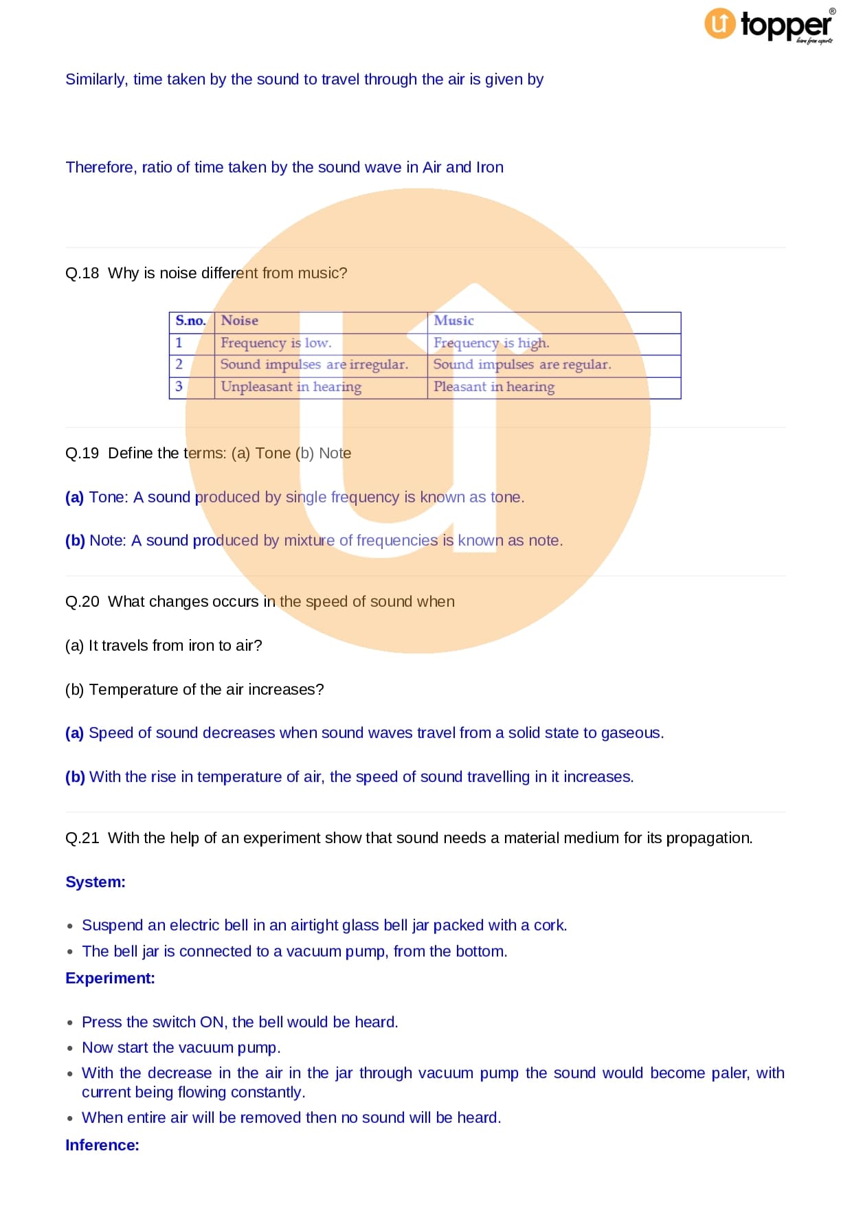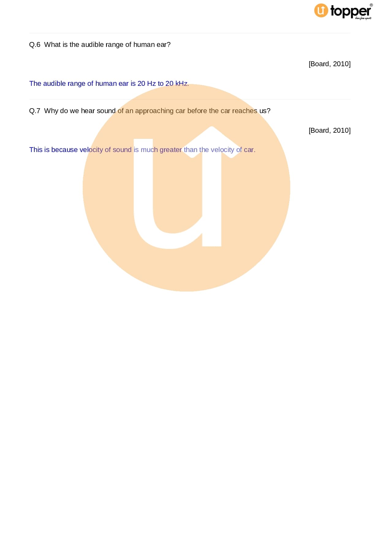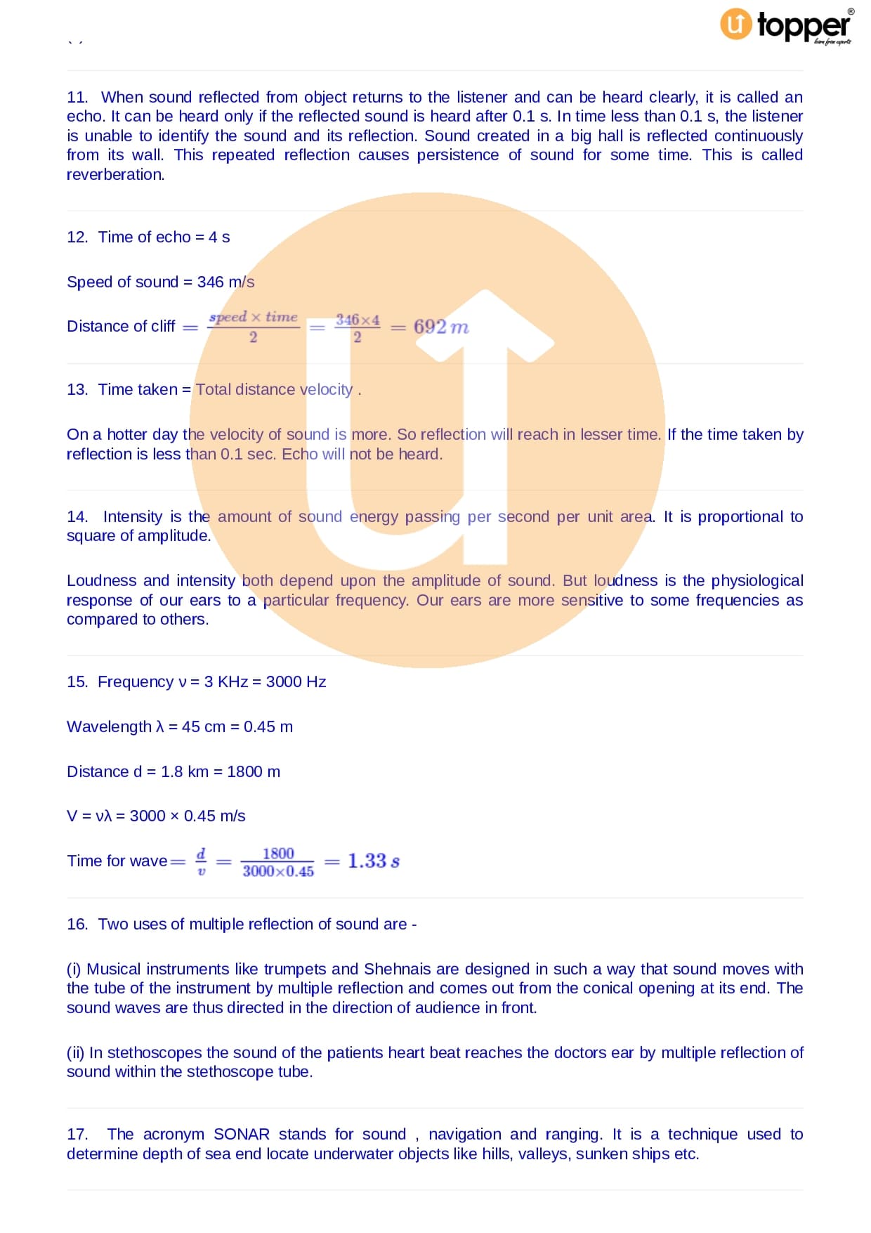 Class 9 Science Important Question CBSE Chapter 12 – Sound