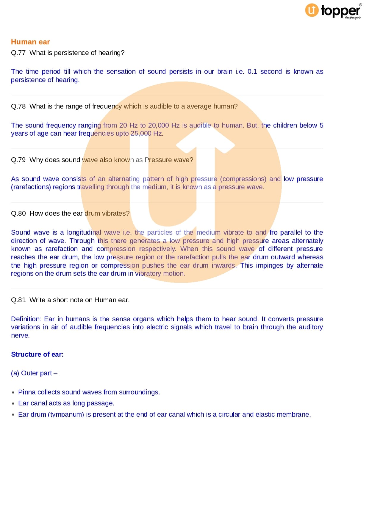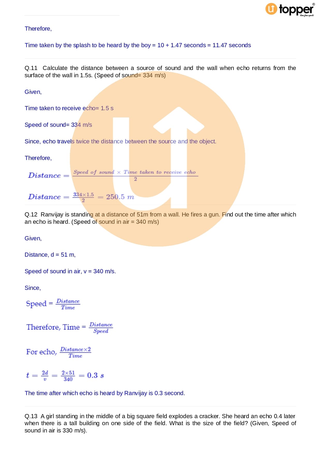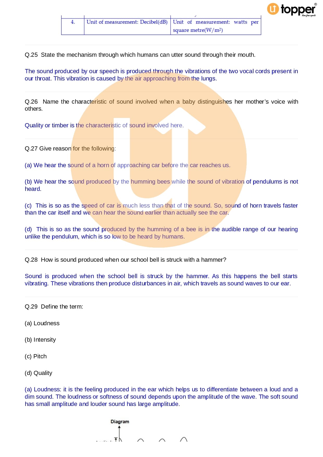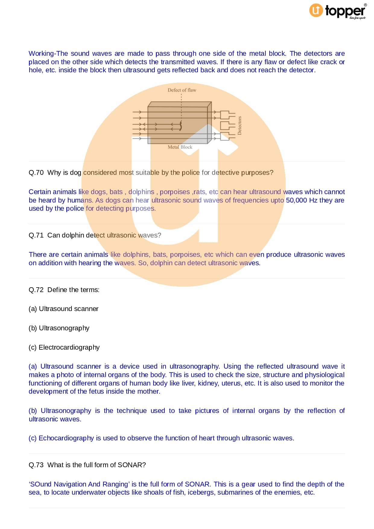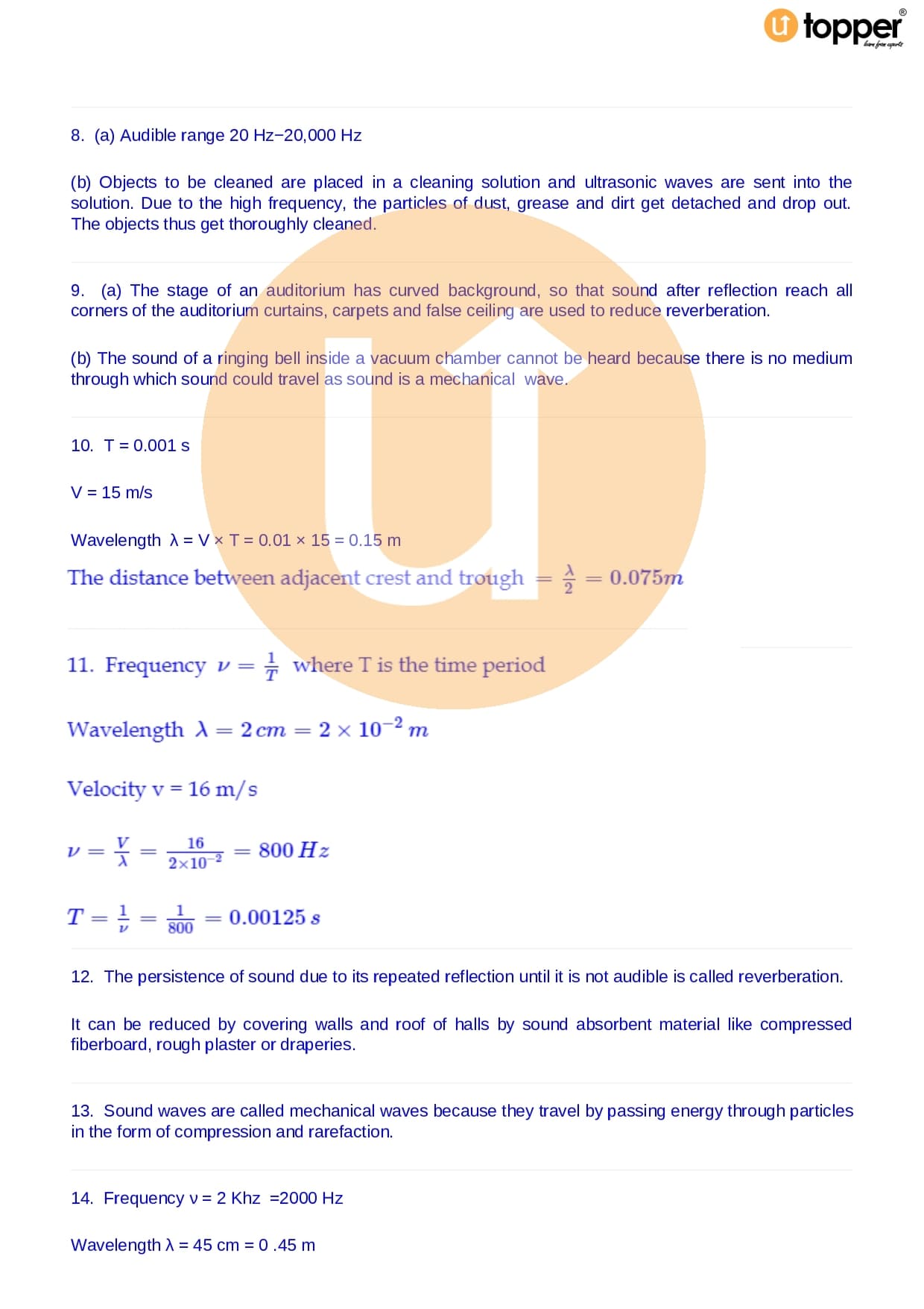 Class 9 Science Important Question CBSE Chapter 12 – Sound