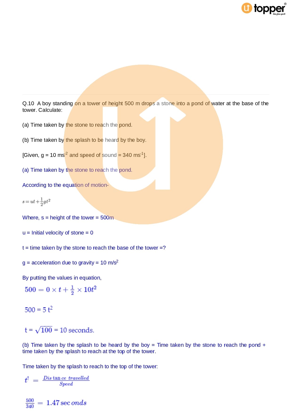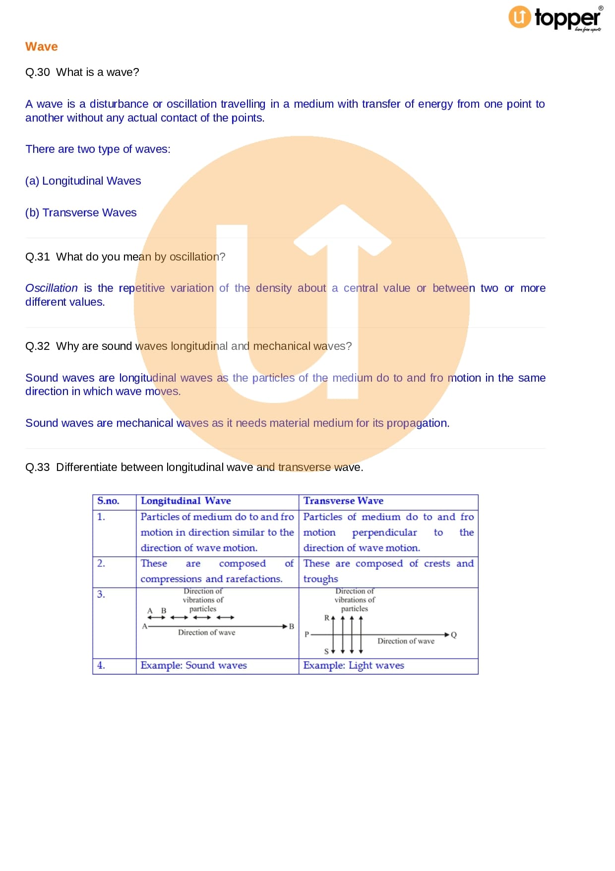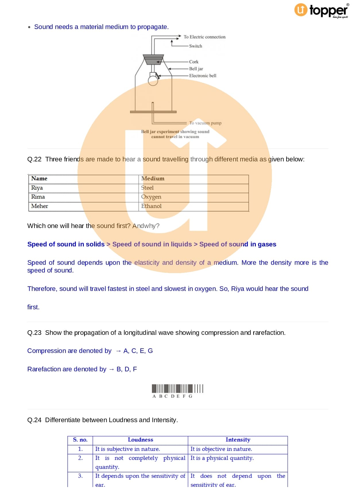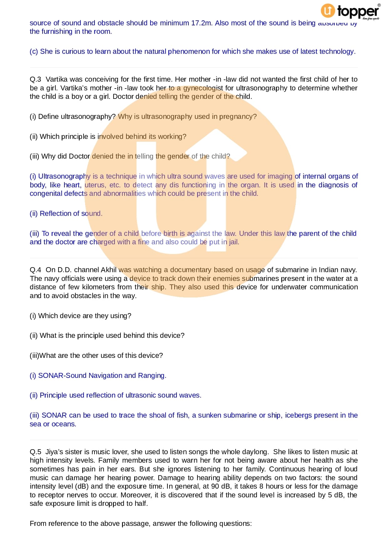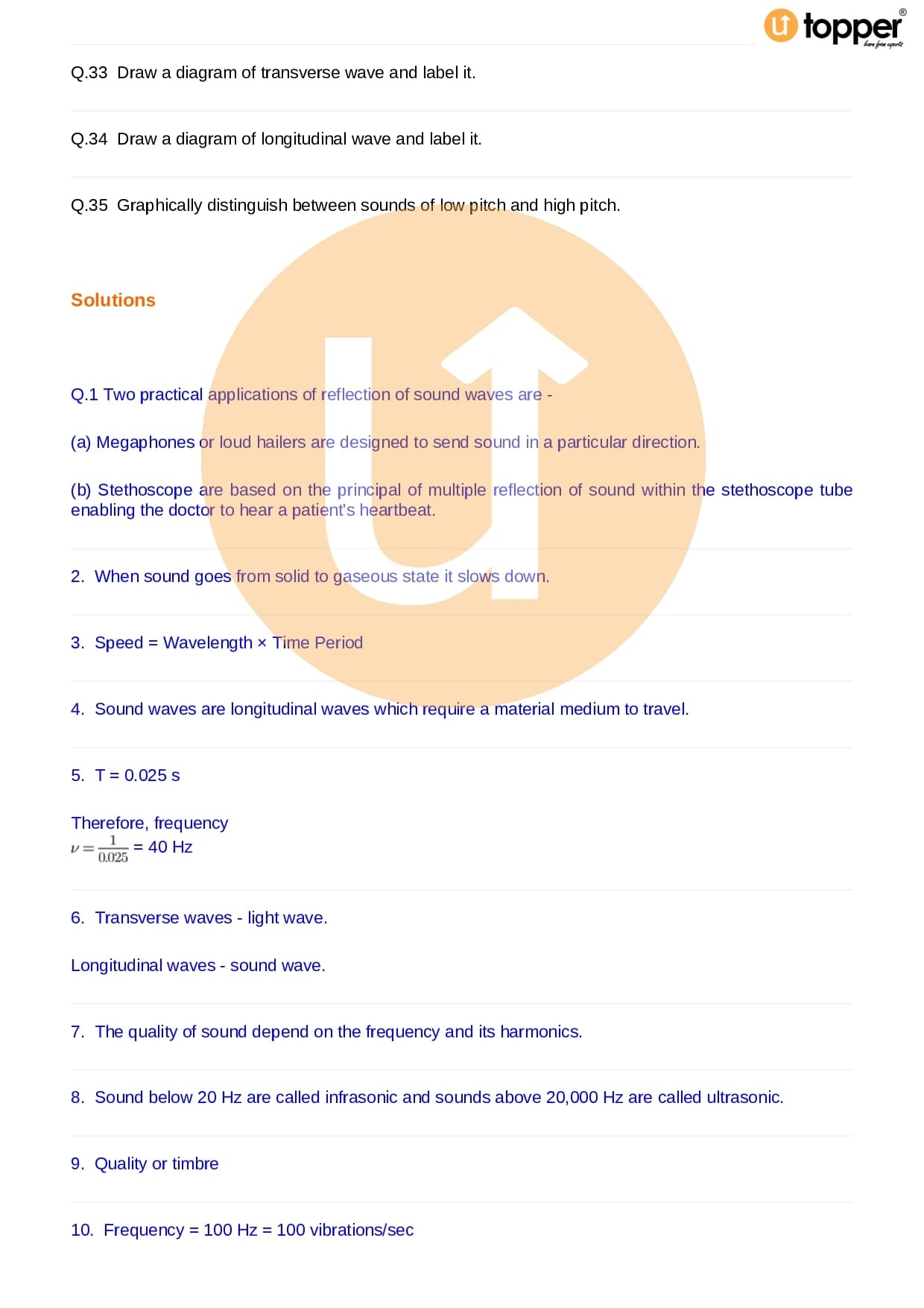 Class 9 Science Important Question CBSE Chapter 12 – Sound