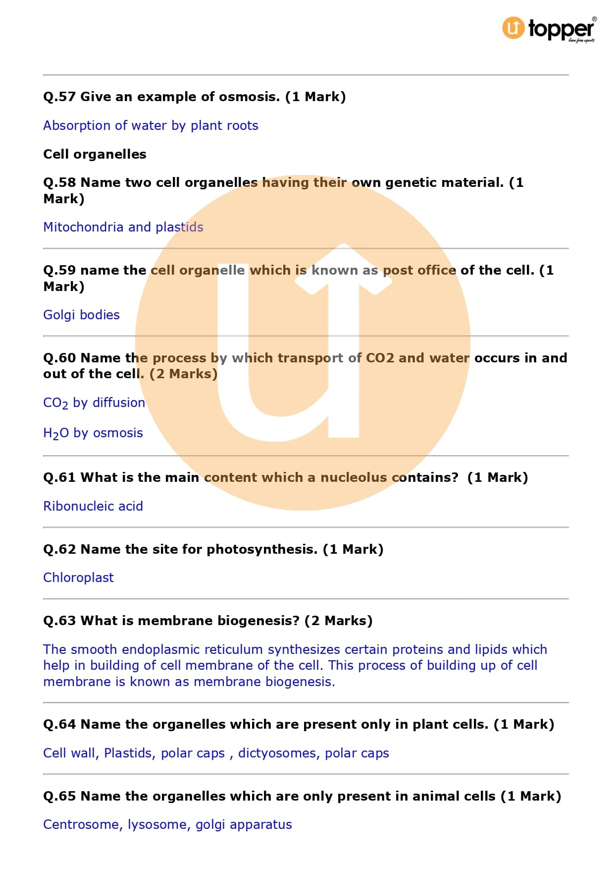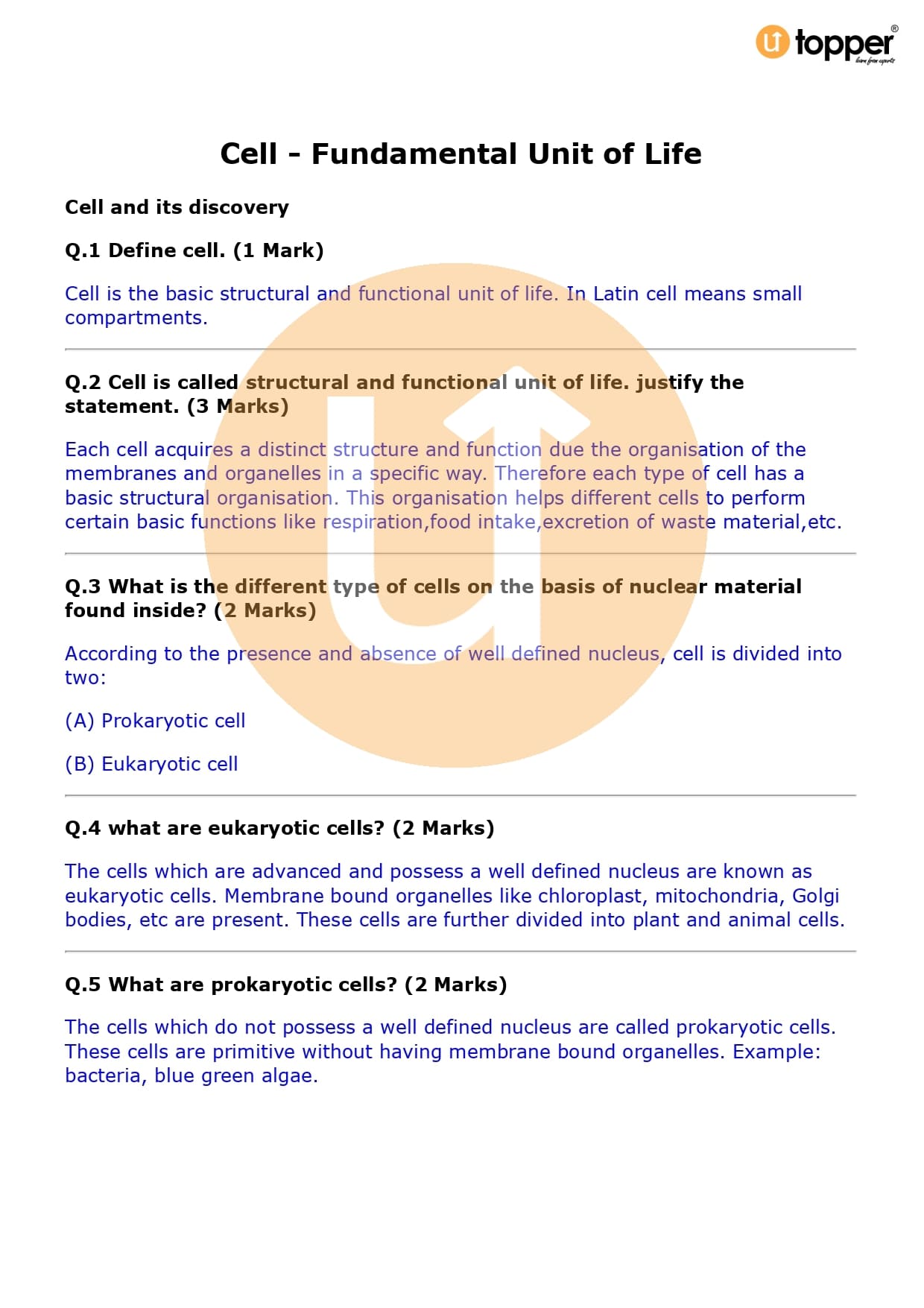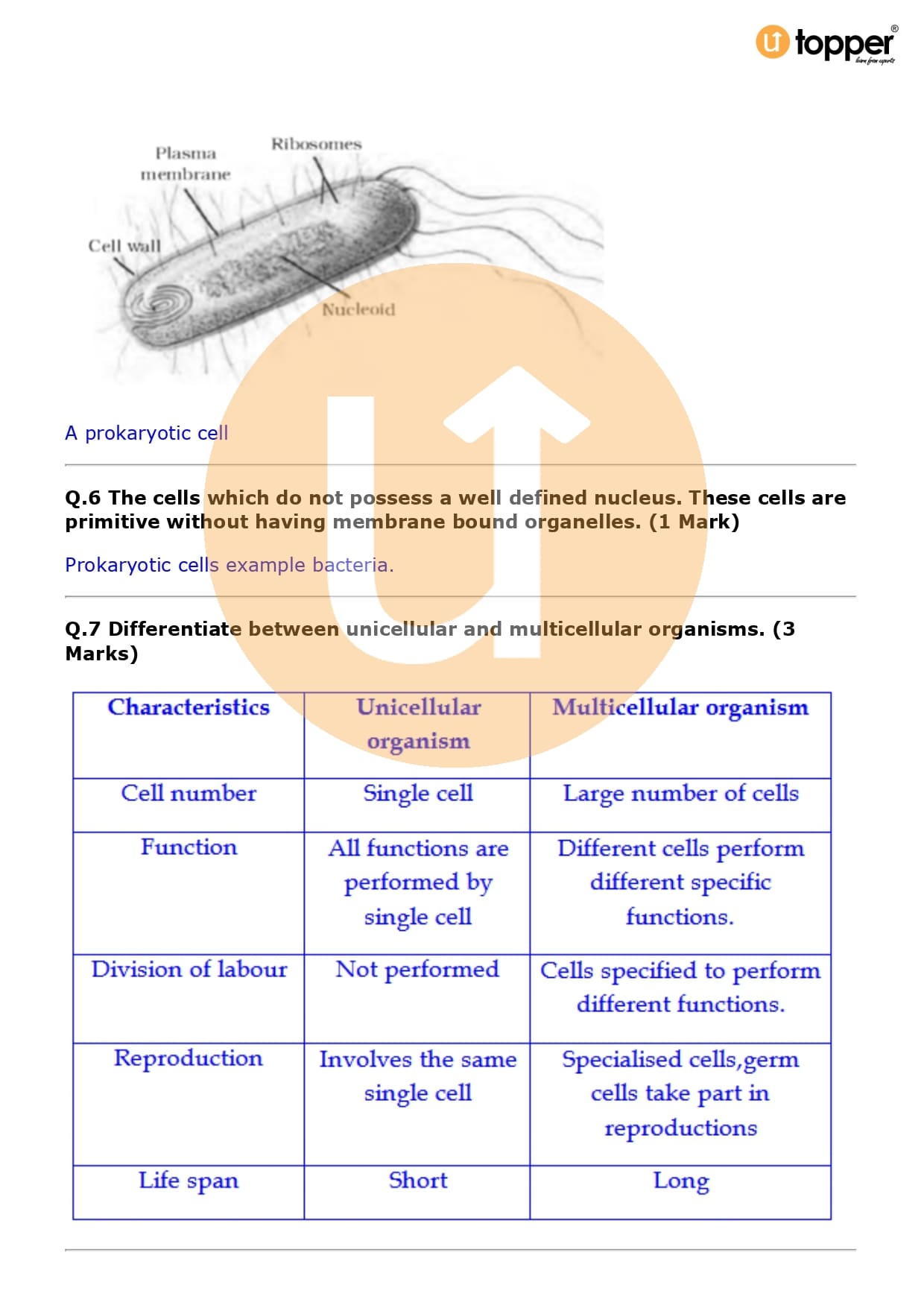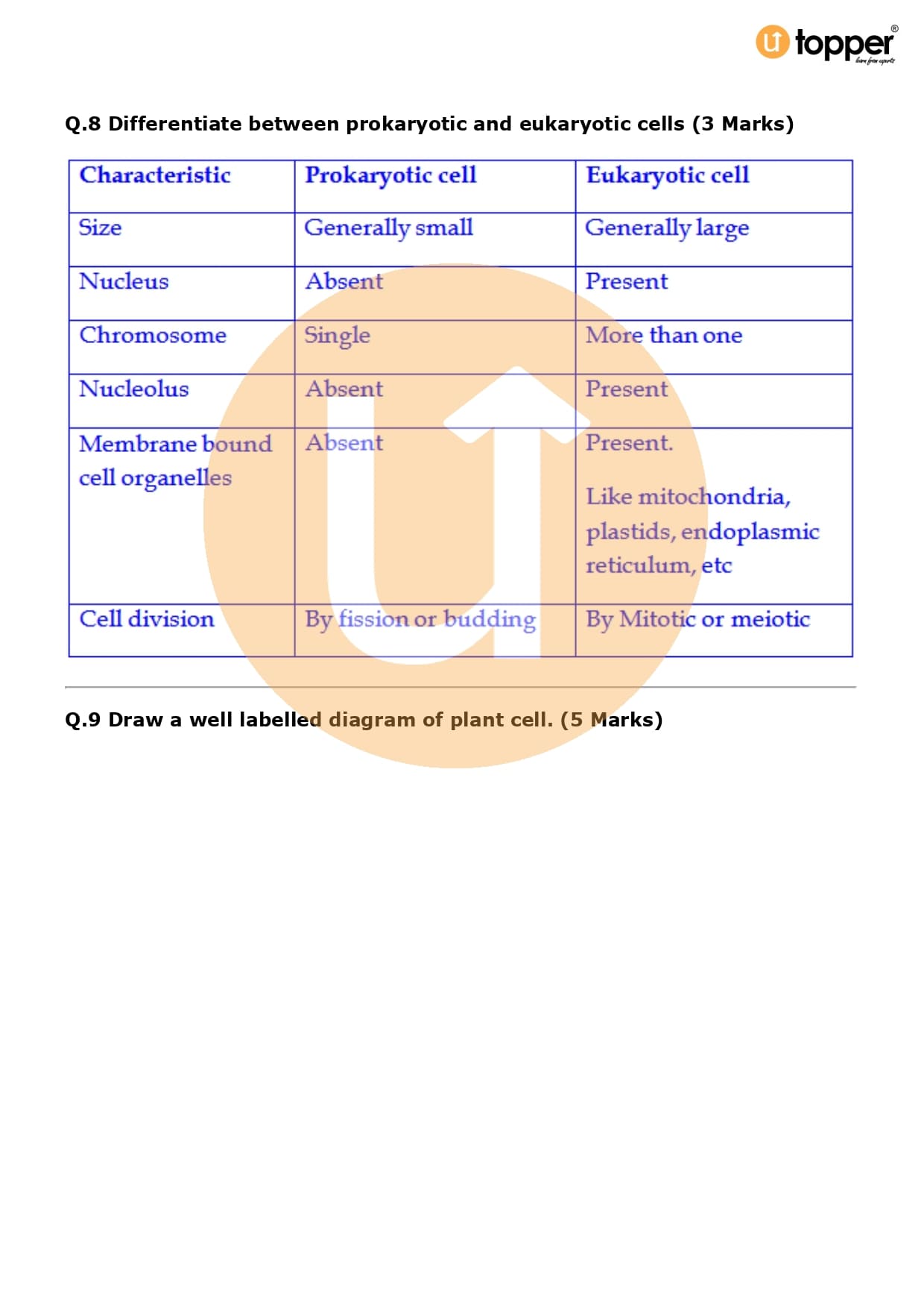 Class 9 Science Important Question CBSE Chapter 5 – The Fundamental Unit of Life