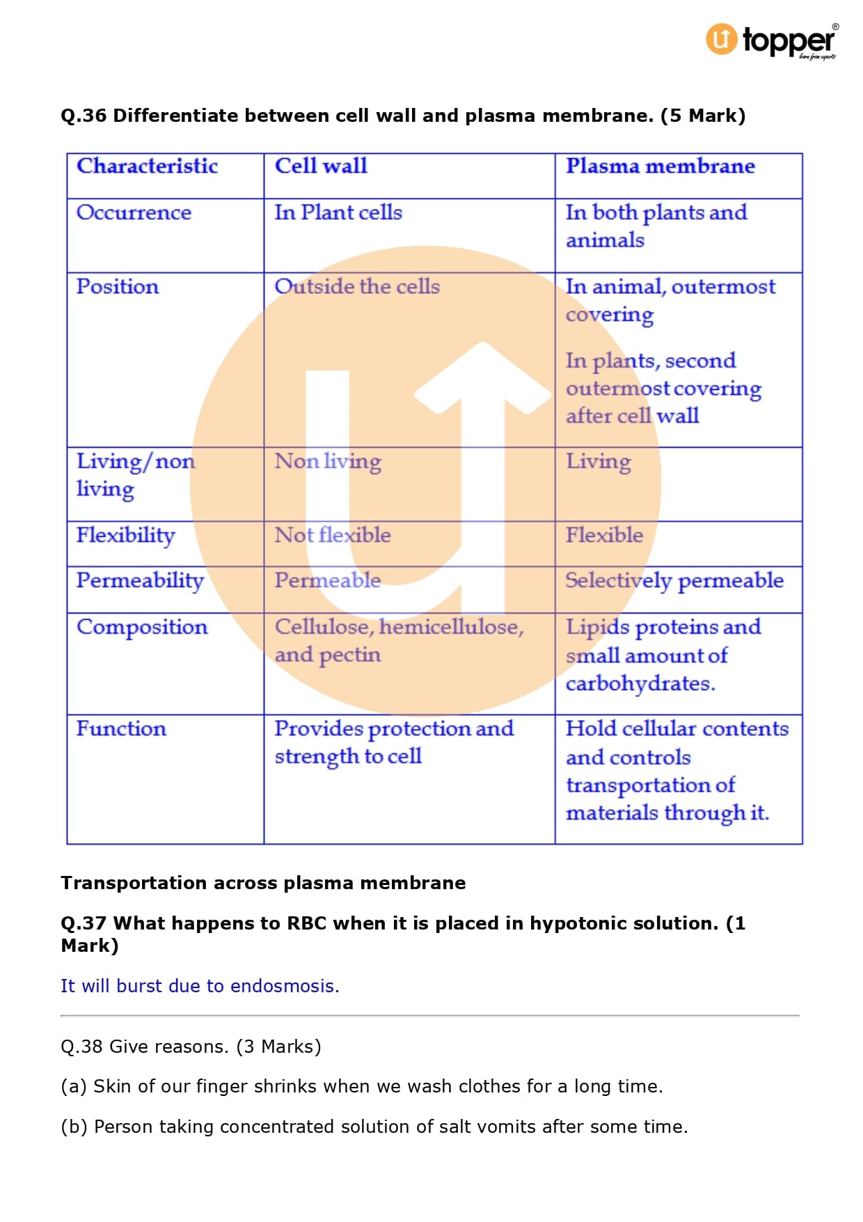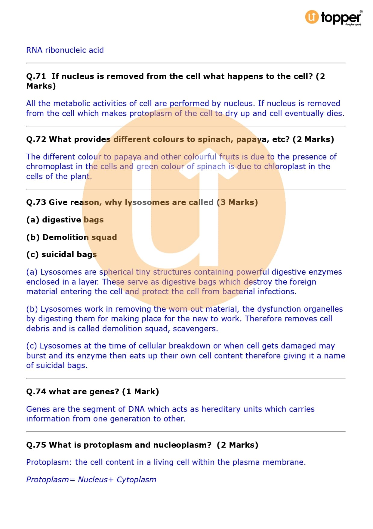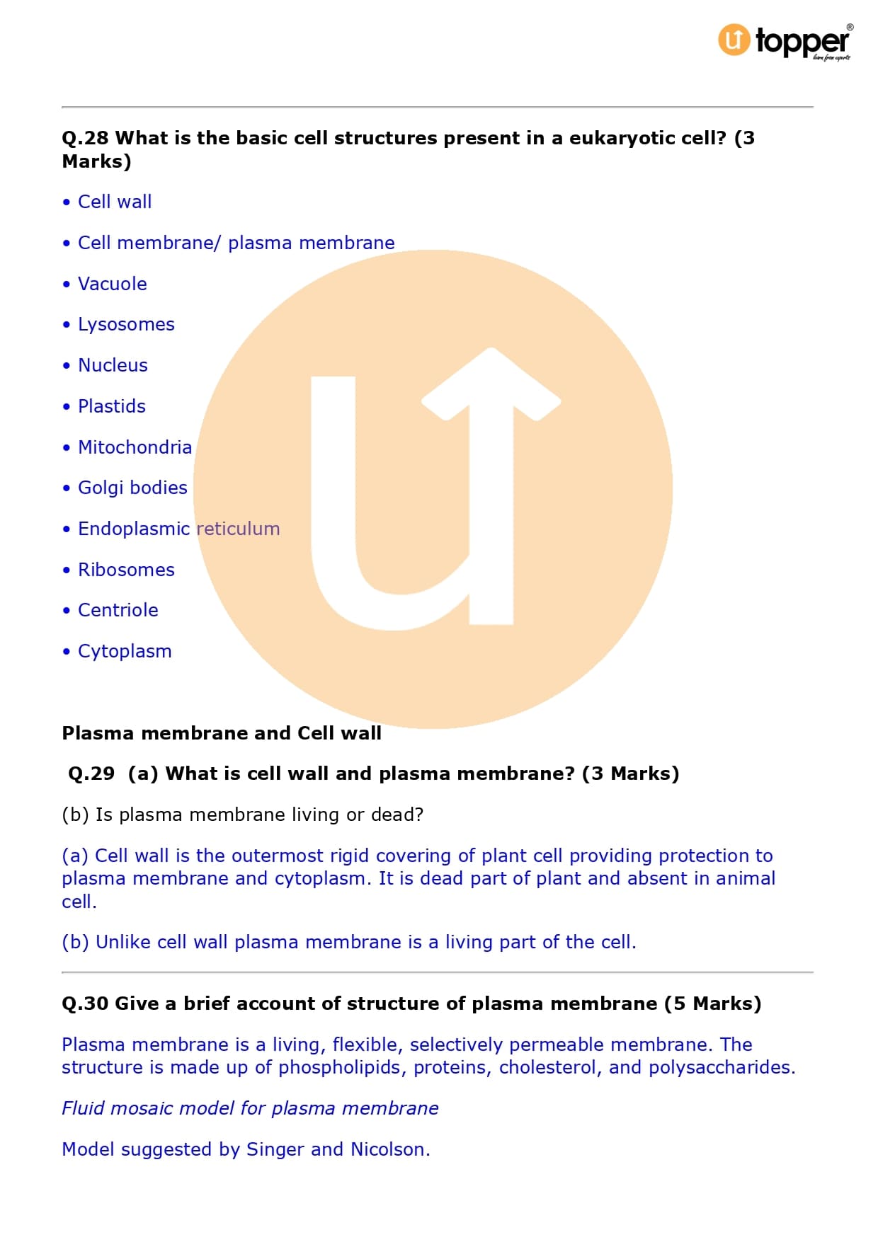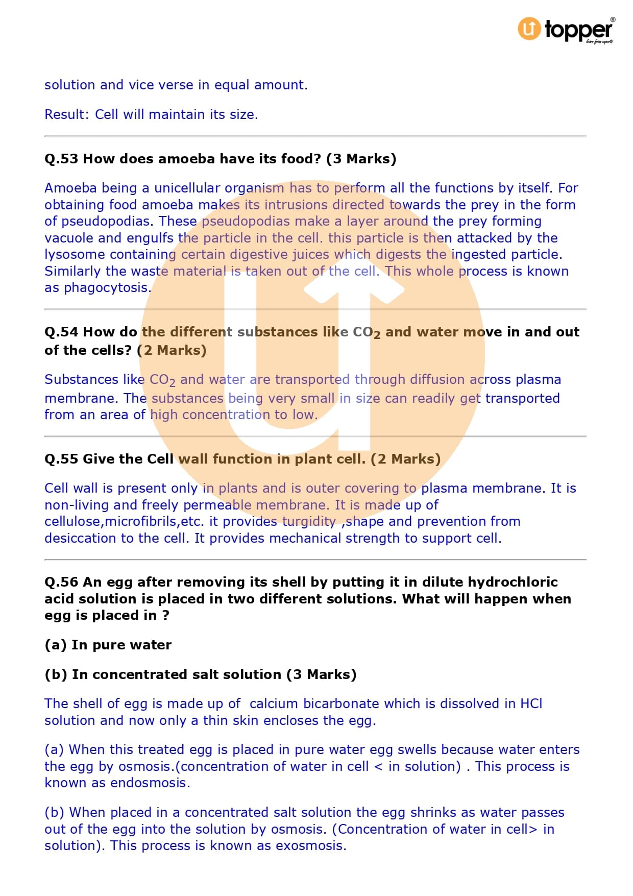 Class 9 Science Important Question CBSE Chapter 5 – The Fundamental Unit of Life