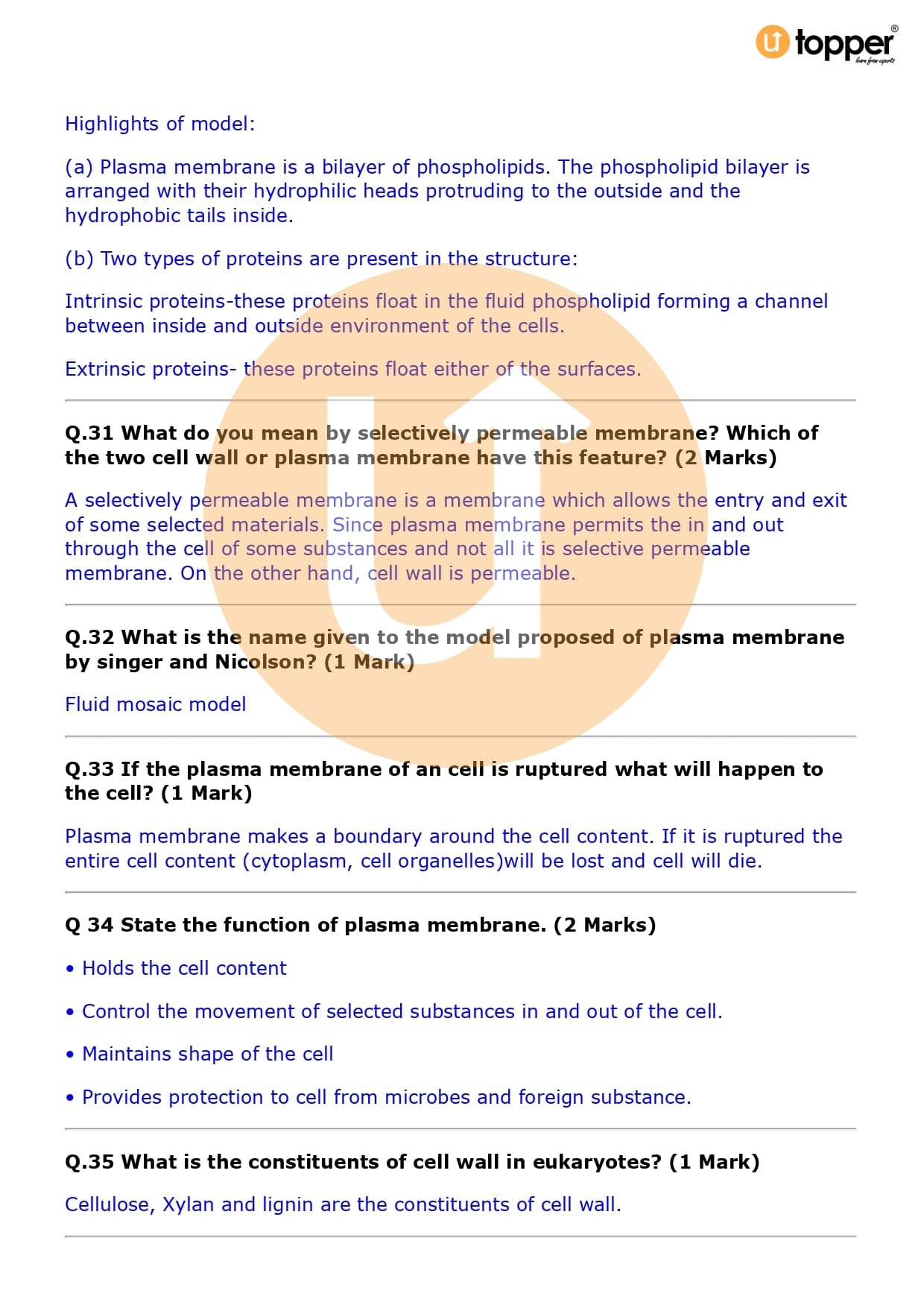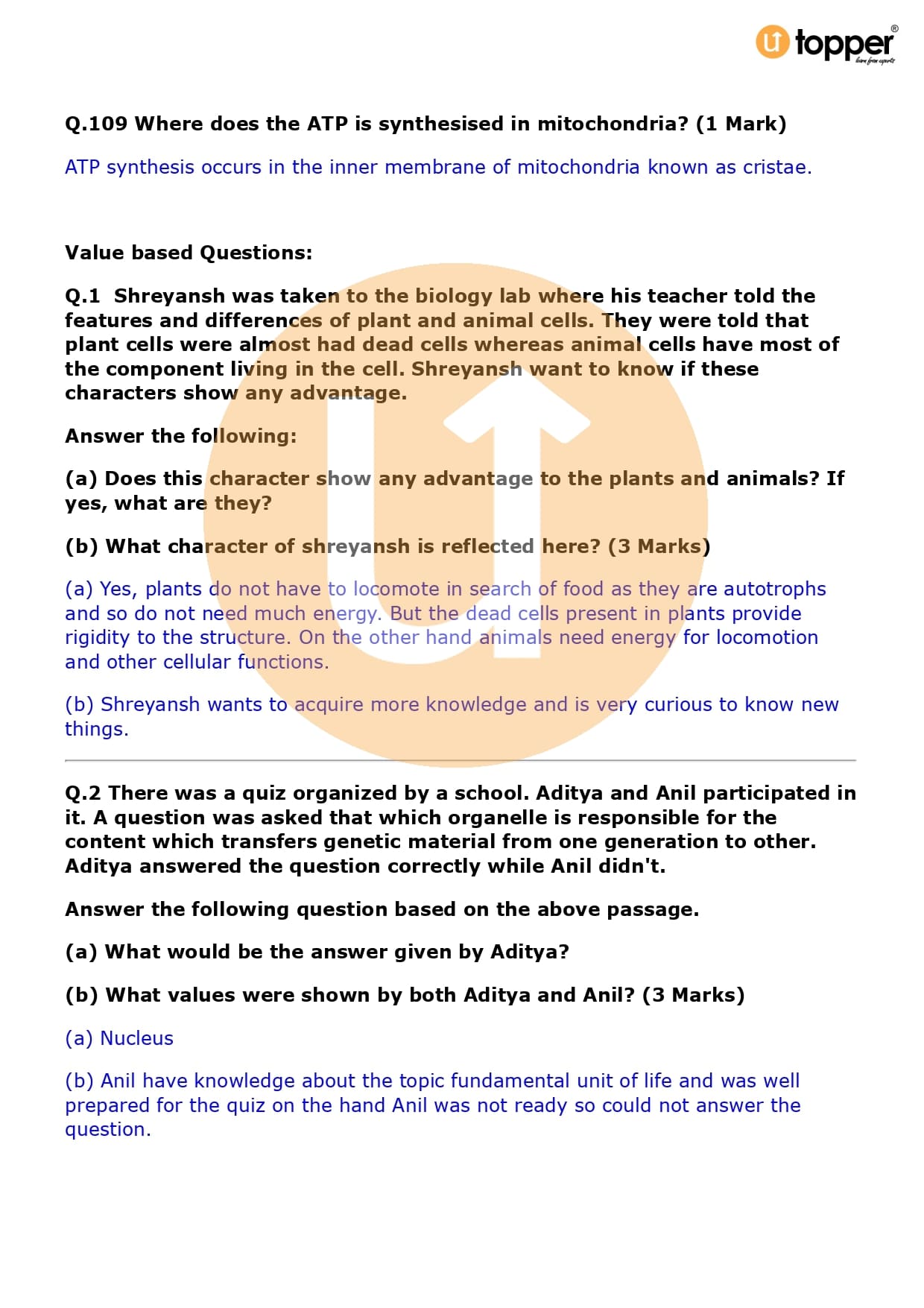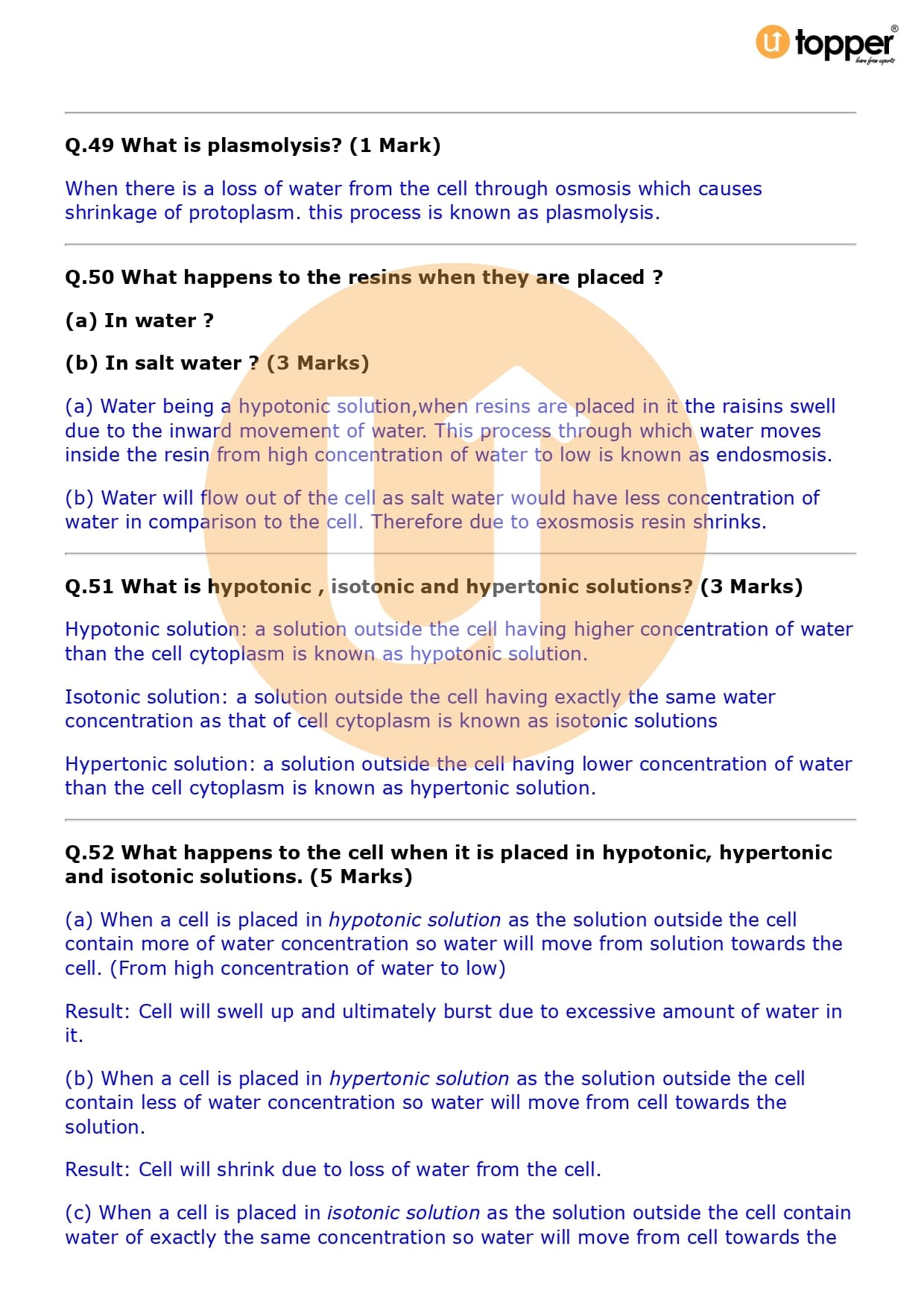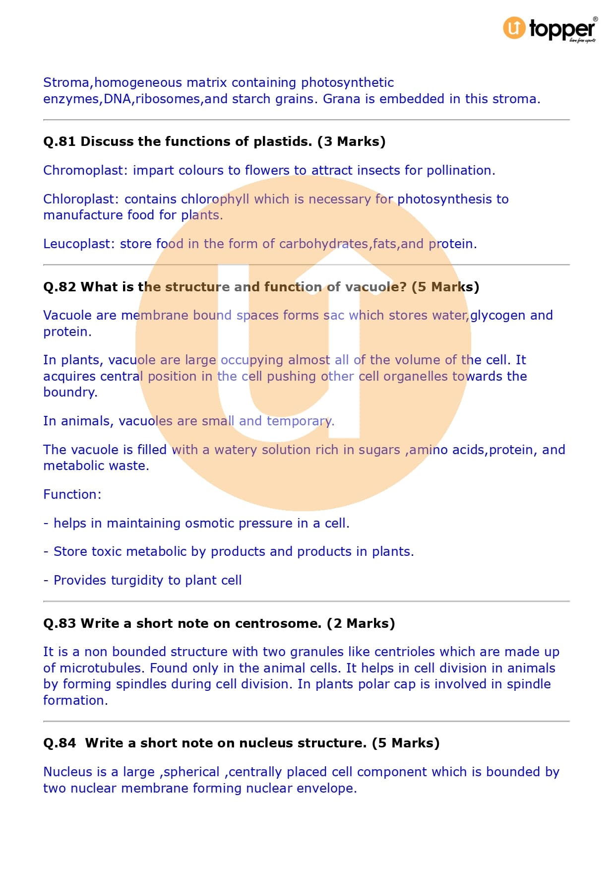 Class 9 Science Important Question CBSE Chapter 5 – The Fundamental Unit of Life