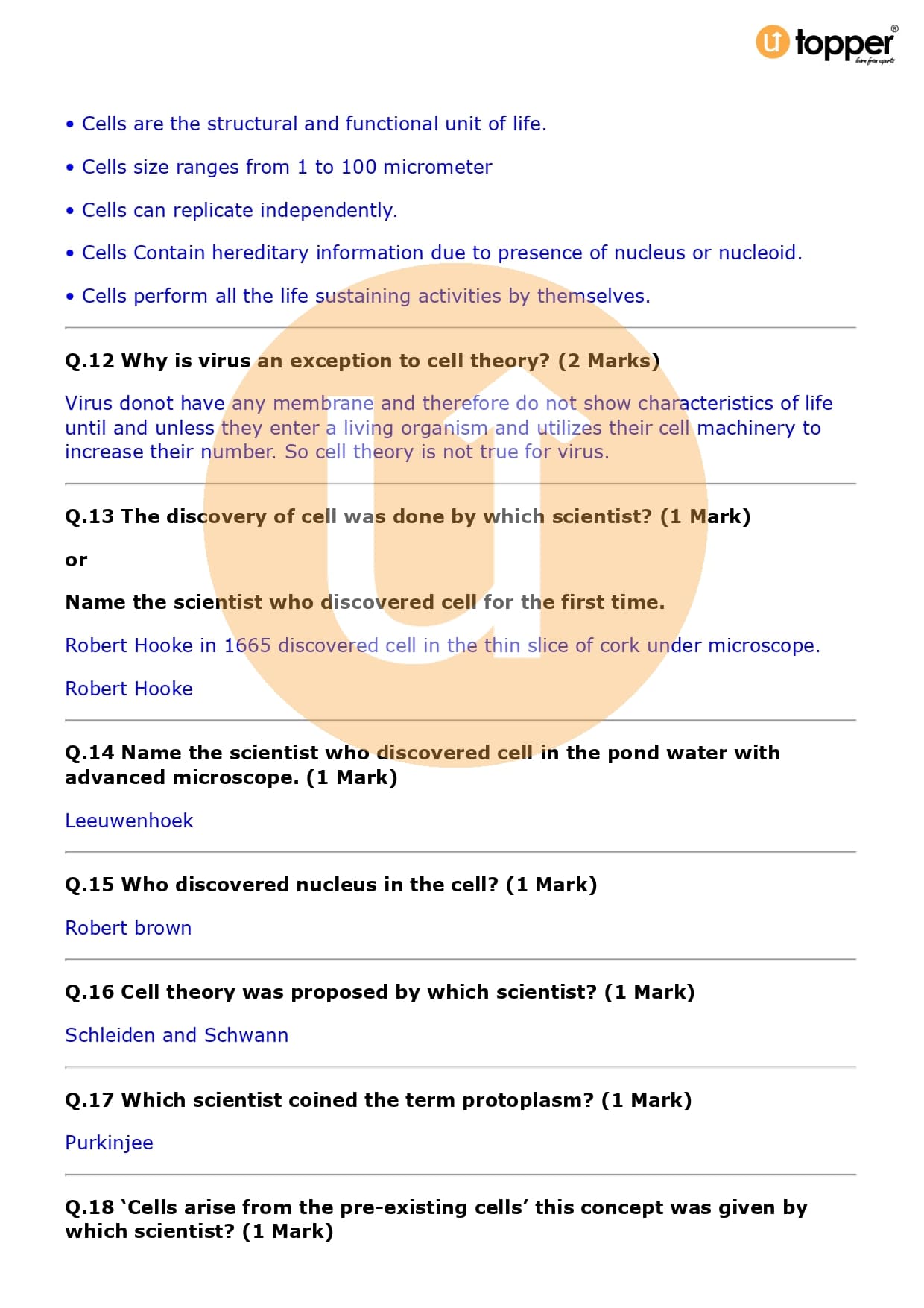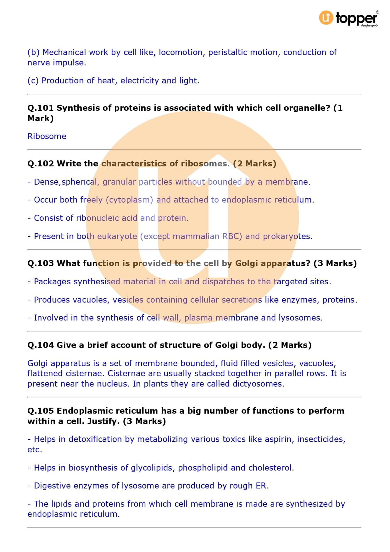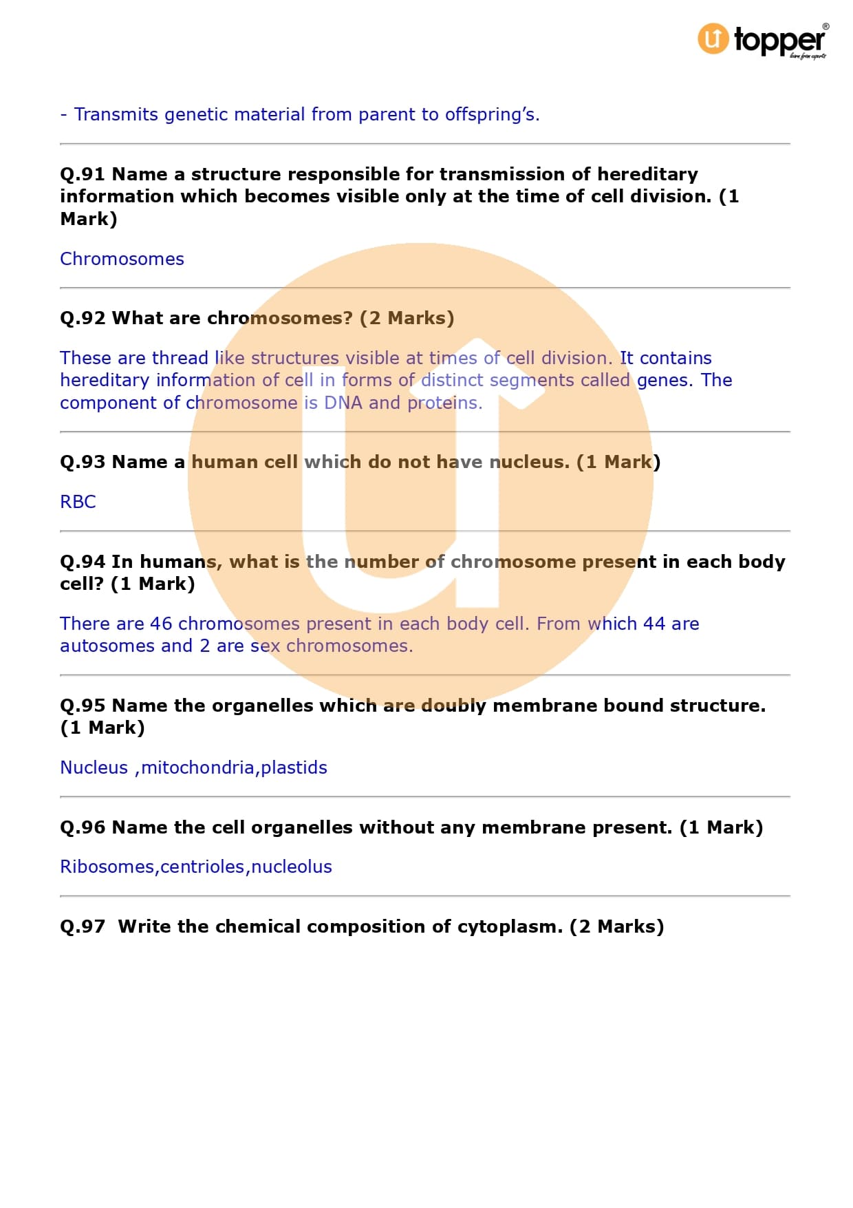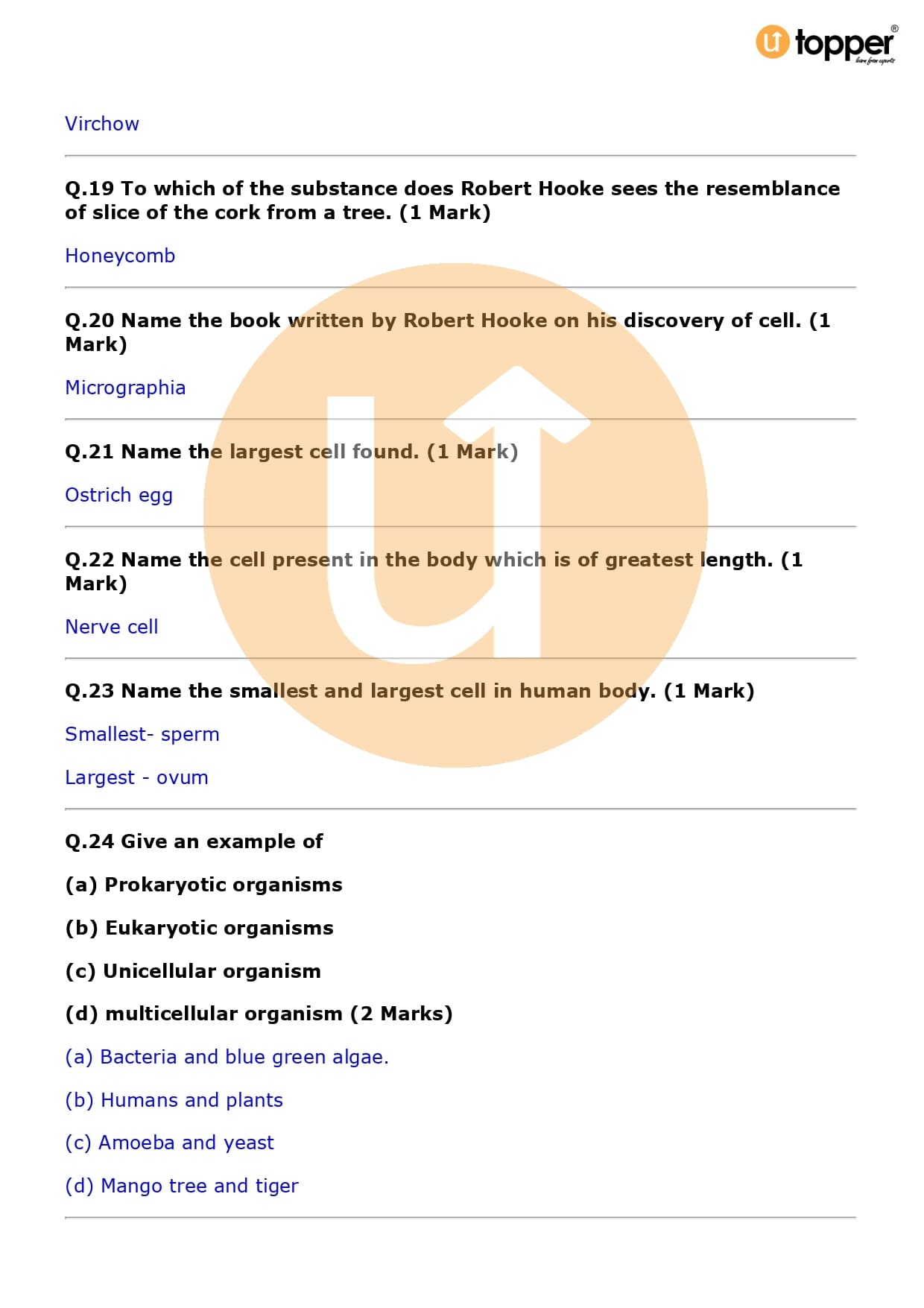Class 9 Science Important Question CBSE Chapter 5 – The Fundamental Unit of Life