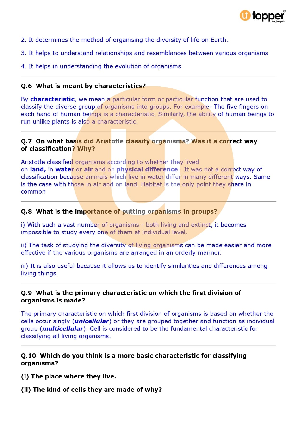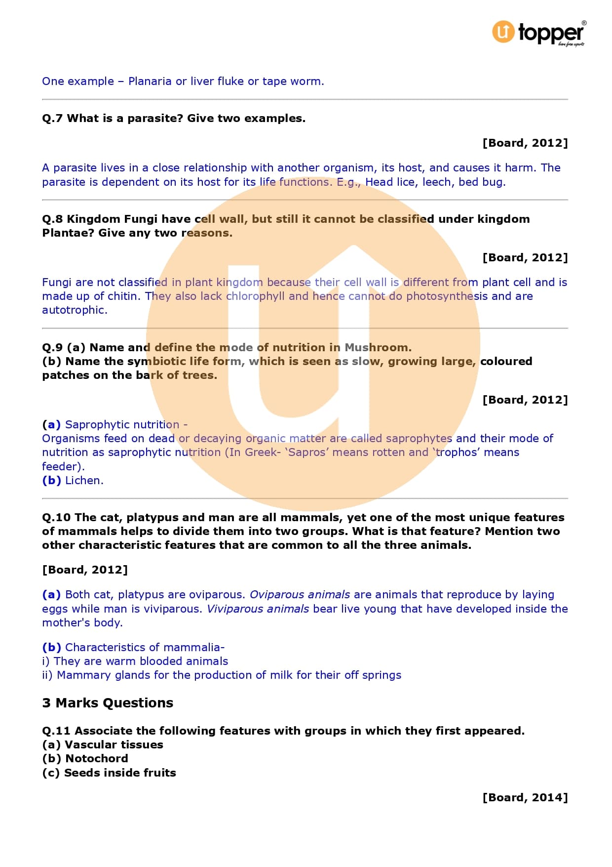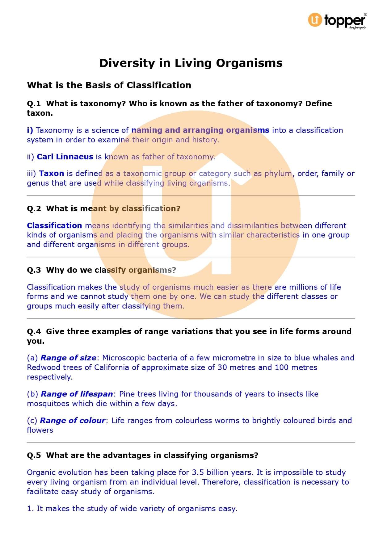 Class 9 Science Important Questions Chapter 7 Pdf – Diversity in Living Organisms