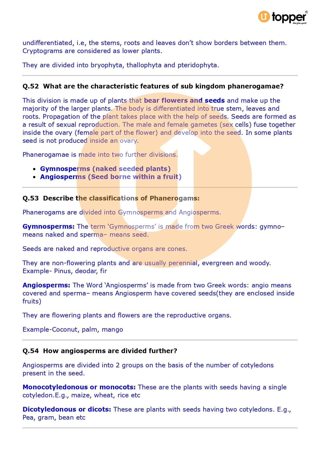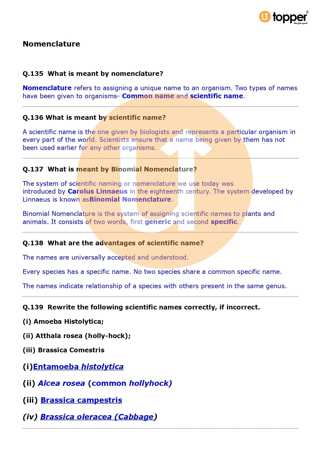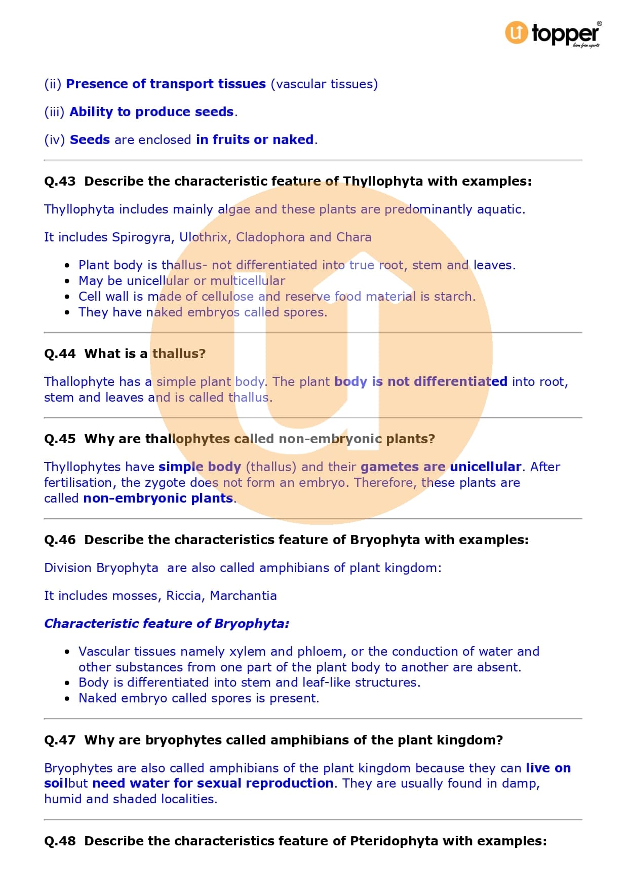 Class 9 Science Important Questions Chapter 7 Pdf – Diversity in Living Organisms