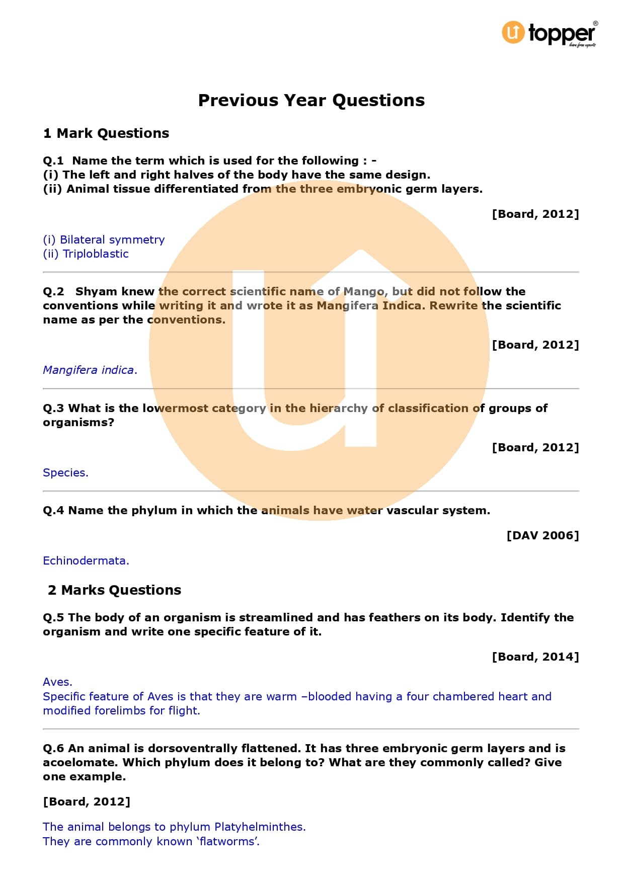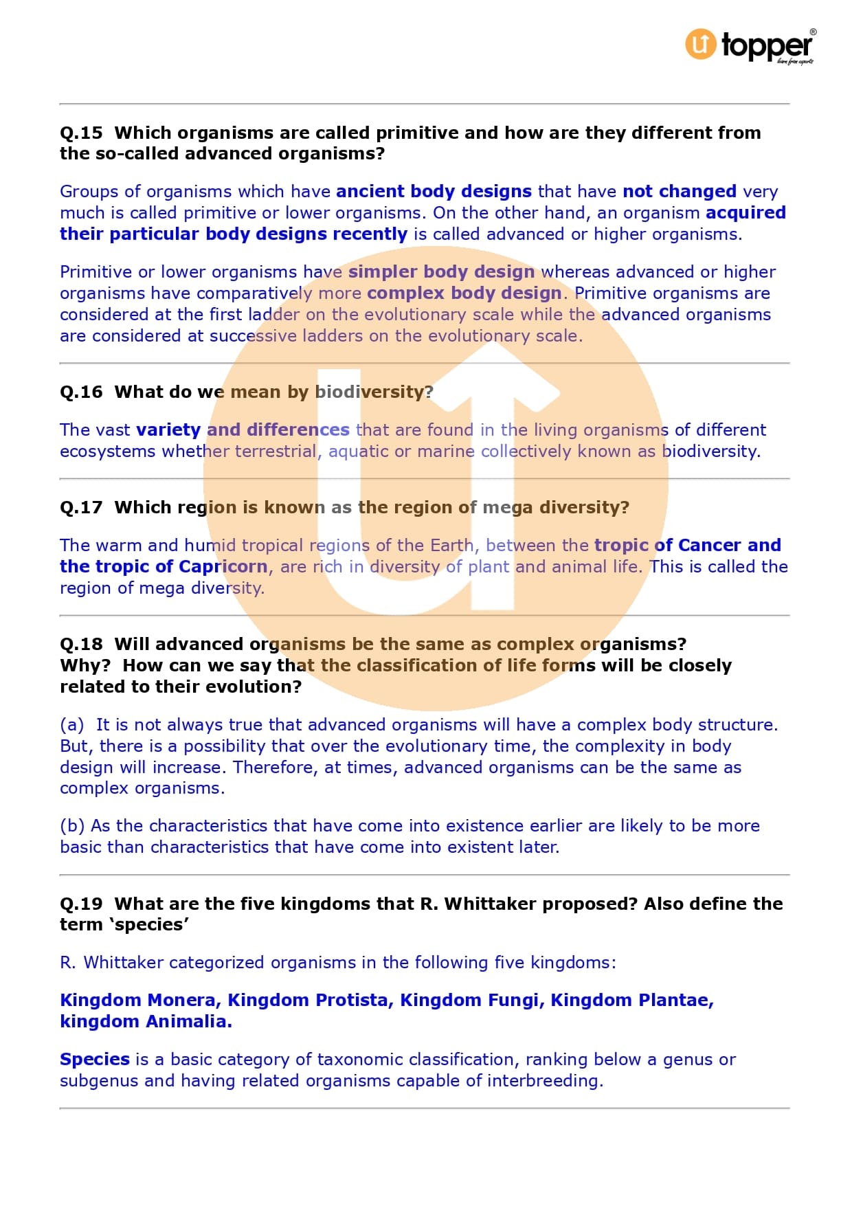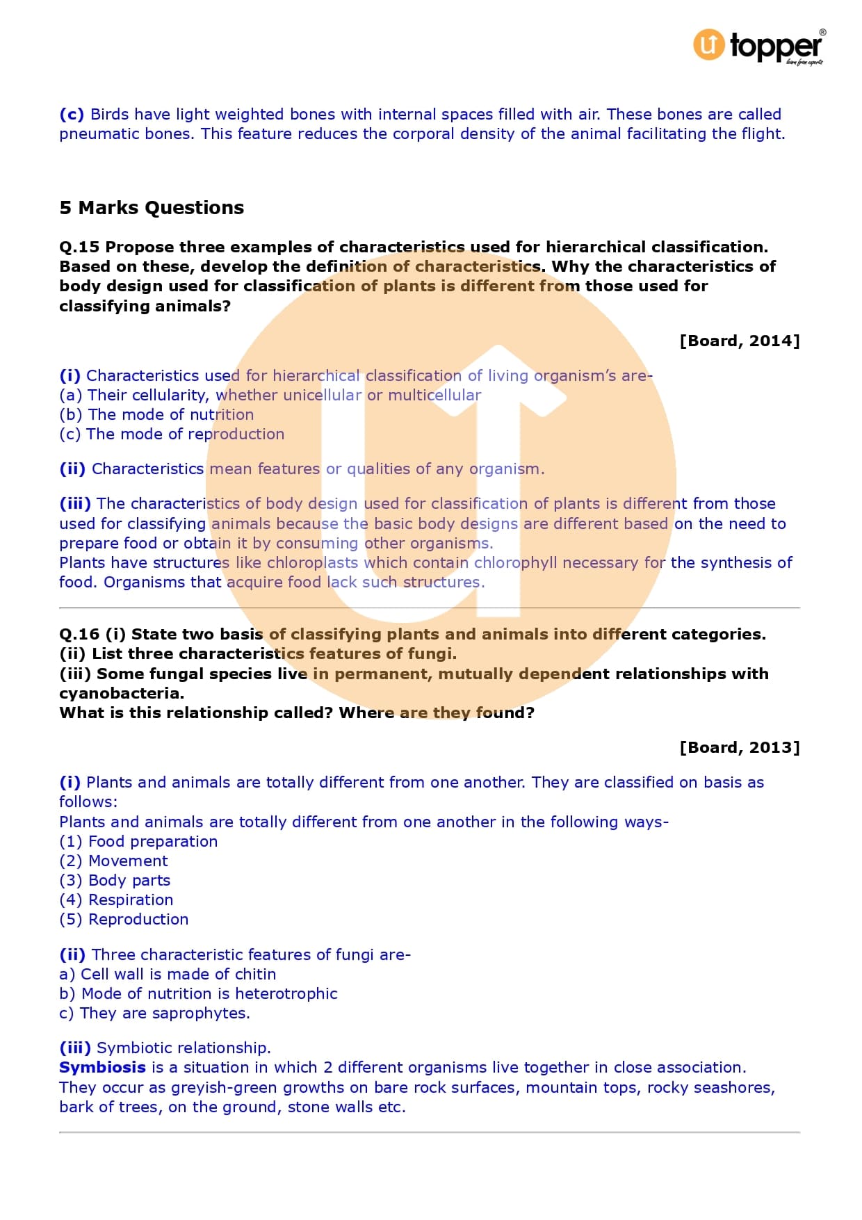 Class 9 Science Important Question CBSE Chapter 7 – Diversity in Living Organisms