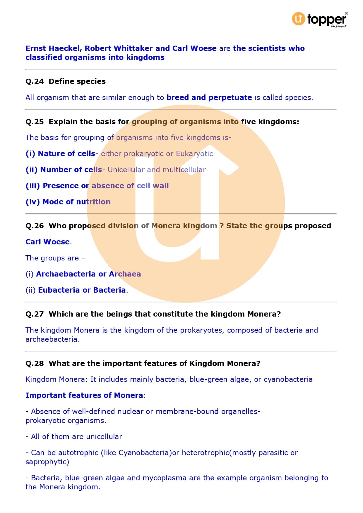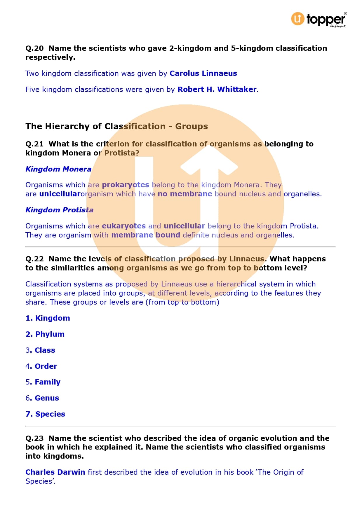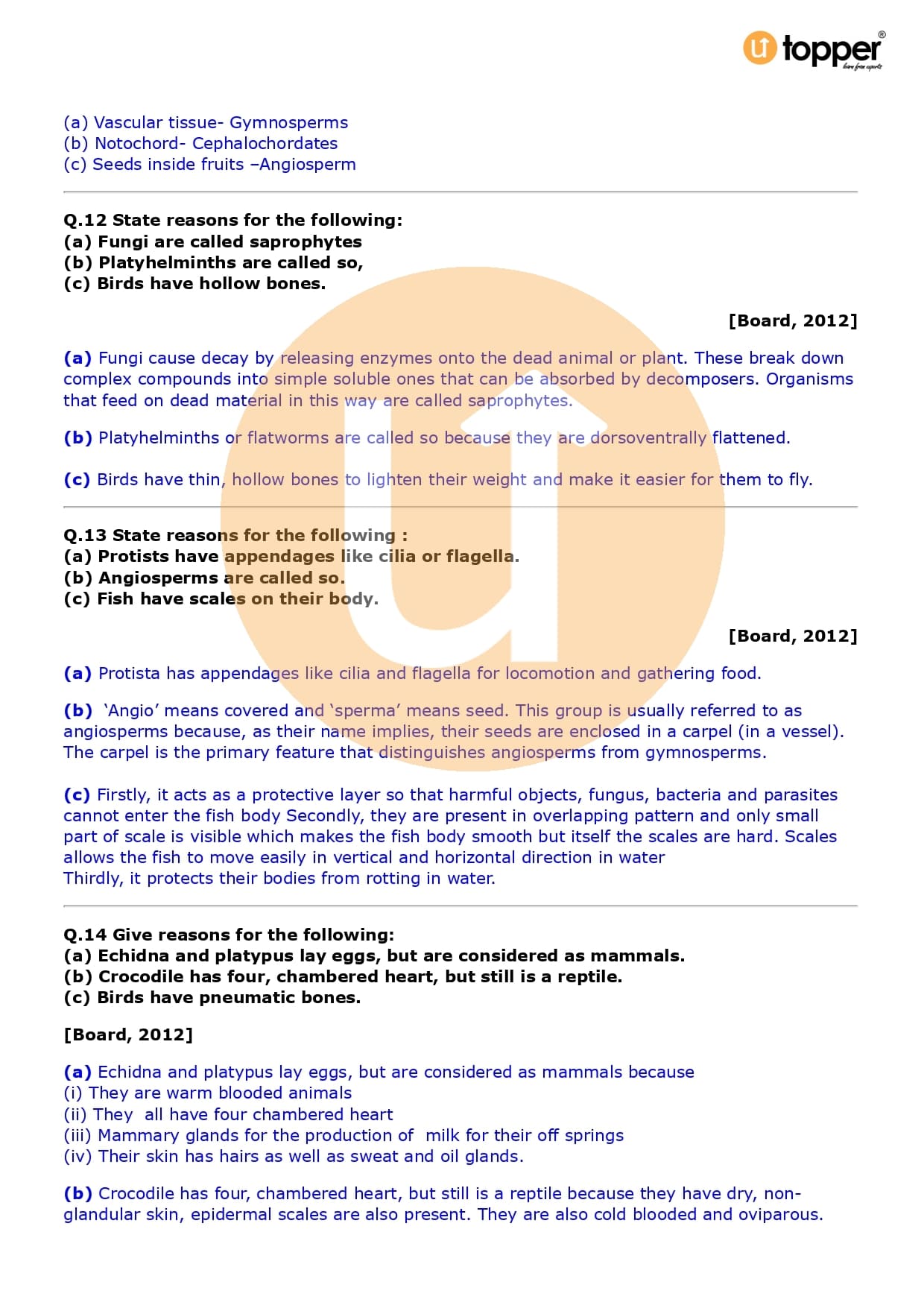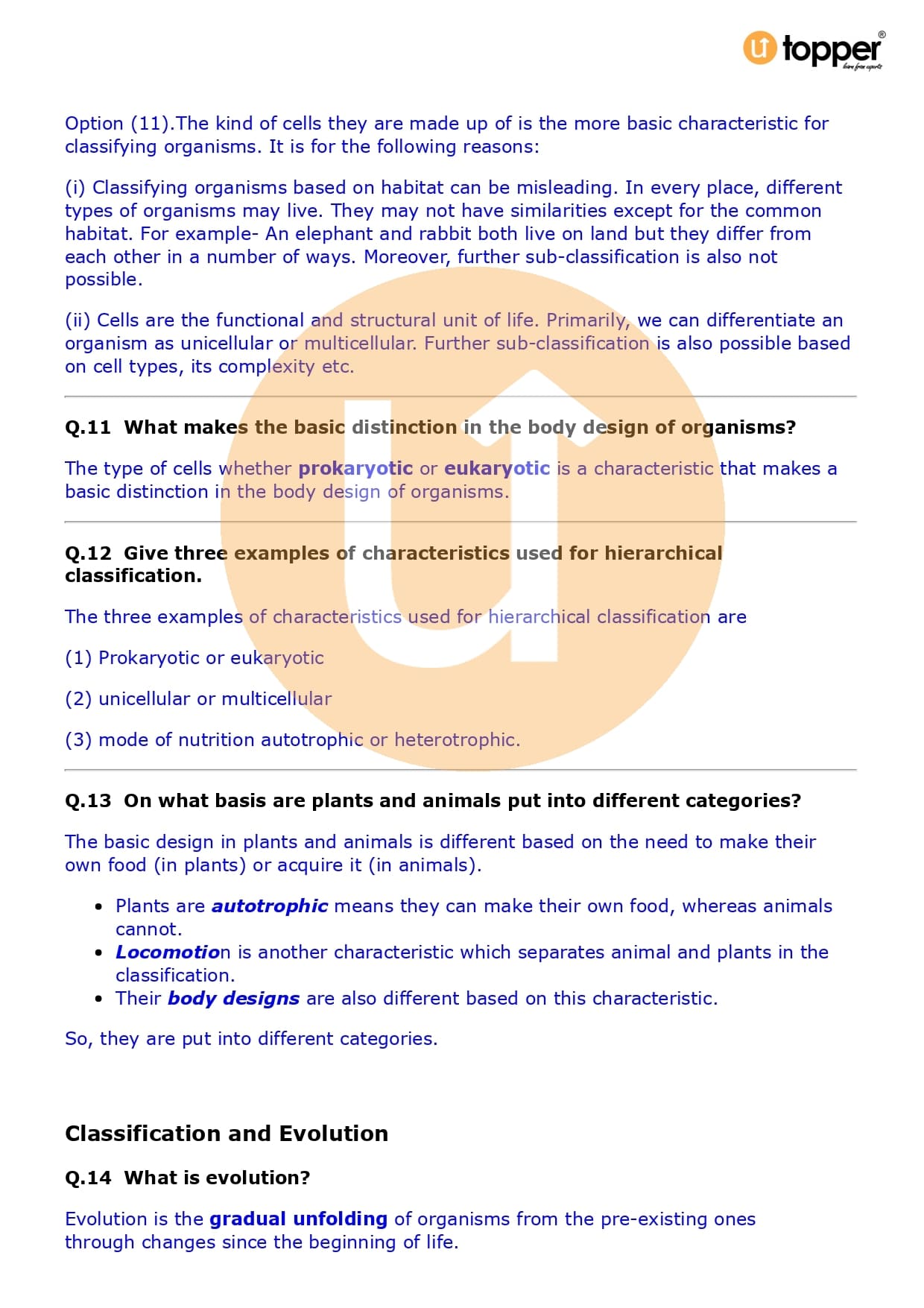 Class 9 Science Important Question CBSE Chapter 7 – Diversity in Living Organisms