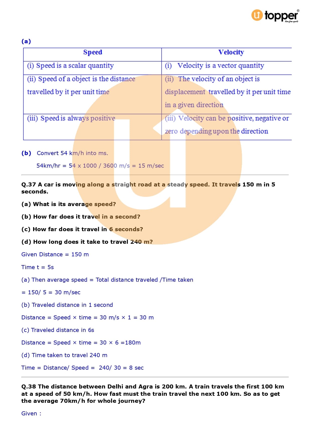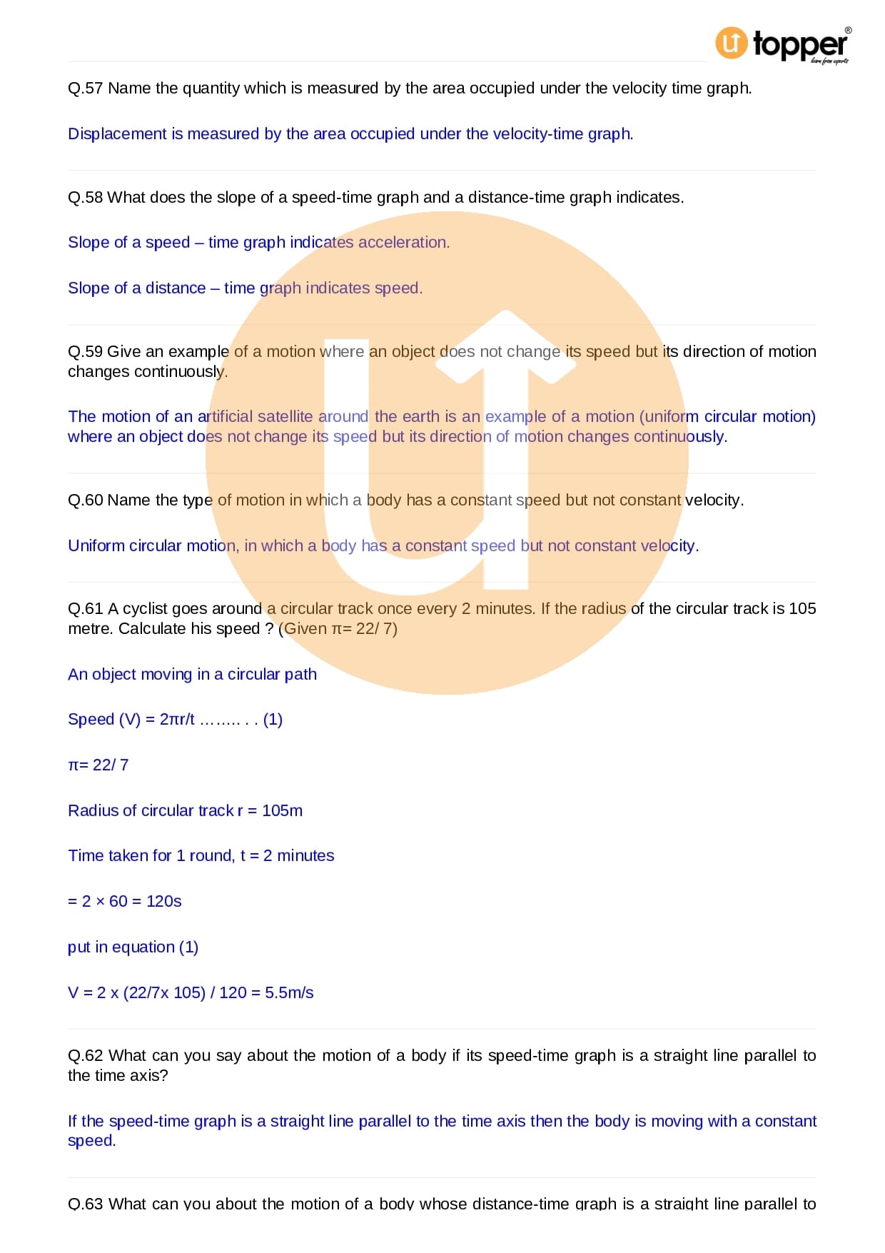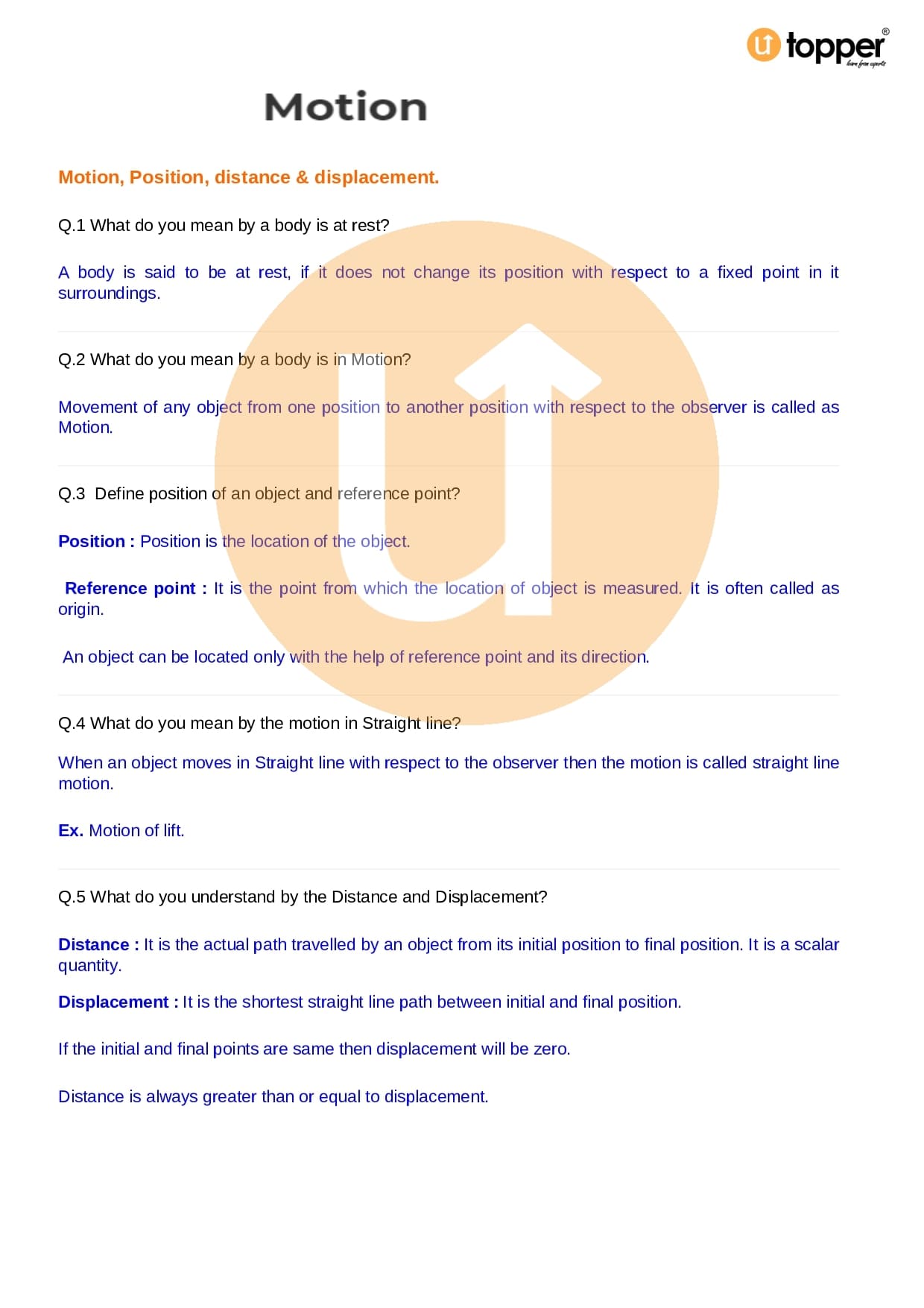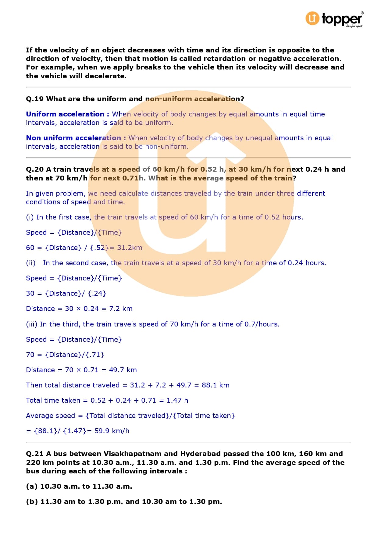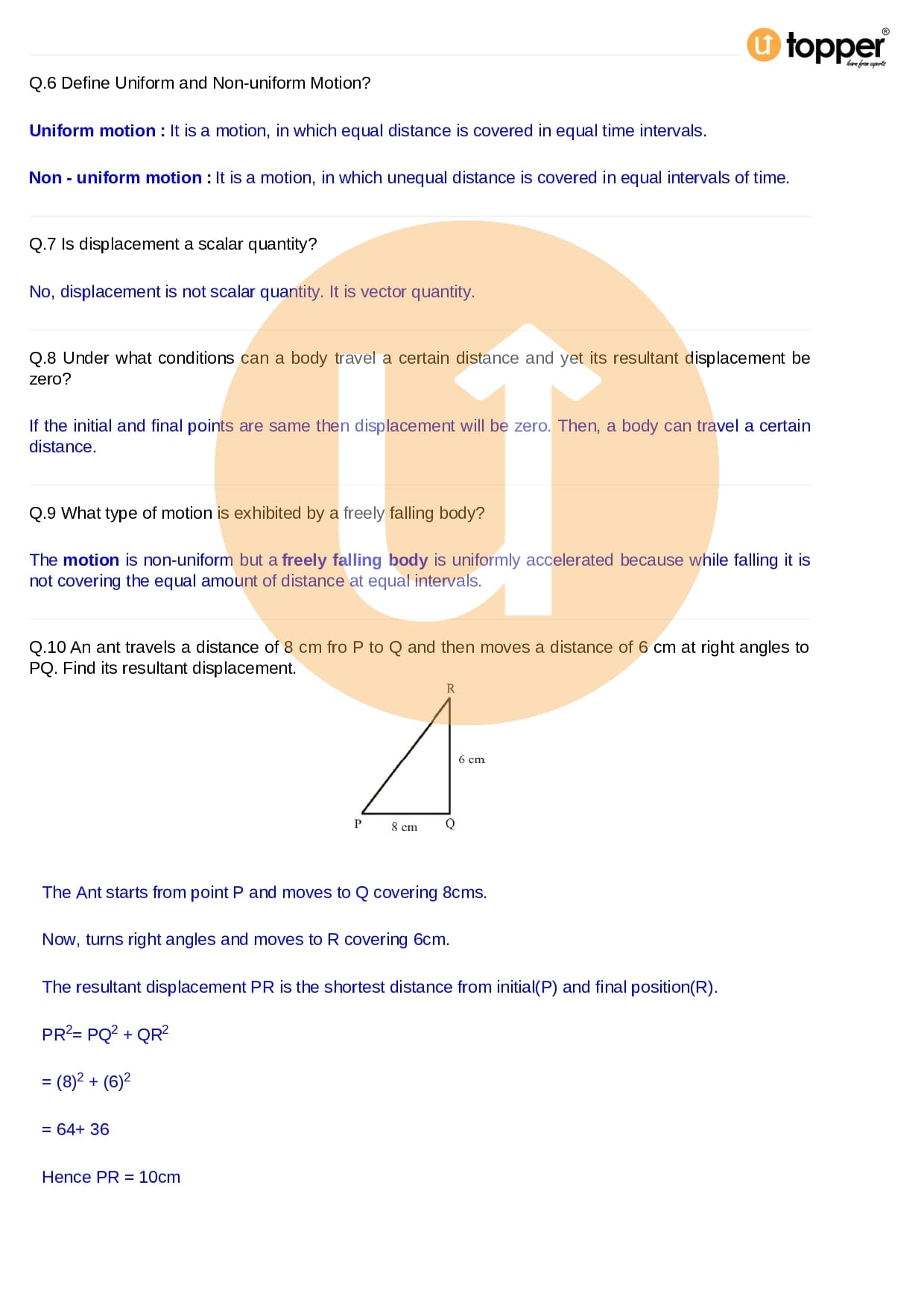 Class 9 Science Important Questions Chapter 8 Pdf – Motion