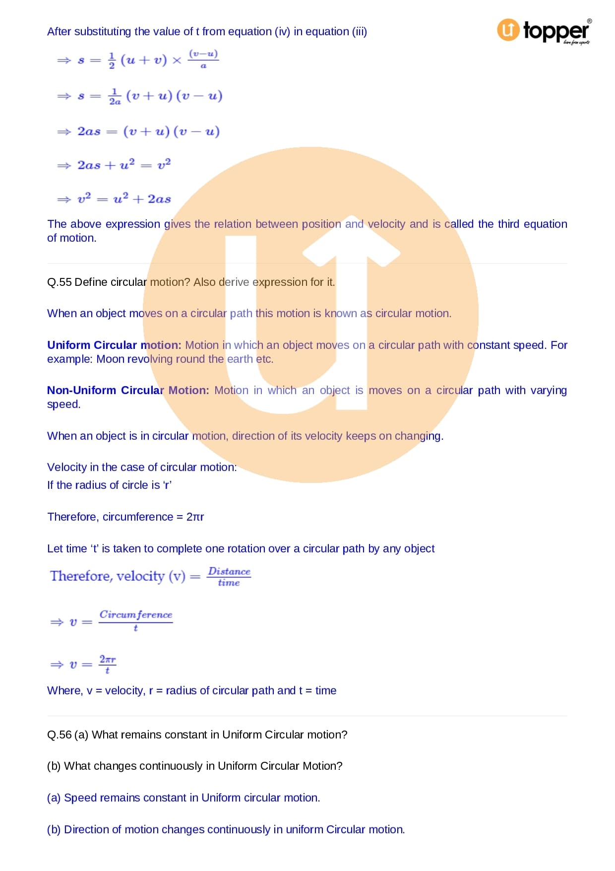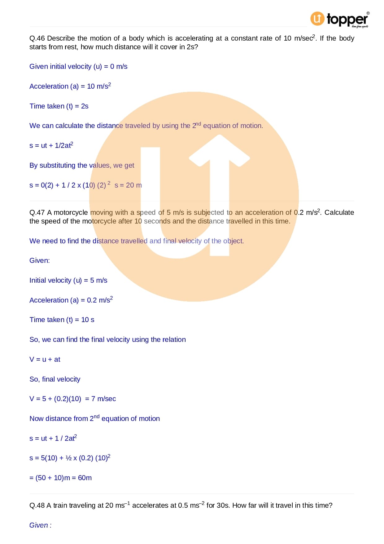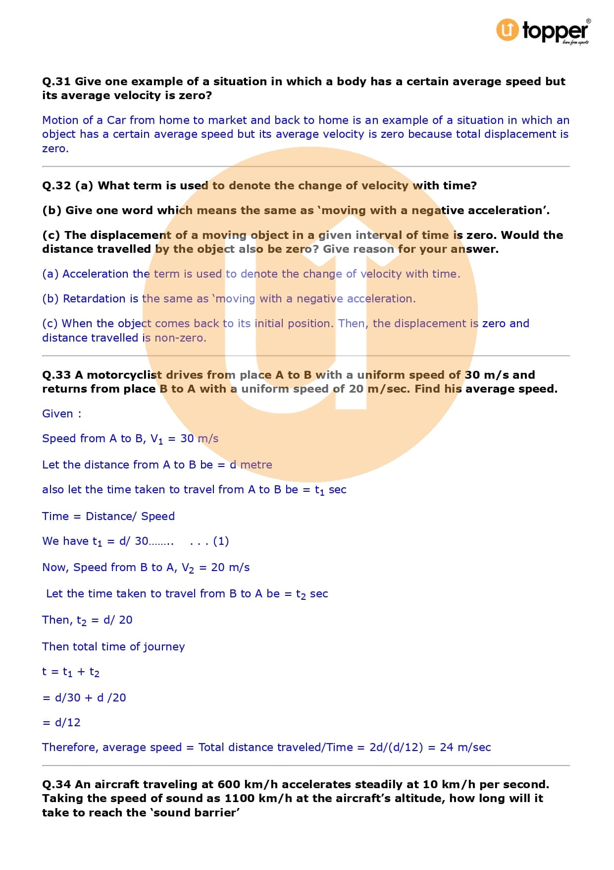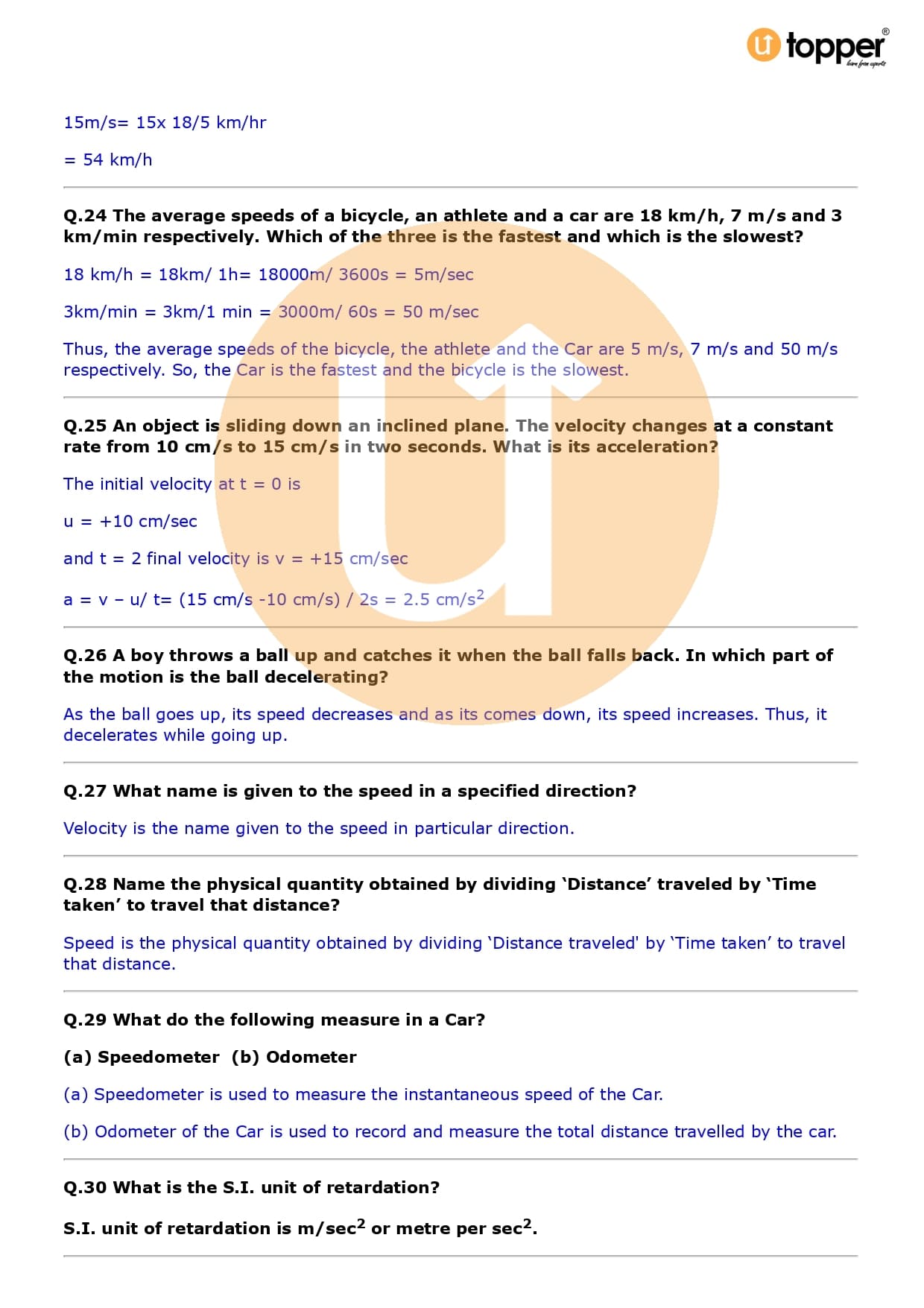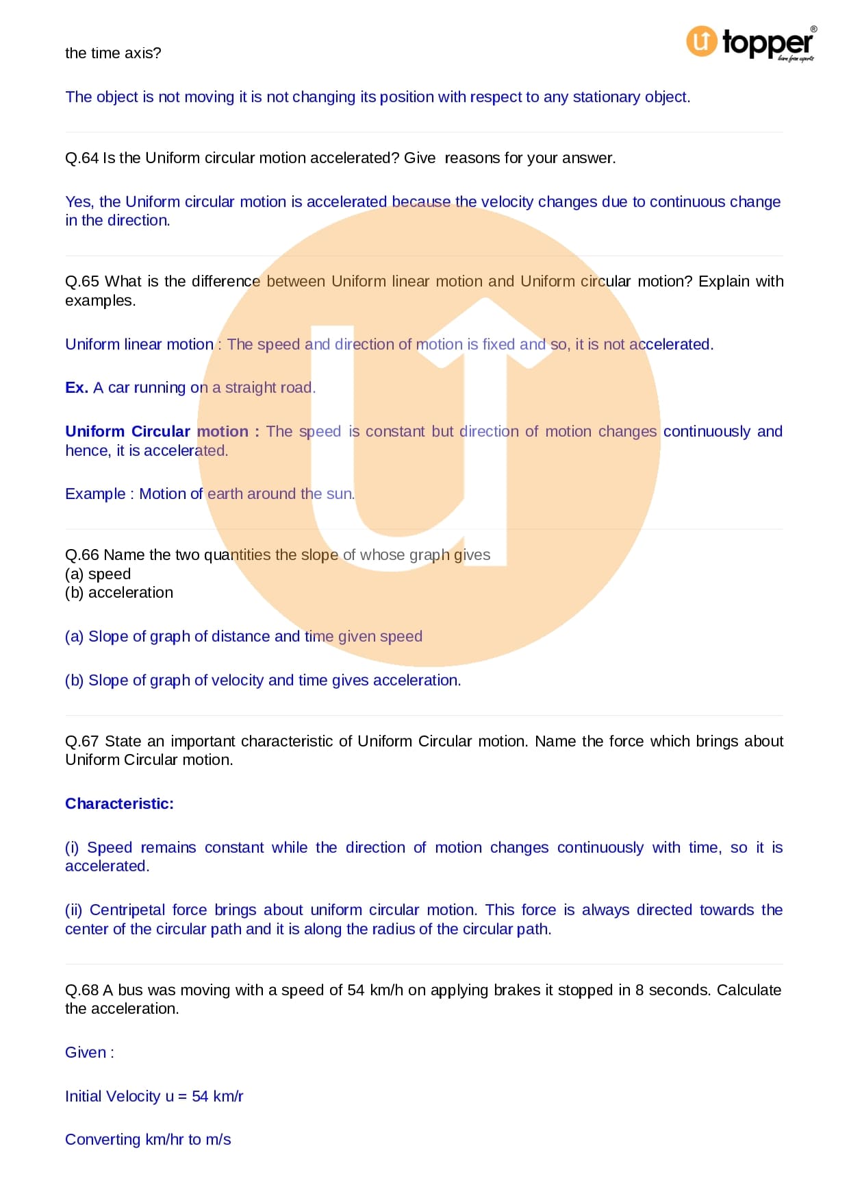 Class 9 Science Important Questions Chapter 8 Pdf – Motion