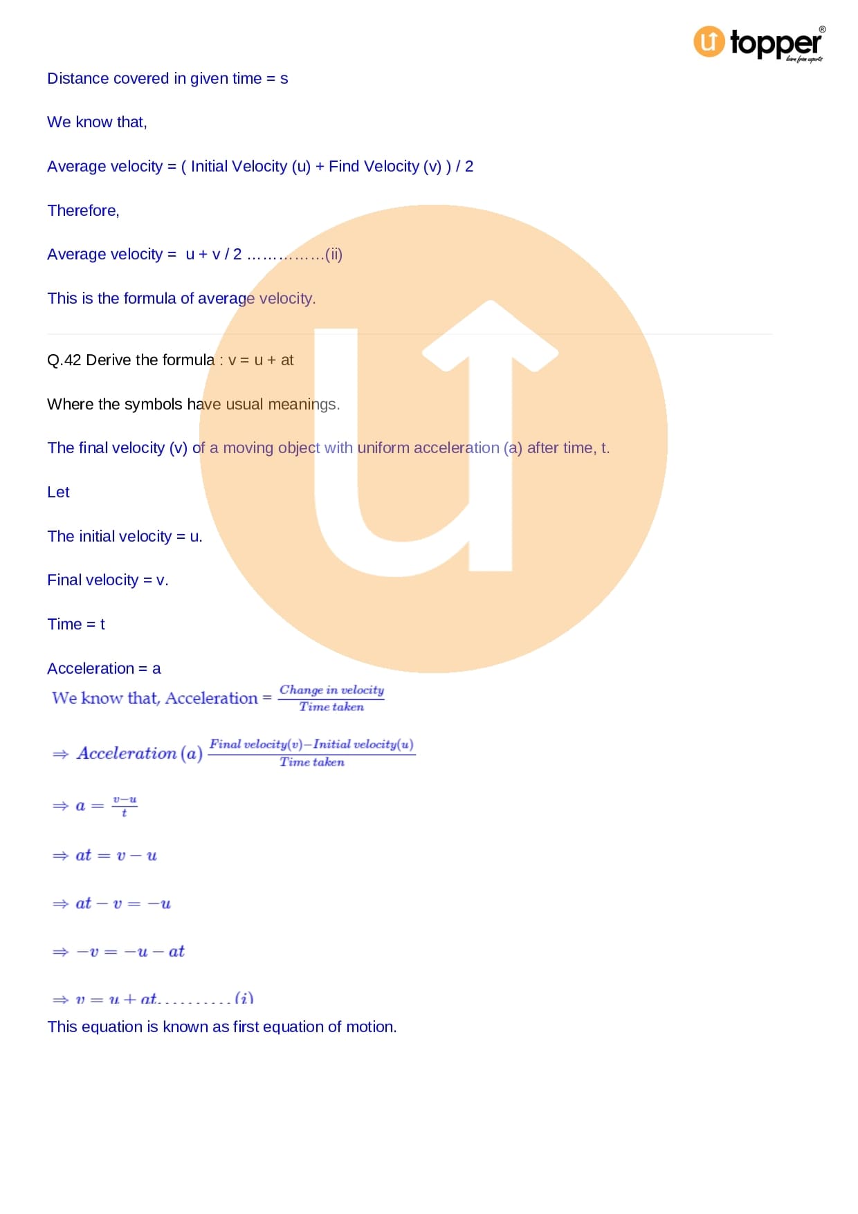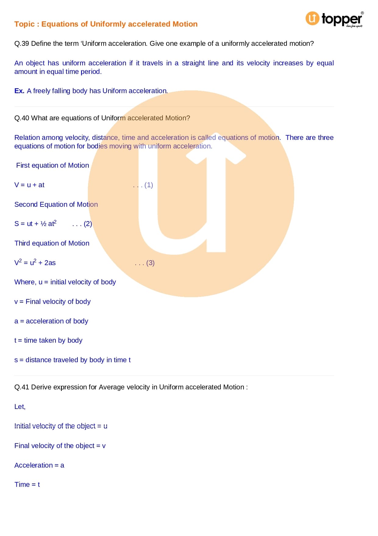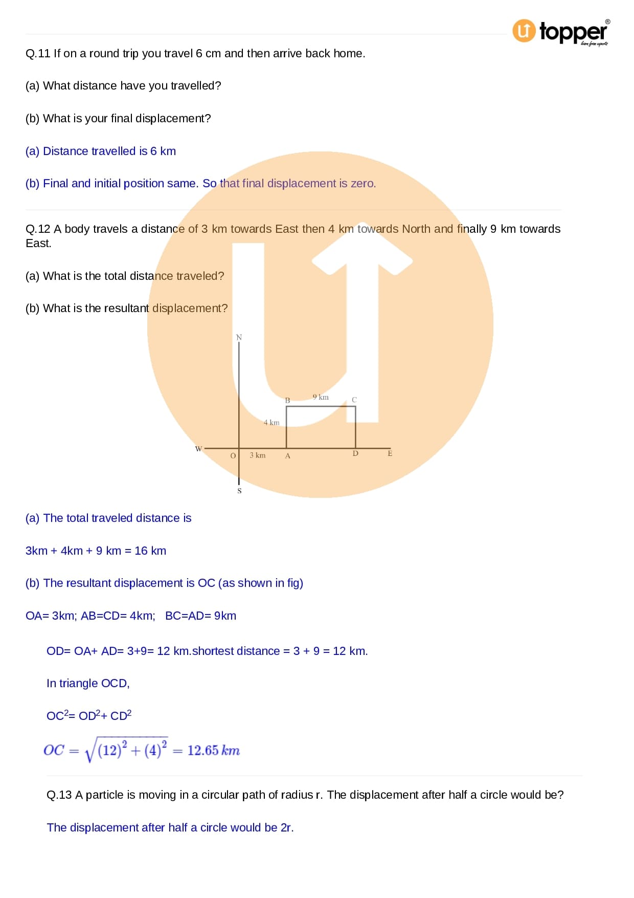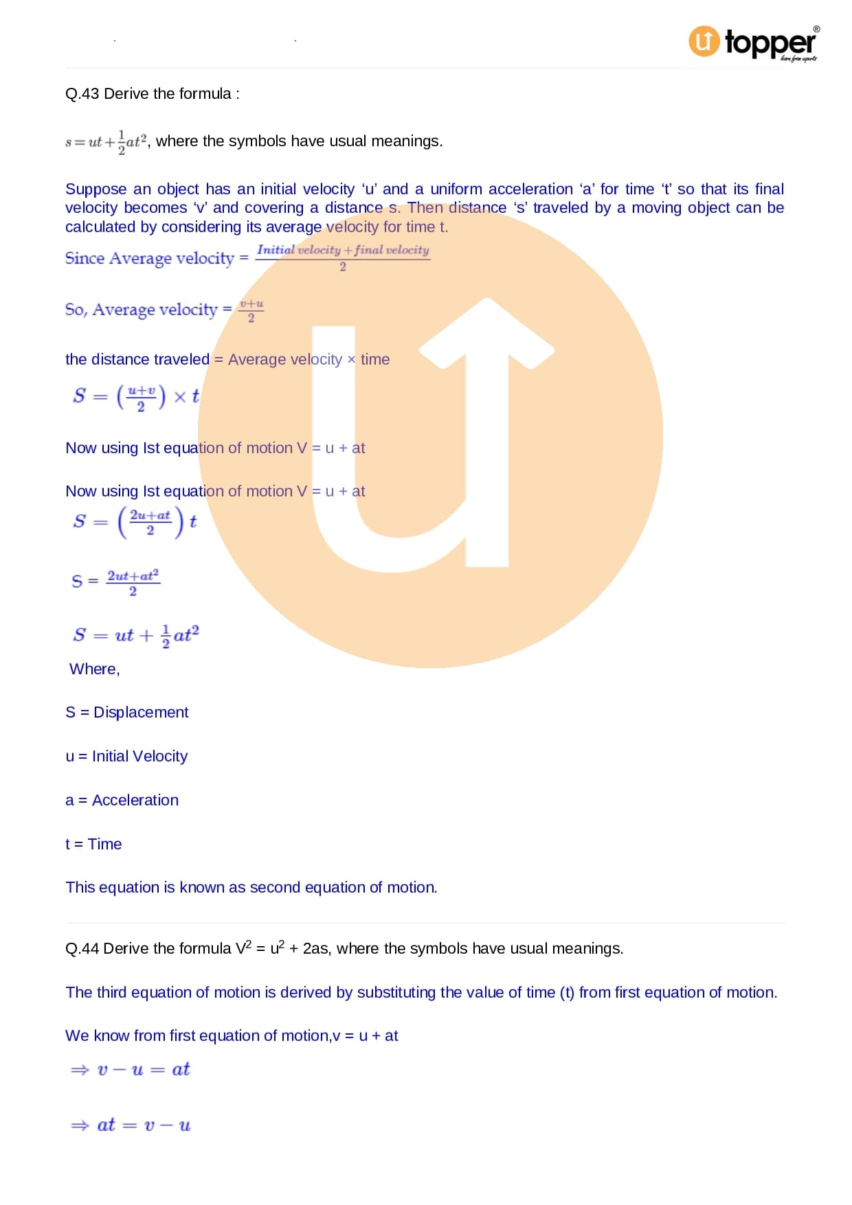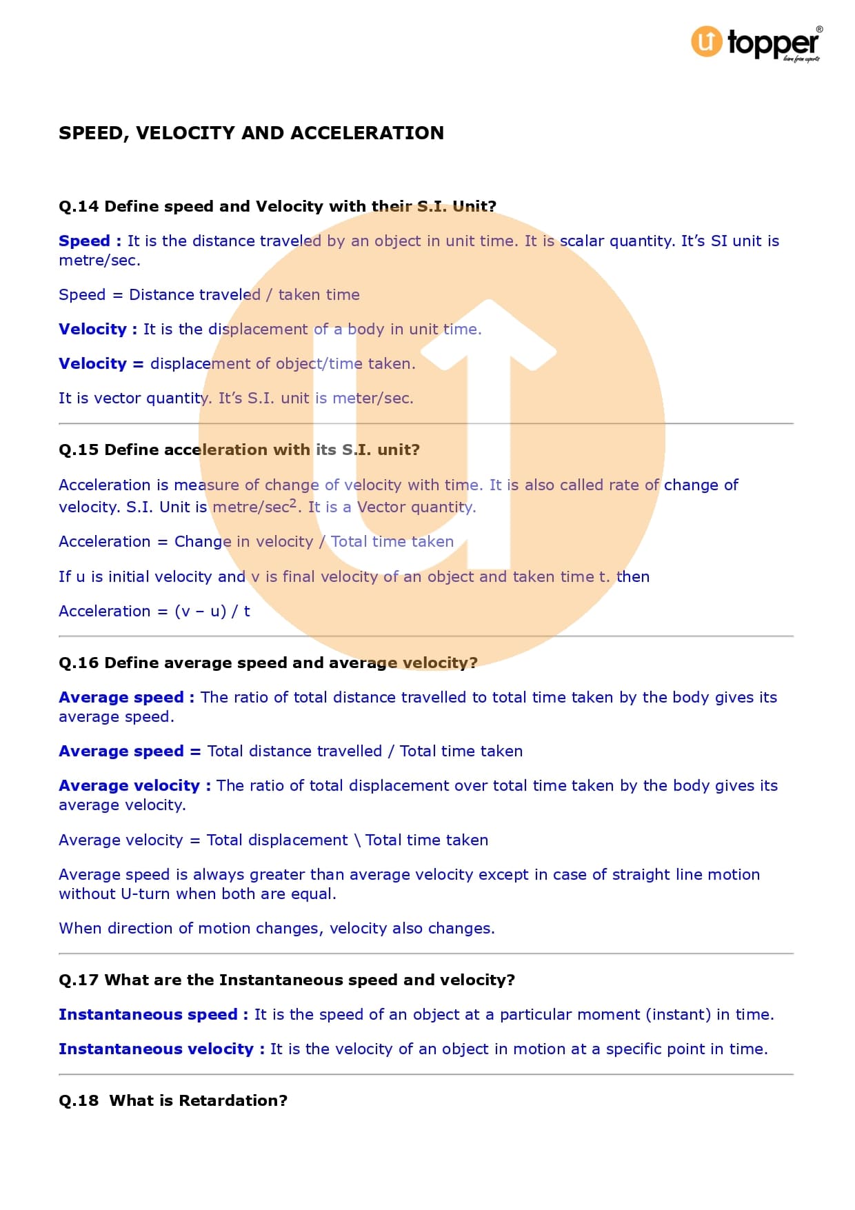 Class 9 Science Important Questions Chapter 8 Pdf – Motion