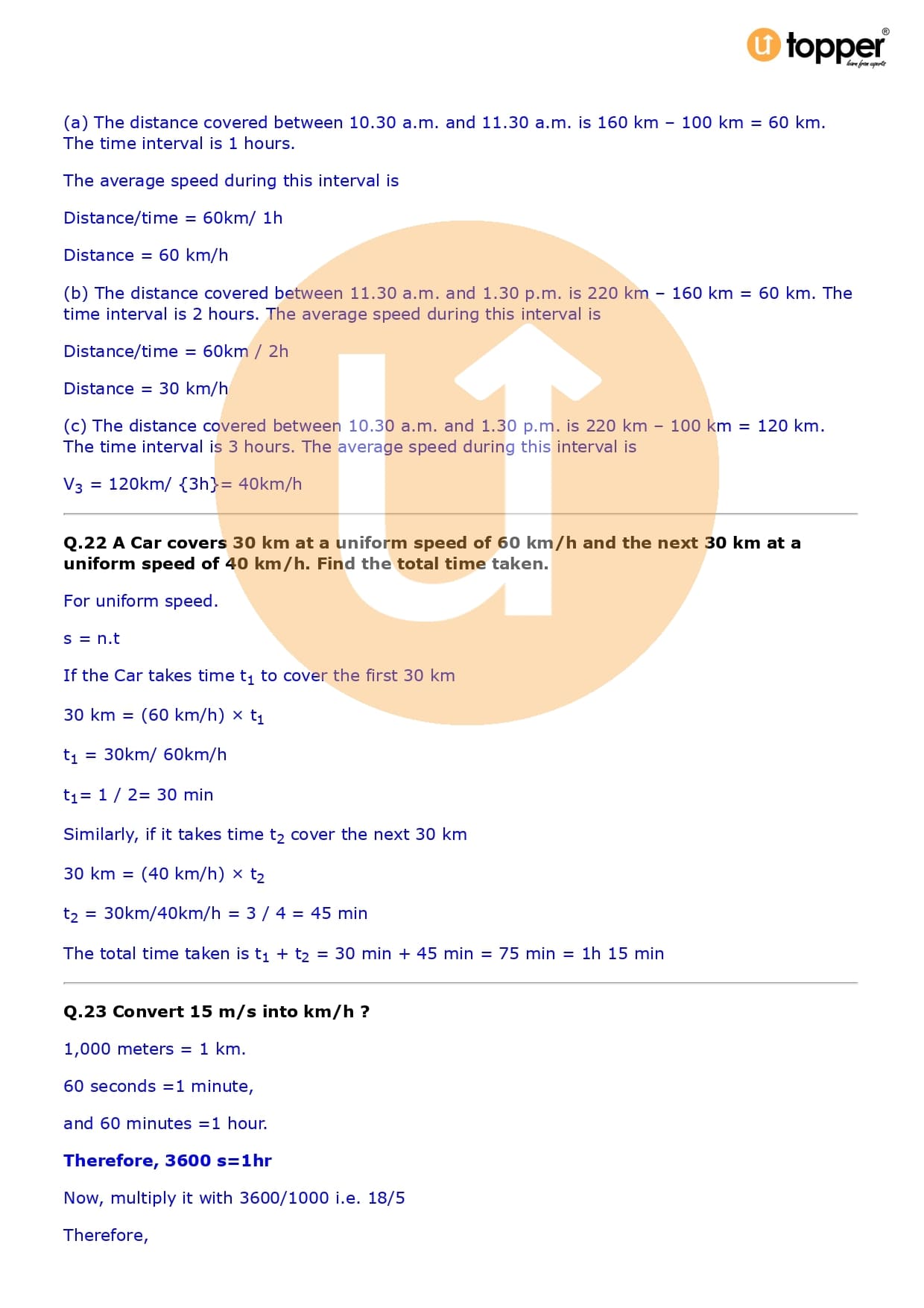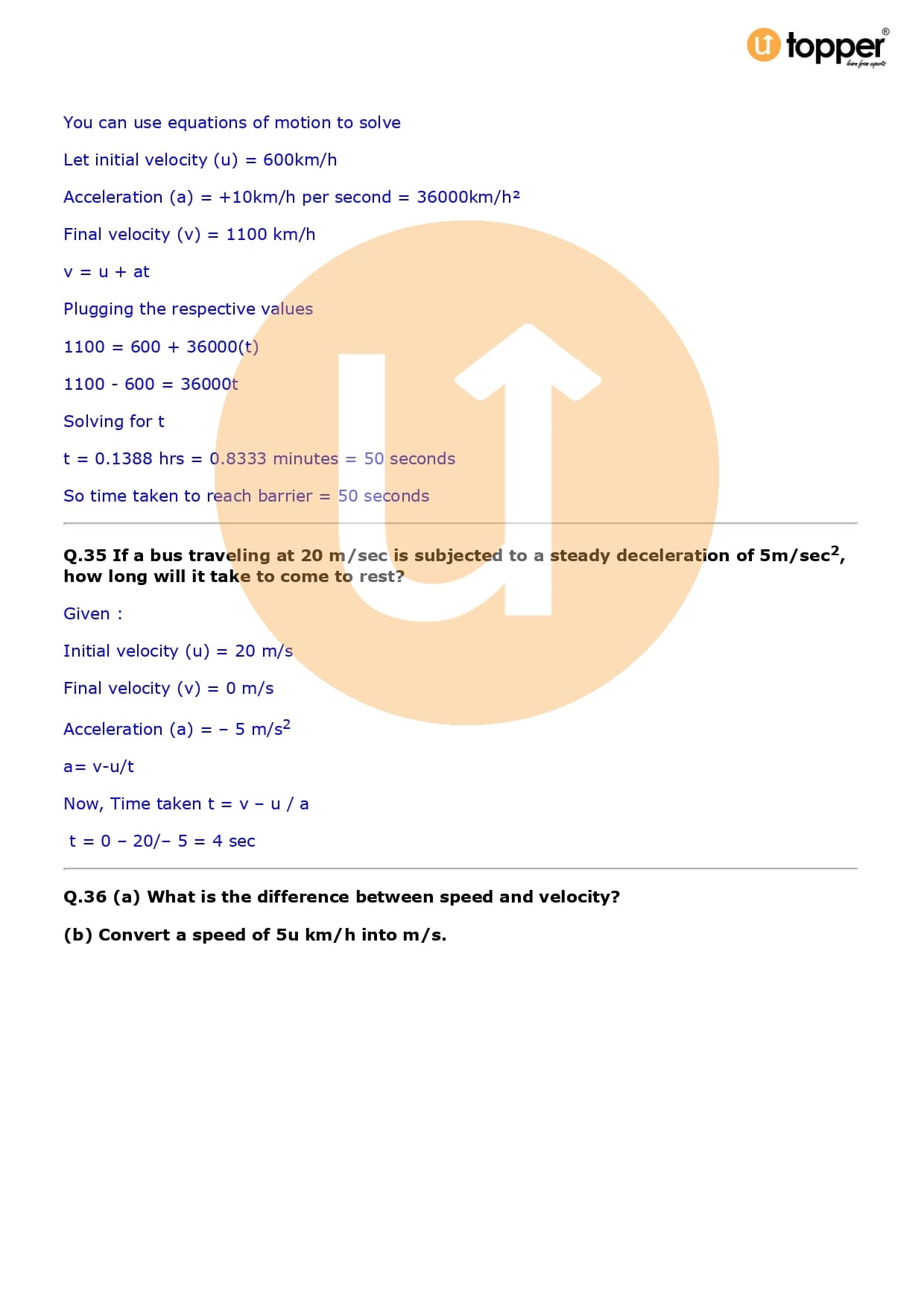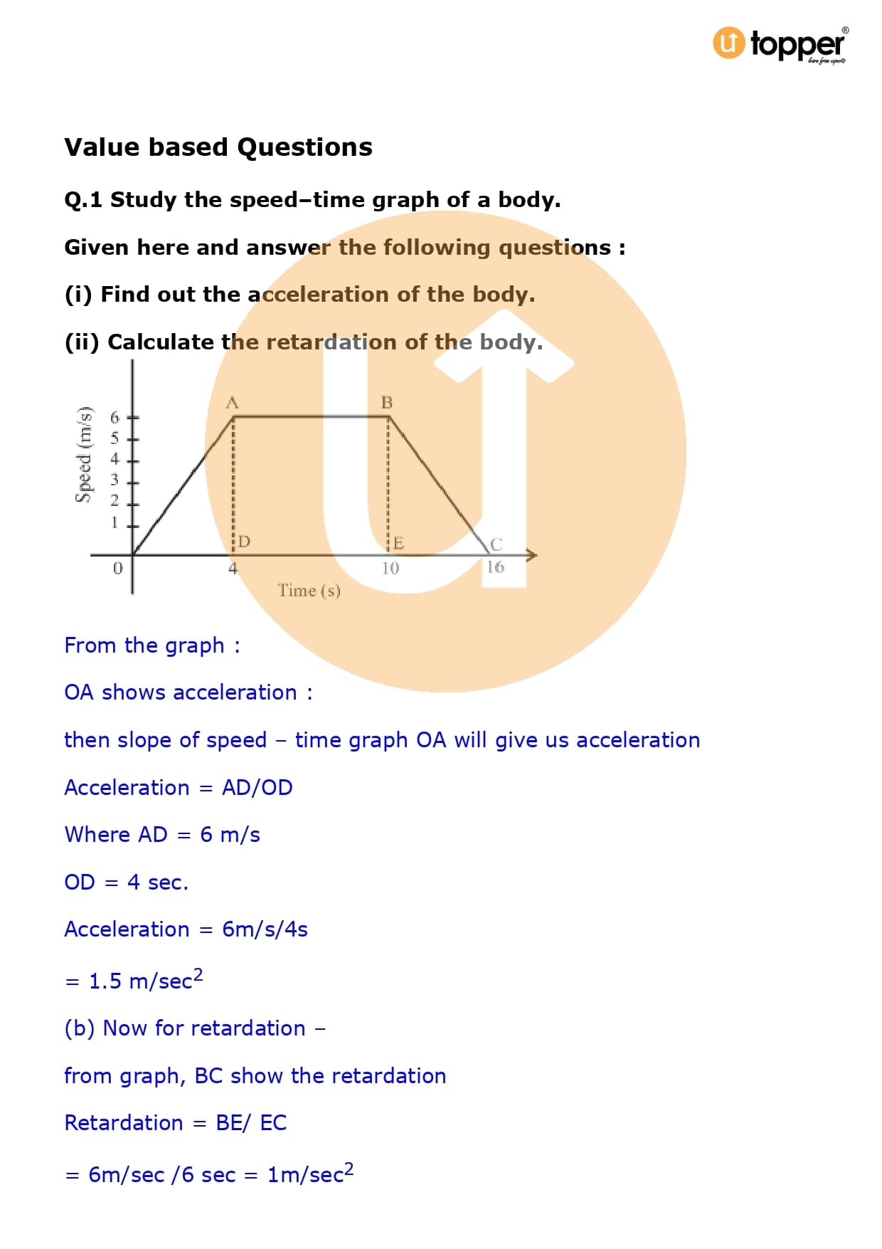 Class 9 Science Important Question CBSE Chapter 8 – Motion
