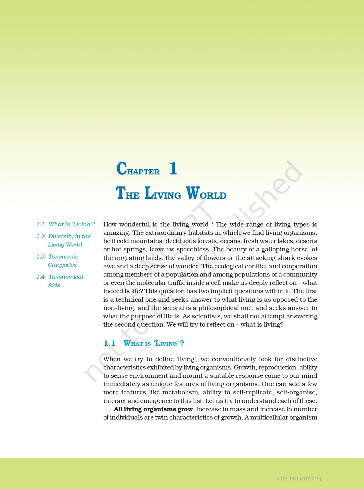 Class 11 Biology Ncert Book (Chapter 1)