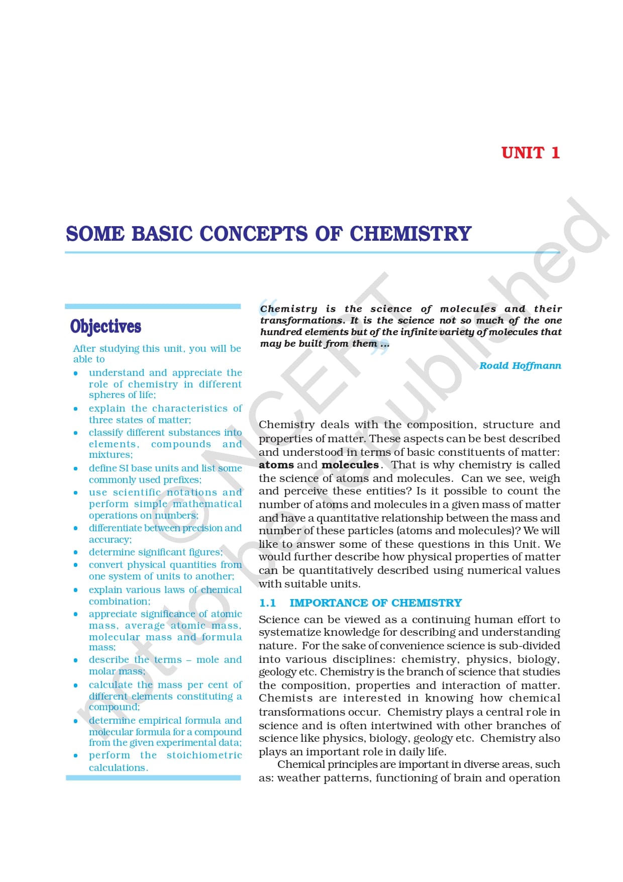 Class 11 Chemistry Ncert Book (Chapter 1)