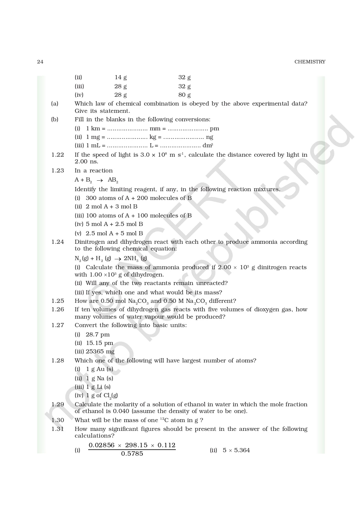 Class 11 Ncert Book Chemistry Chapter 1 – Some Basic Concepts of Chemistry