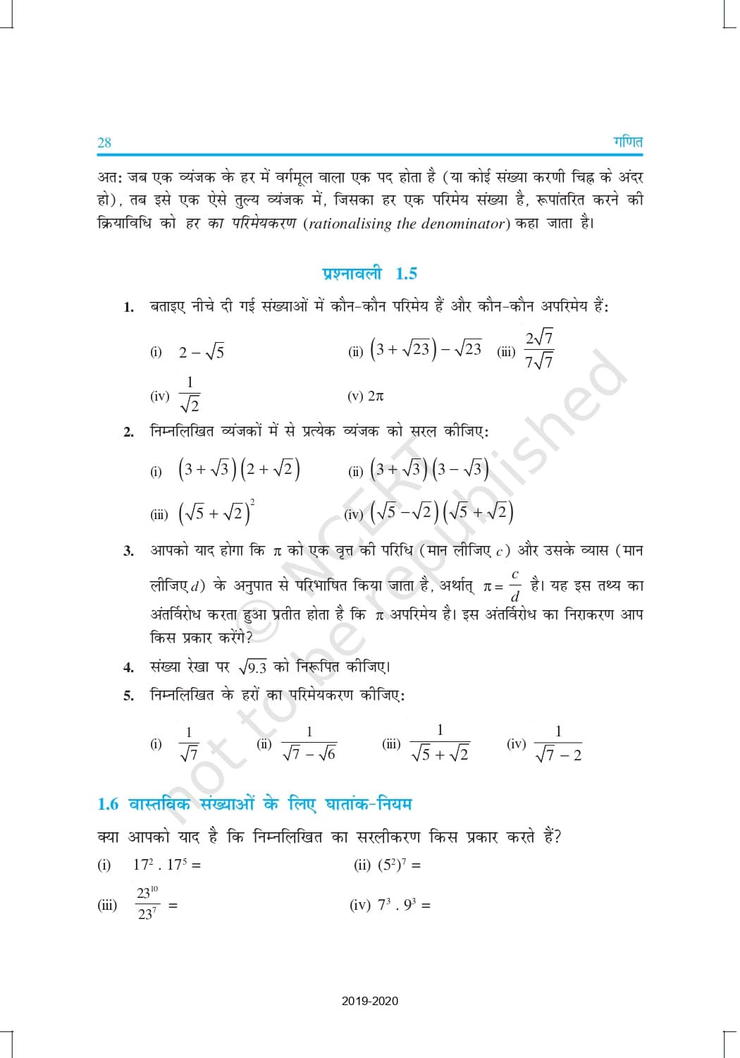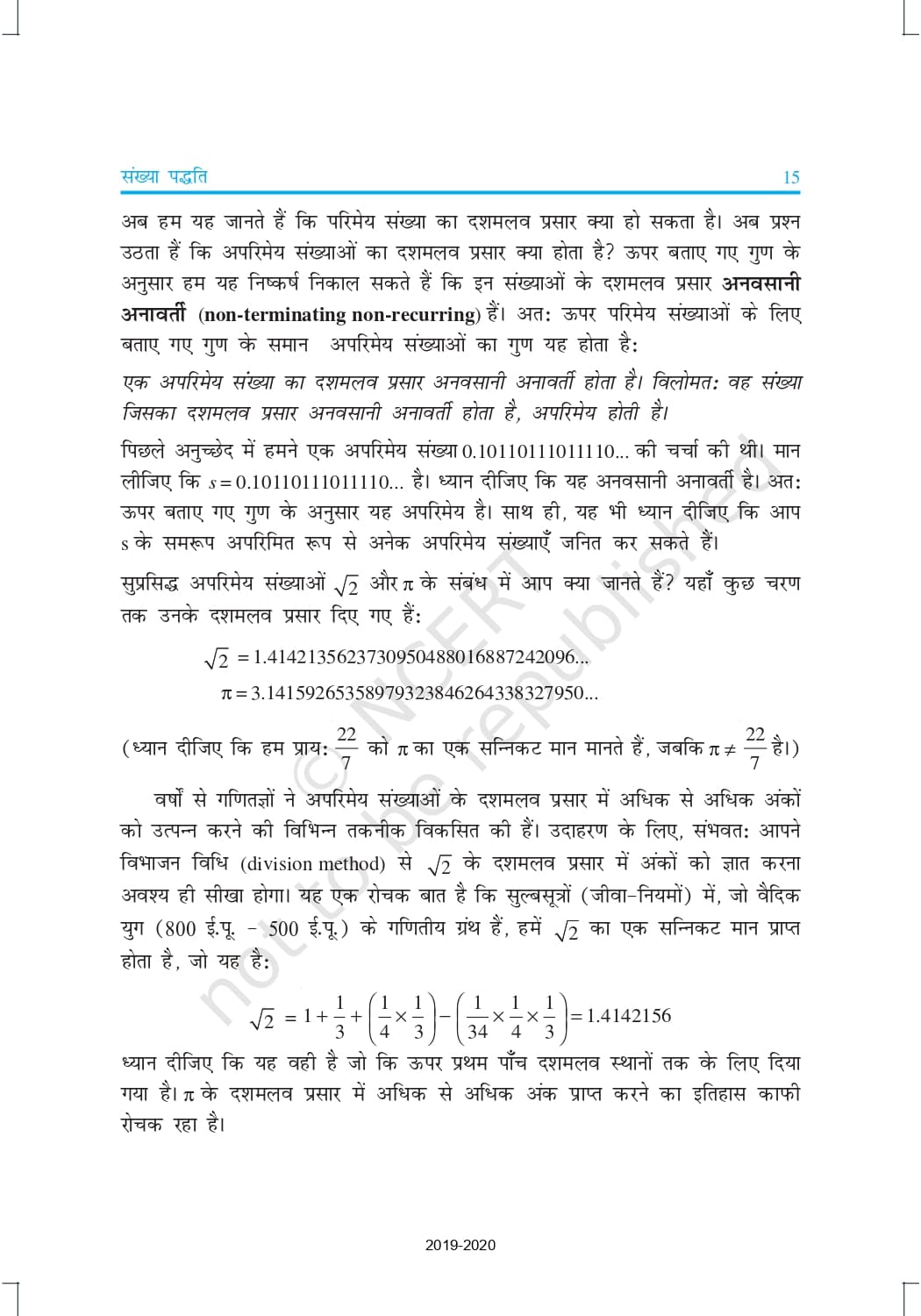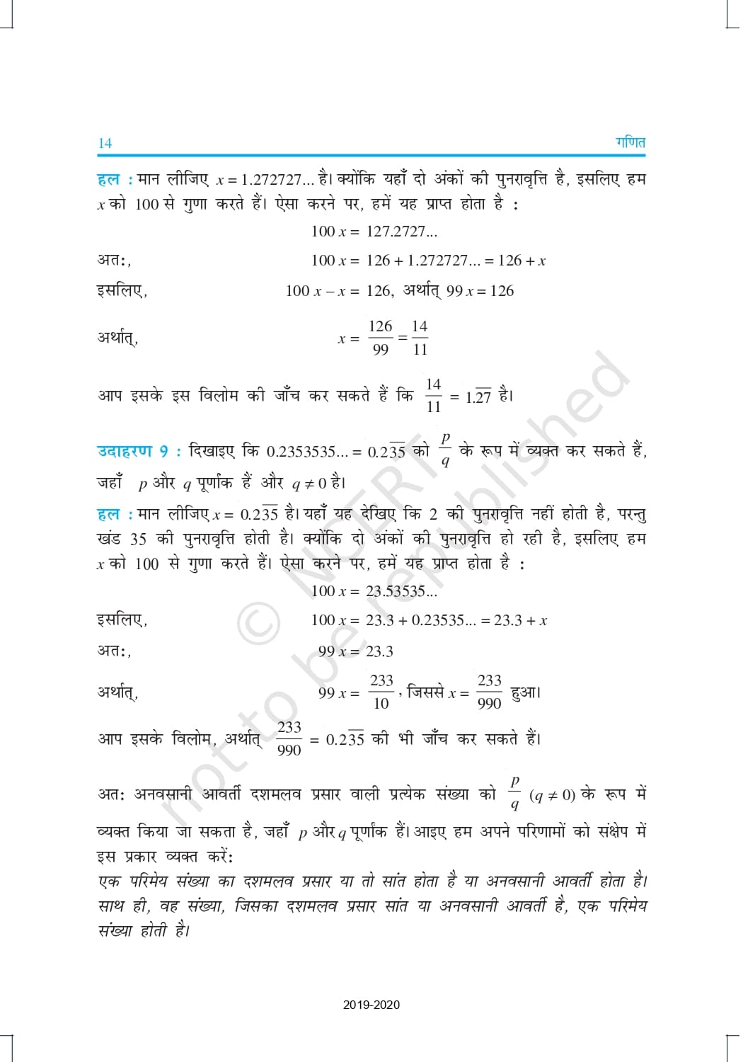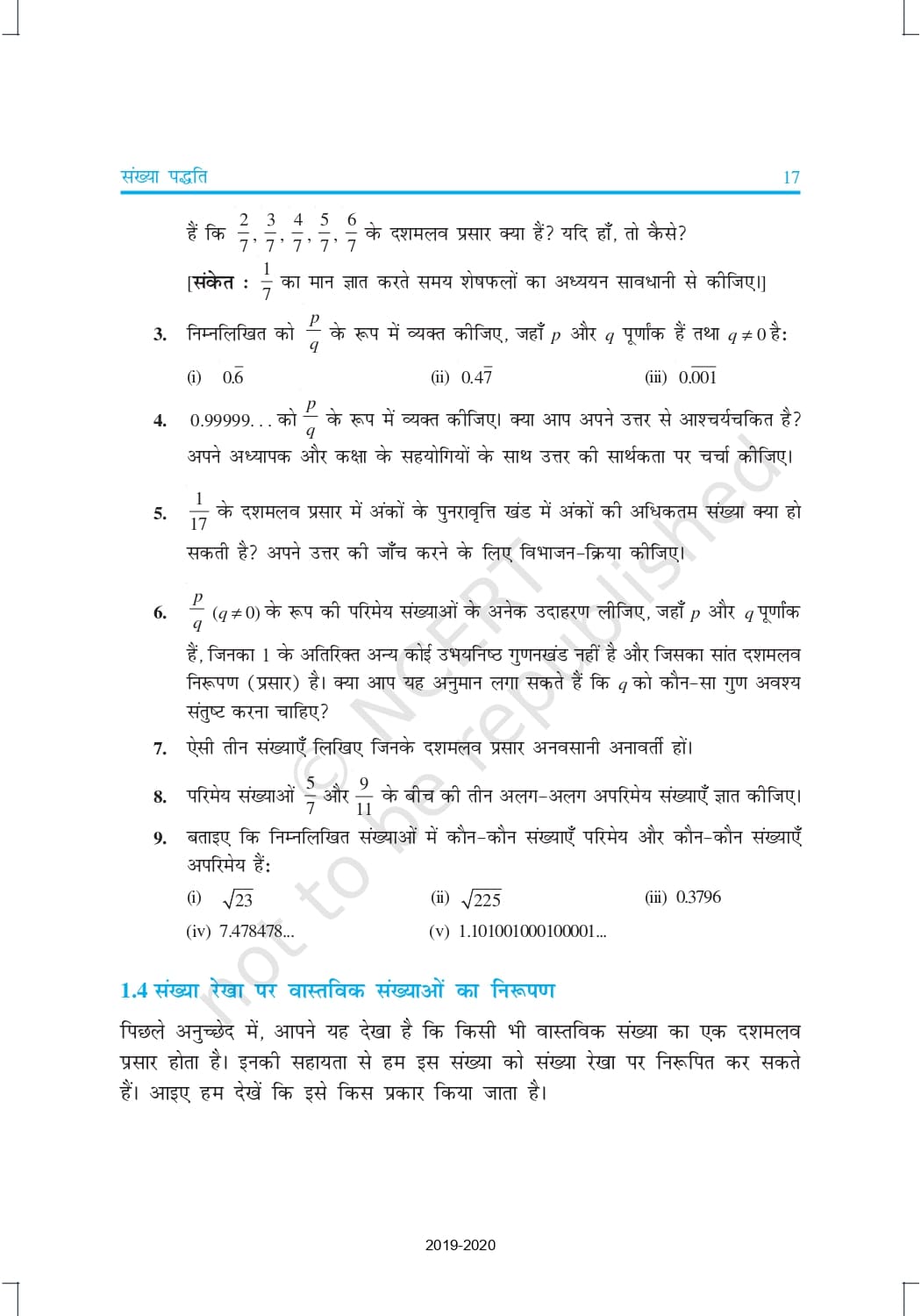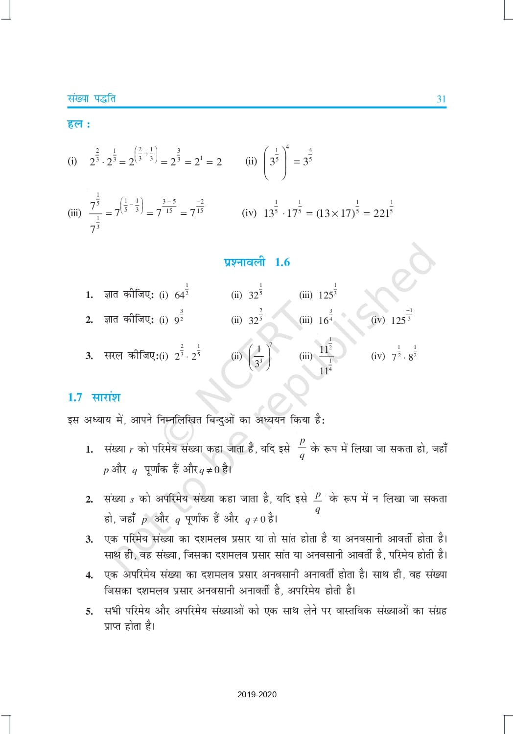 Ncert Books Class 9 Maths in Hindi – Chapter 1 – संख्या पद्धति