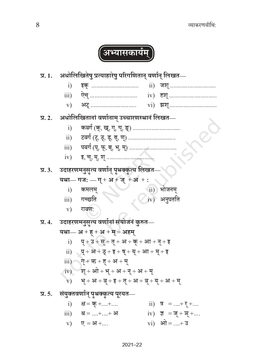 Class 10 Sanskrit Vyakaranavithi Chapter-wise Book Free PDF Download