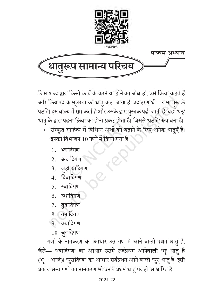 पंचम अध्याय – धातुरूप – सामान्य परिचय