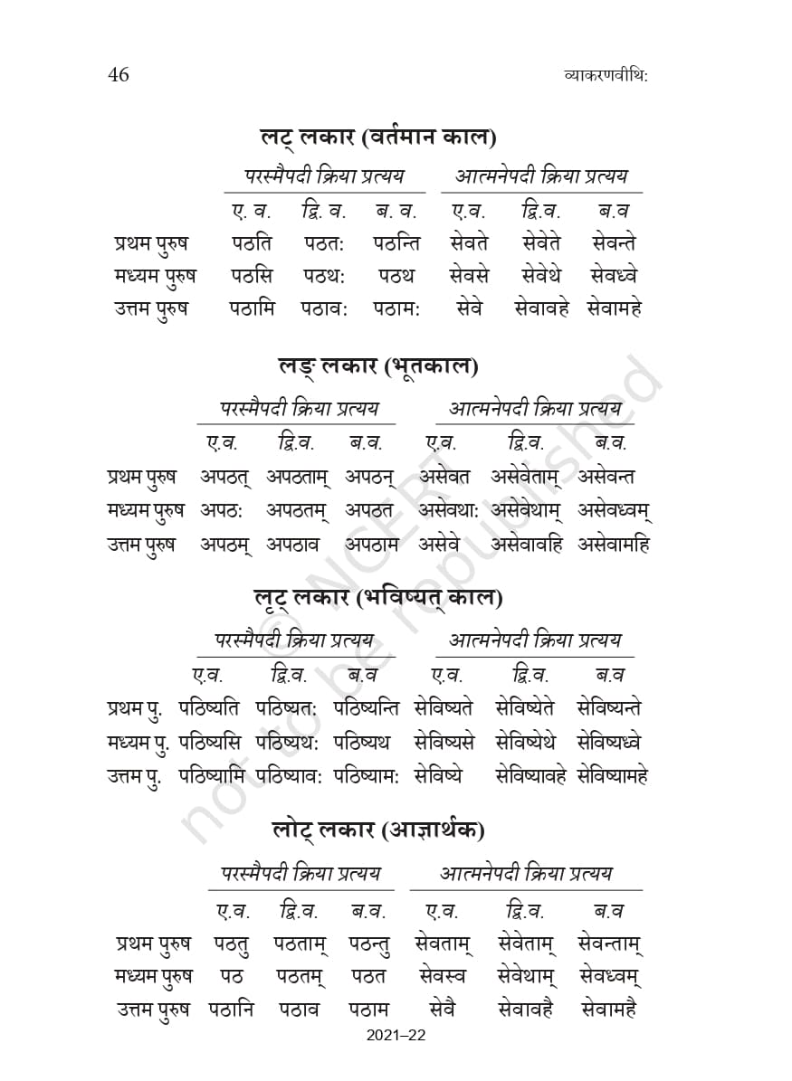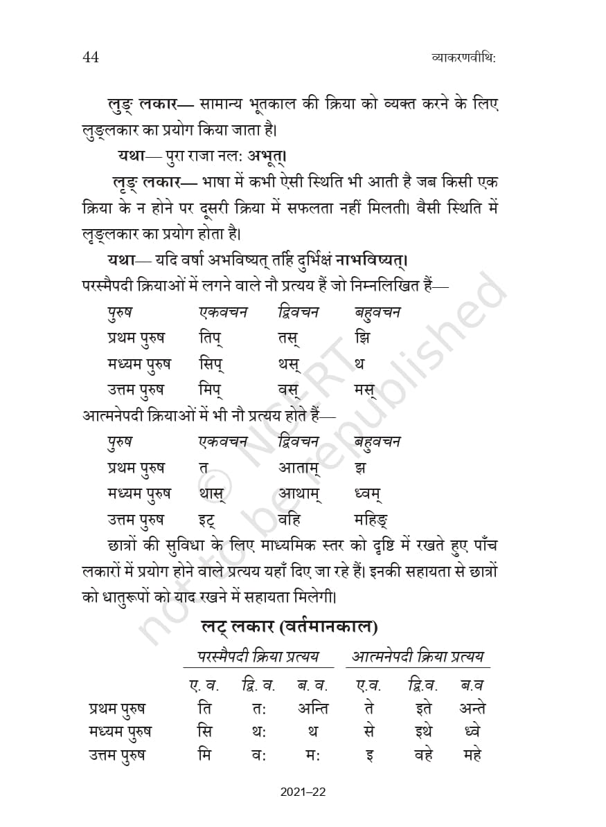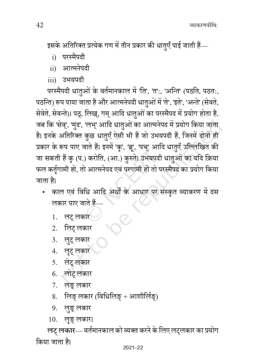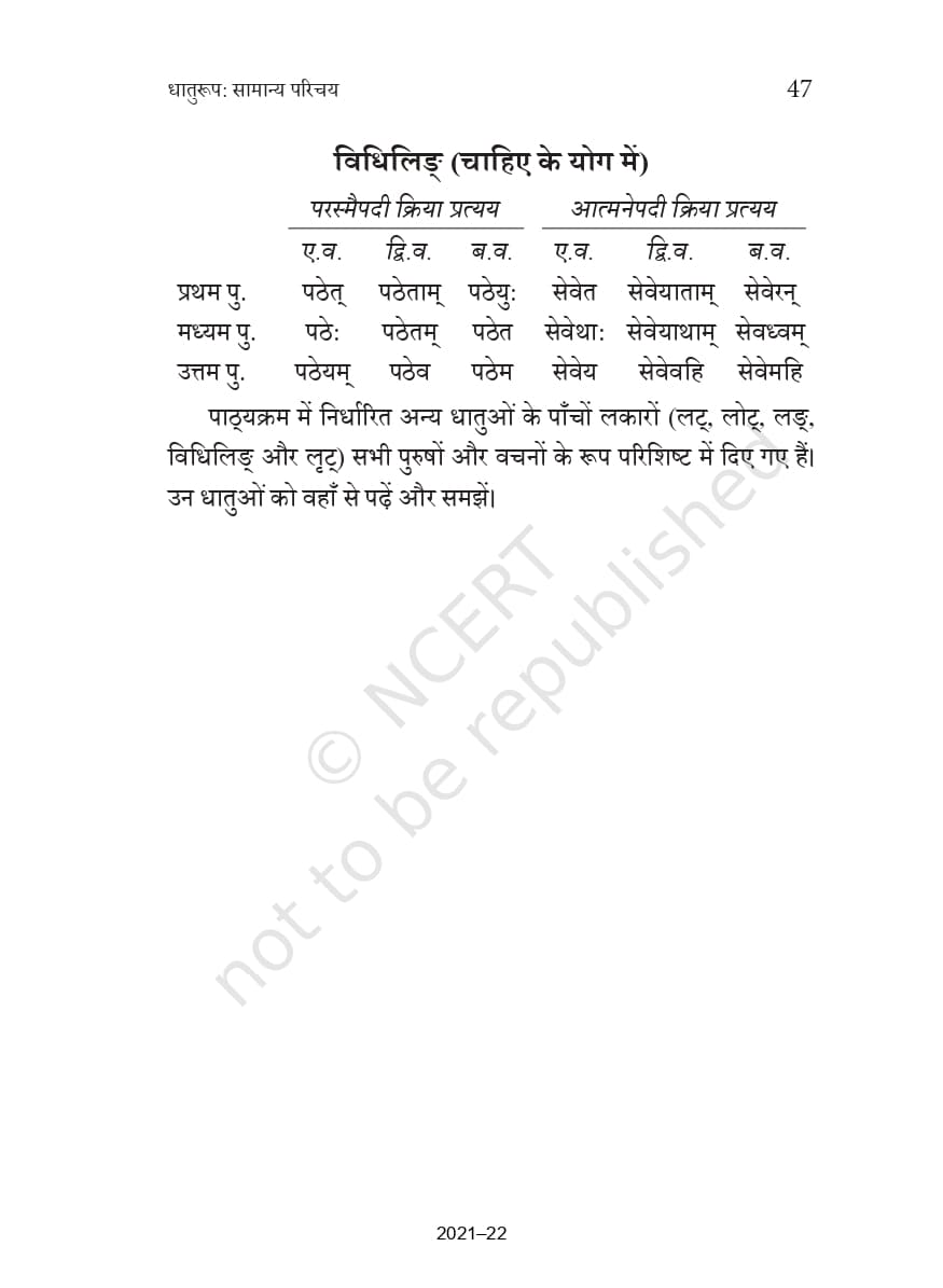 Ncert Books Class 10 Sanskrit व्याकरणवीथिः – Chapter 5 – धातुरूप – सामान्य परिचय