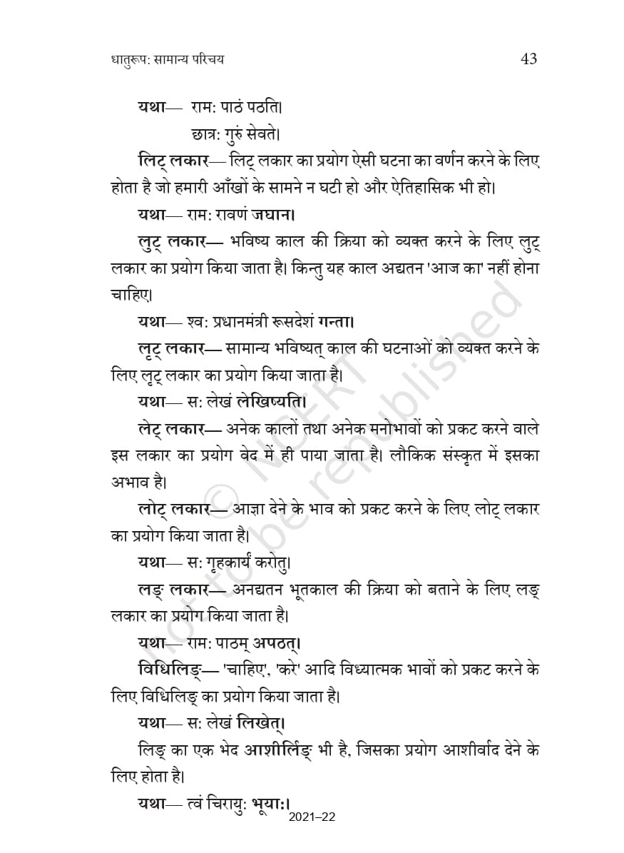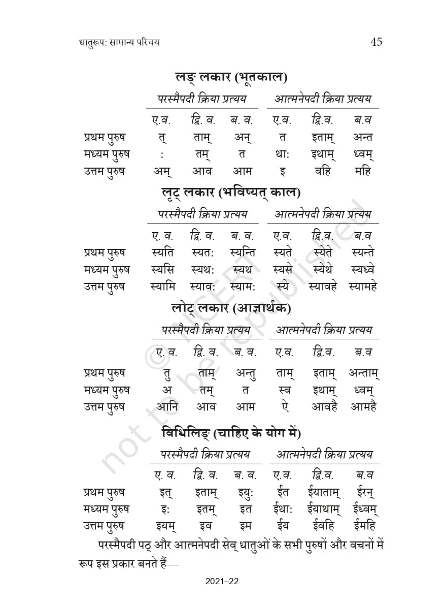 • पंचम अध्याय – धातुरूप – सामान्य परिचय