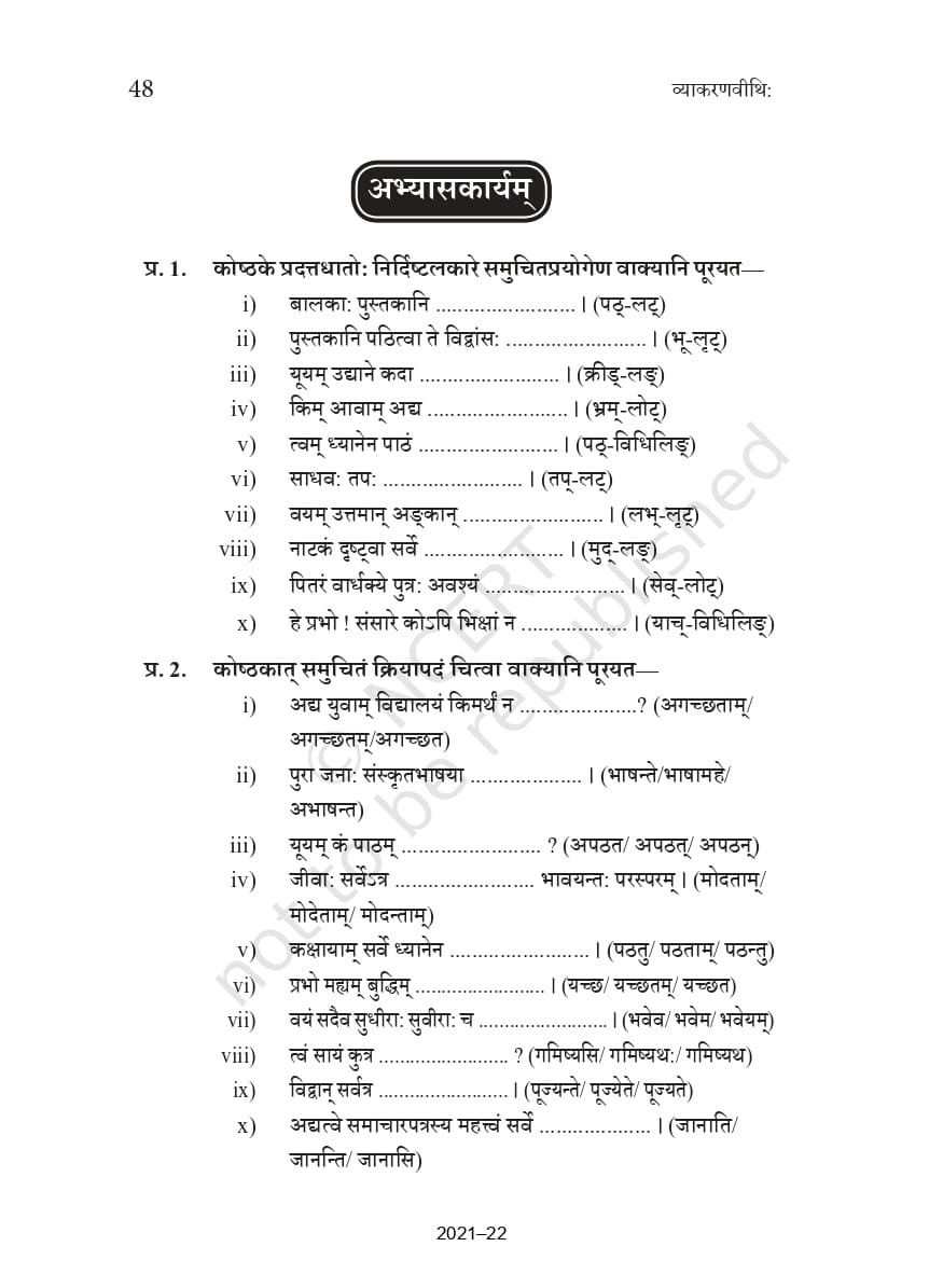 Class 10 Sanskrit Vyakaranavithi Chapter-wise Book Free PDF Download